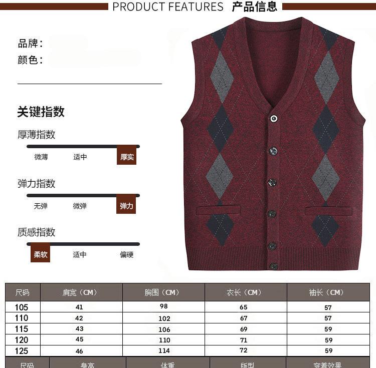 Chaleco de papá de mediana edad, chaleco de otoño e invierno para hombre, chaleco de punto, cárdigan, top informal holgado