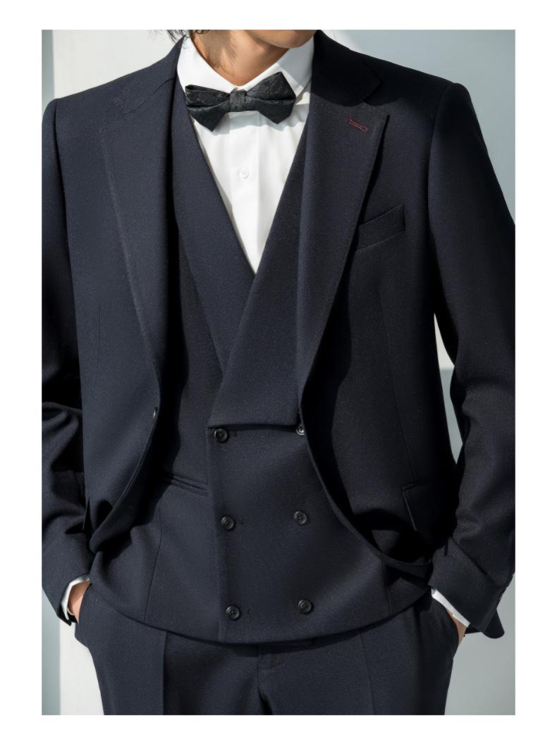 Traje para hombre Estilo coreano Slim Azul marino Traje formal profesional de tres piezas Traje de novio Boda Padrino Vestido