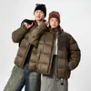 Chaqueta de invierno nueva con costuras para exteriores, abrigo acolchado de algodón con capucha, abrigo holgado de marca de moda, chaqueta acolchada de algodón cálida, abrigo de moda