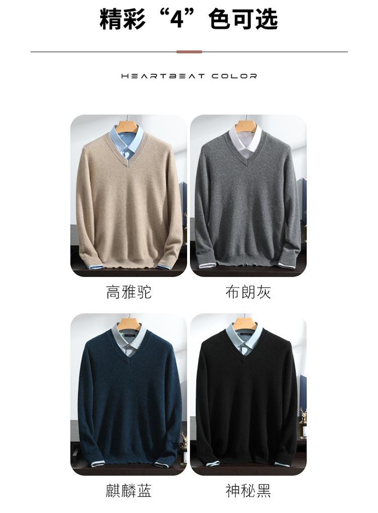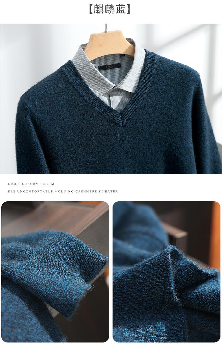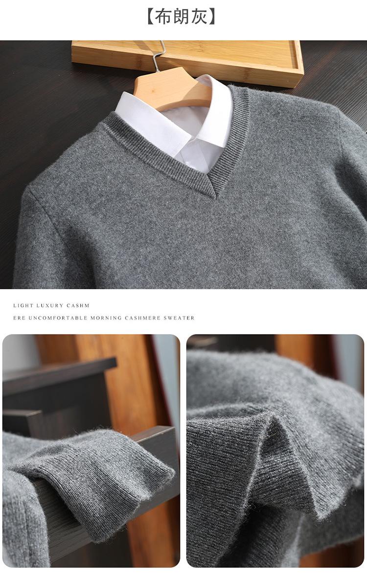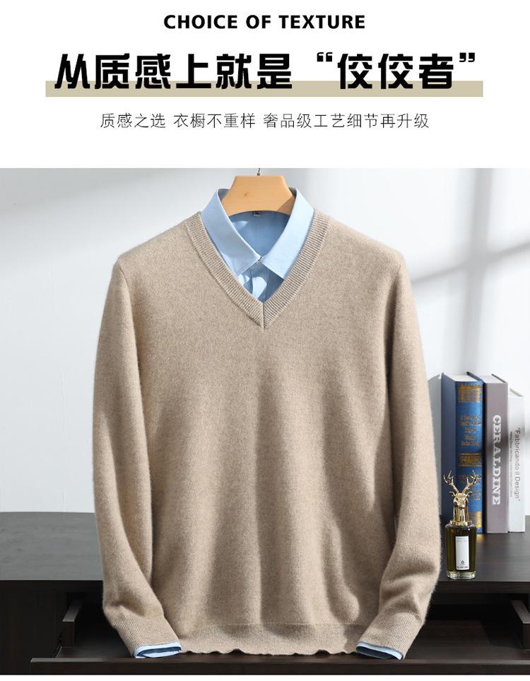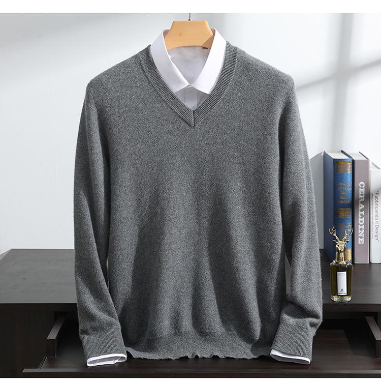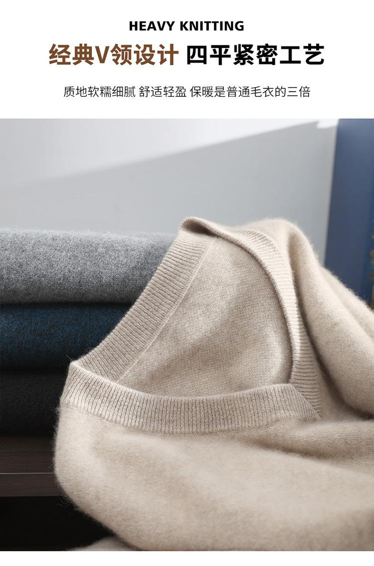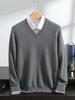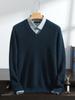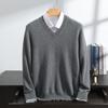 Suéter de cashmere masculino com decote em V 100% cashmere puro outono e inverno Novo suéter de malha de manga comprida e espessada