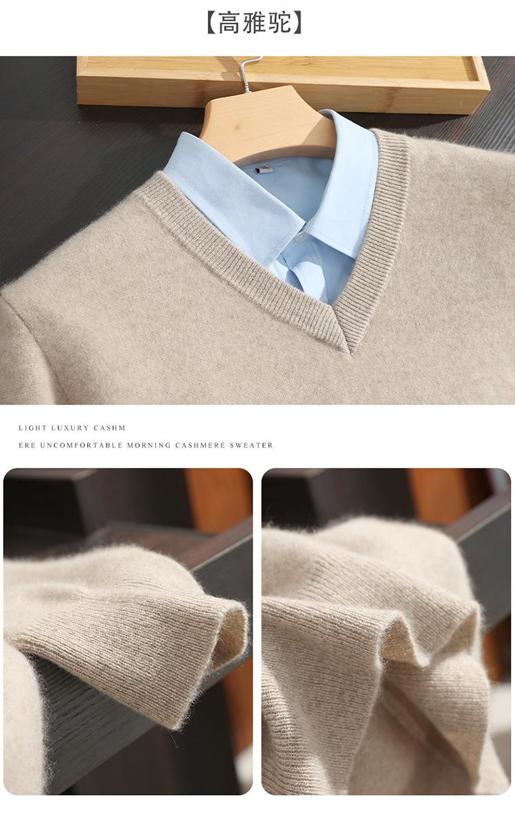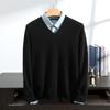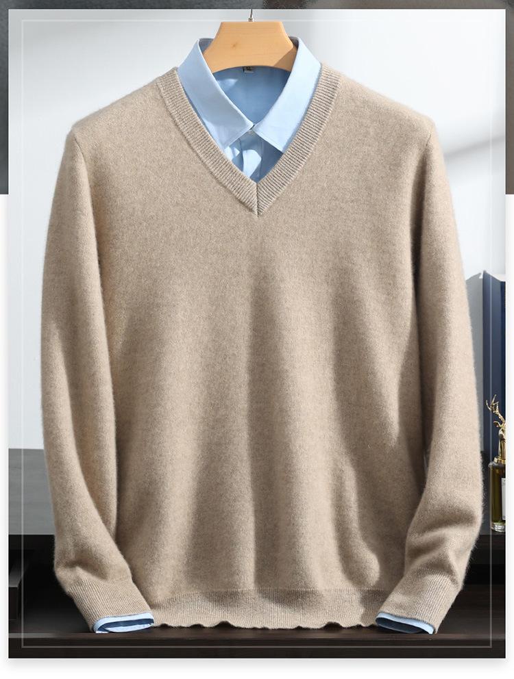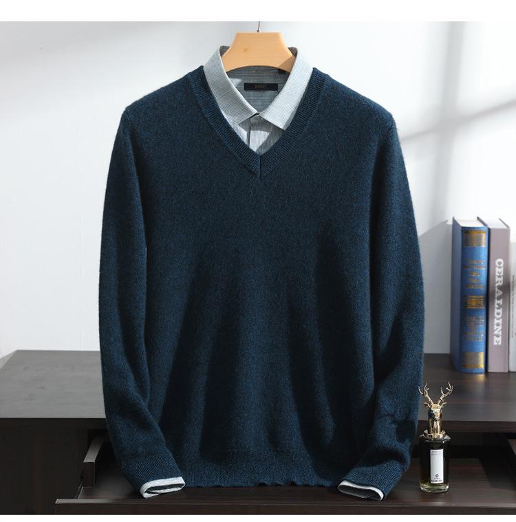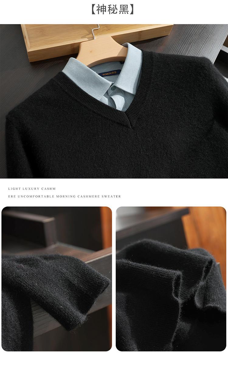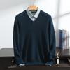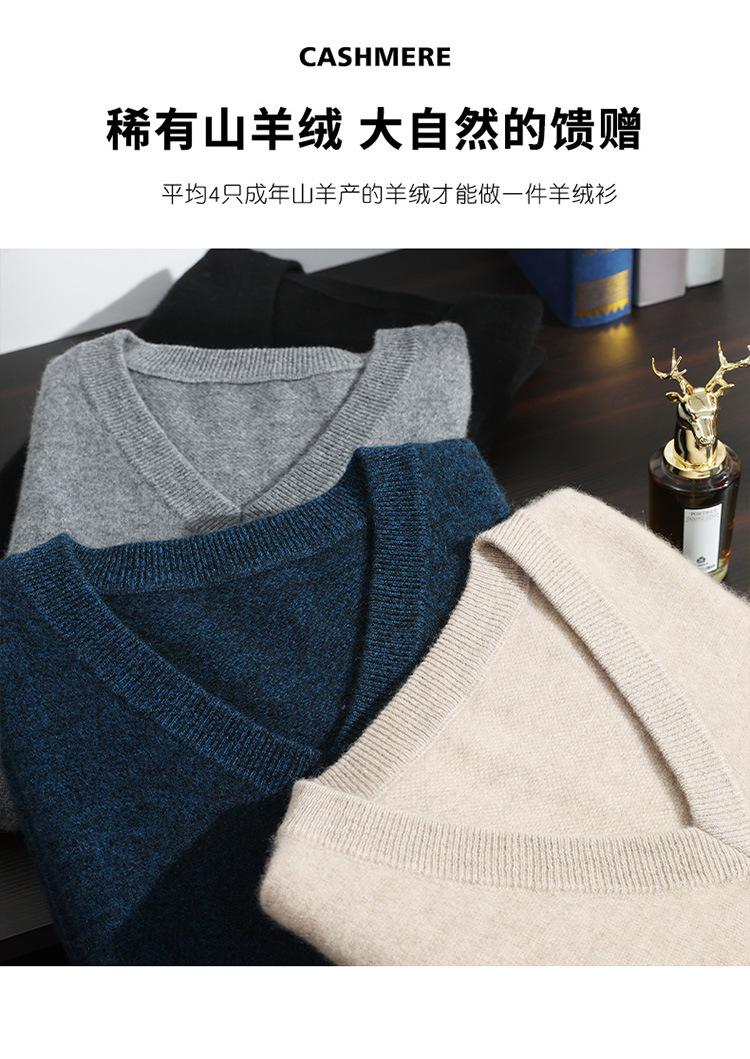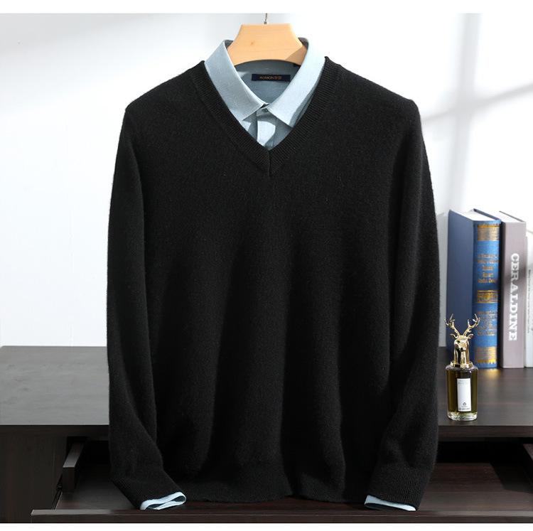 Suéter de cashmere masculino com decote em V 100% cashmere puro outono e inverno Novo suéter de malha de manga comprida e espessada