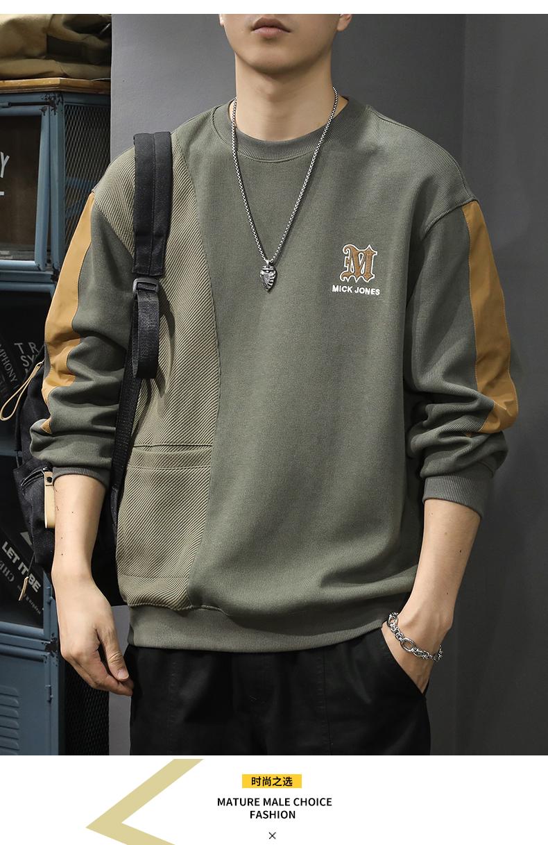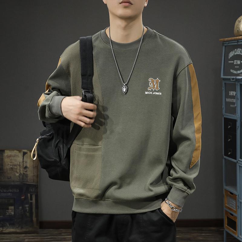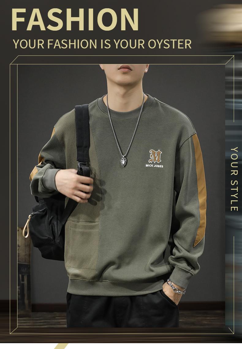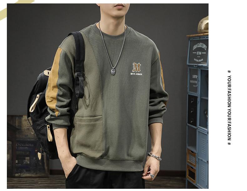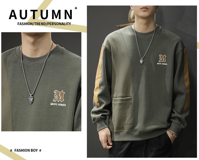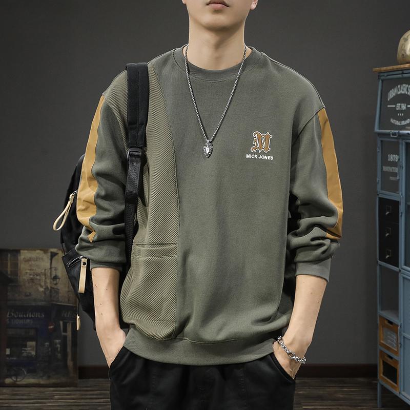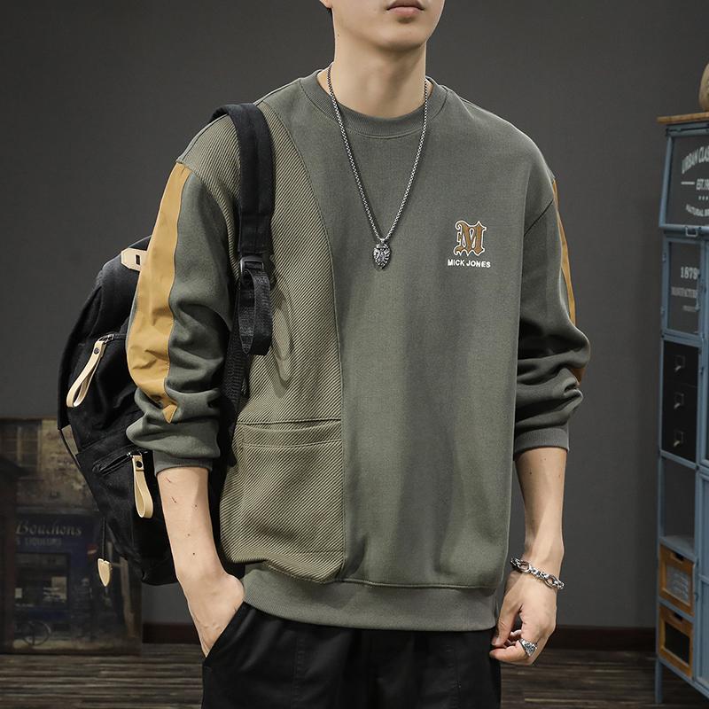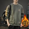 Sudadera de cuello redondo con costuras de bolsillo y manga larga para otoño e invierno, holgada, de talla grande, informal, de marca de moda de otoño