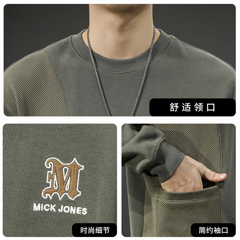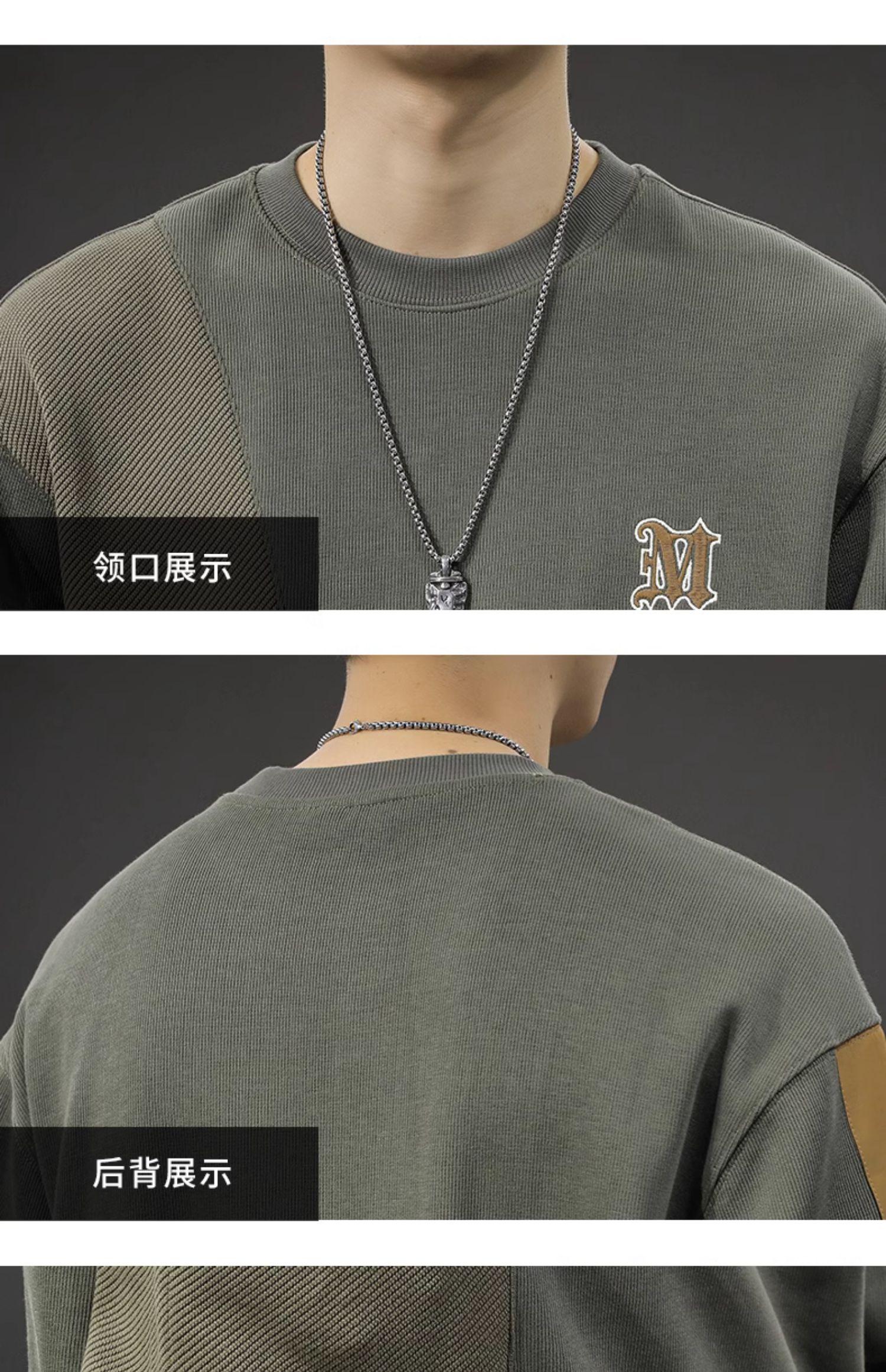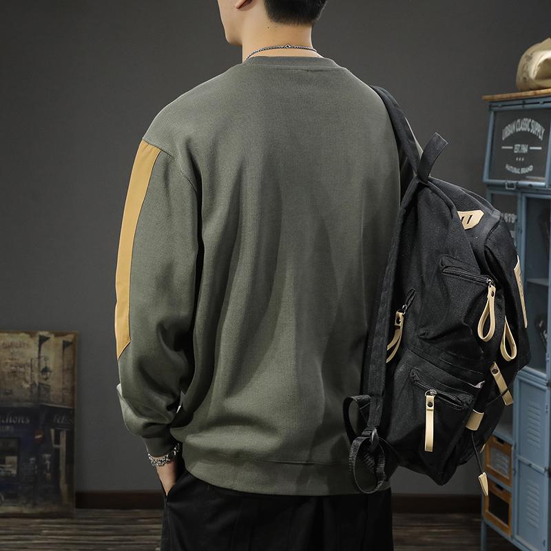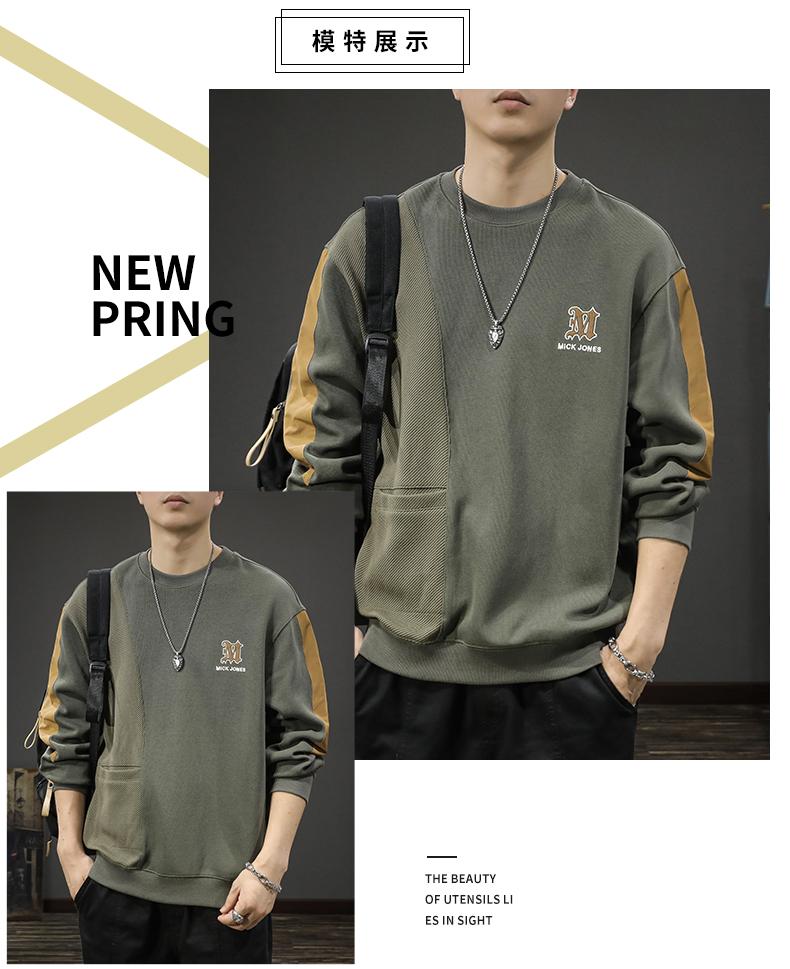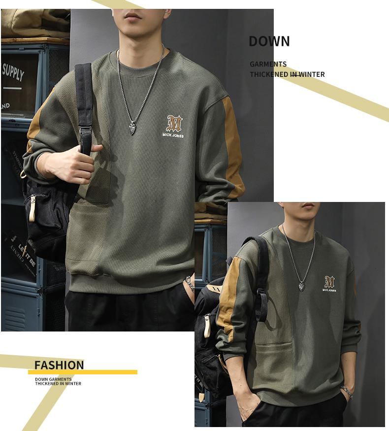 Sudadera de cuello redondo con costuras de bolsillo y manga larga para otoño e invierno, holgada, de talla grande, informal, de marca de moda de otoño