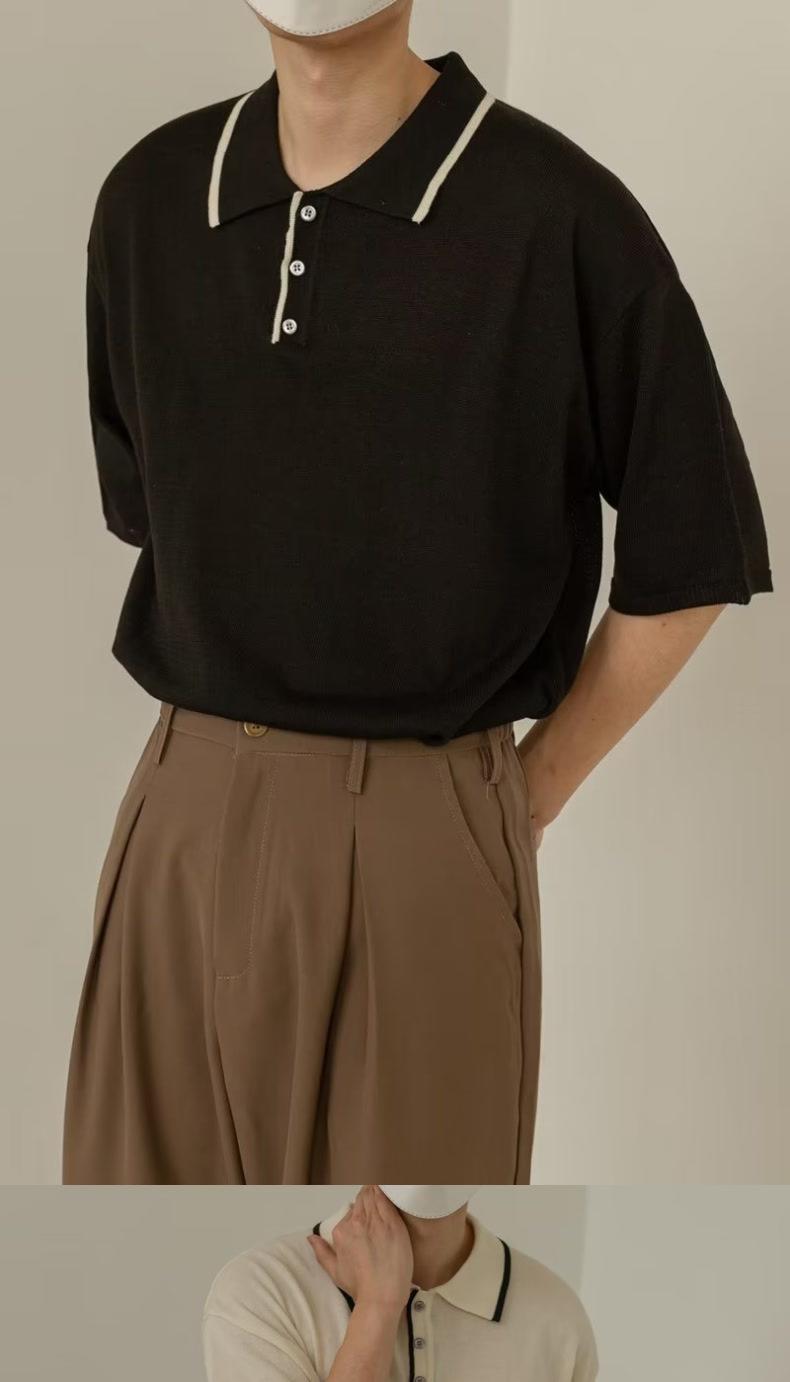 Polo de verano para hombre, de manga corta, estilo ligero y maduro, de seda helada, de punto fino, informal, holgado, para hombre