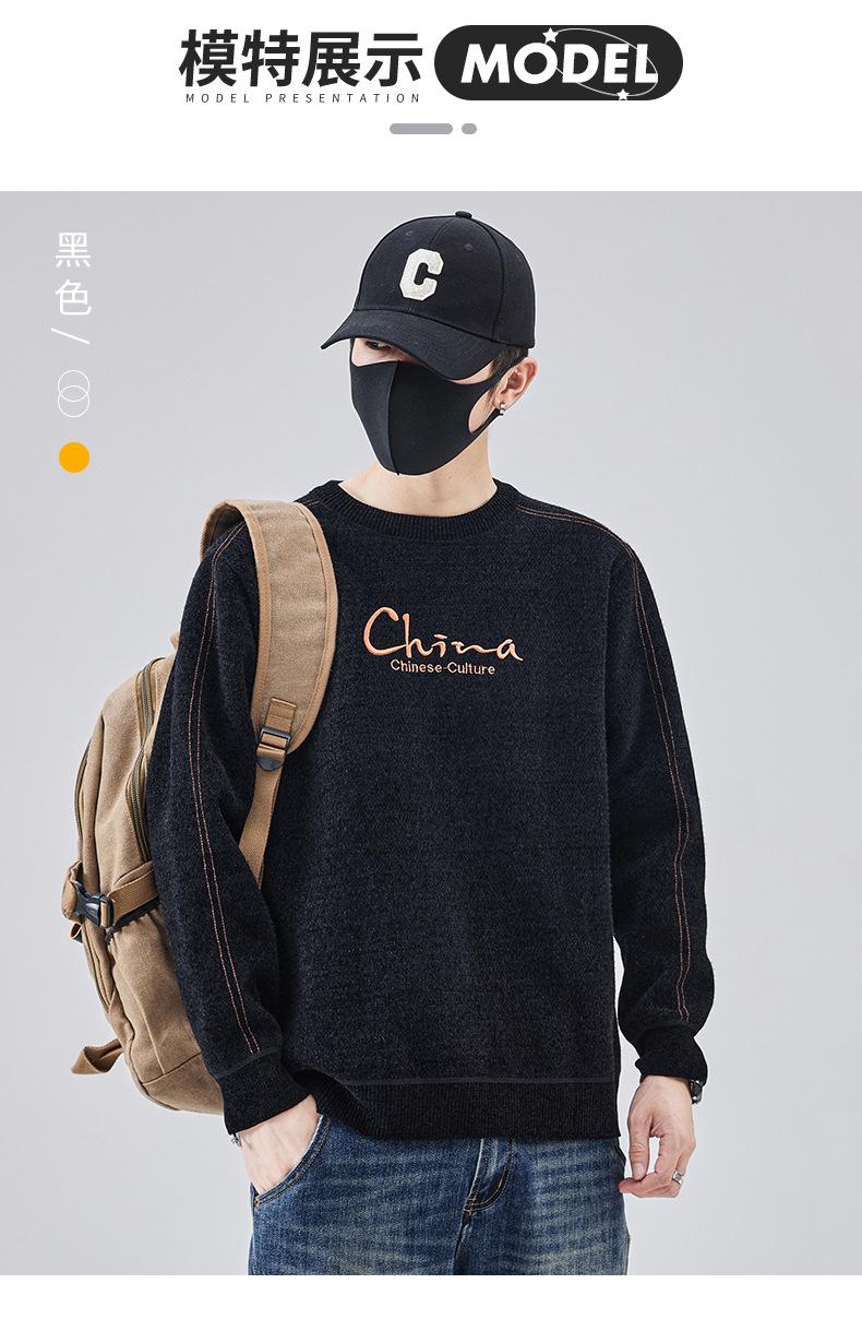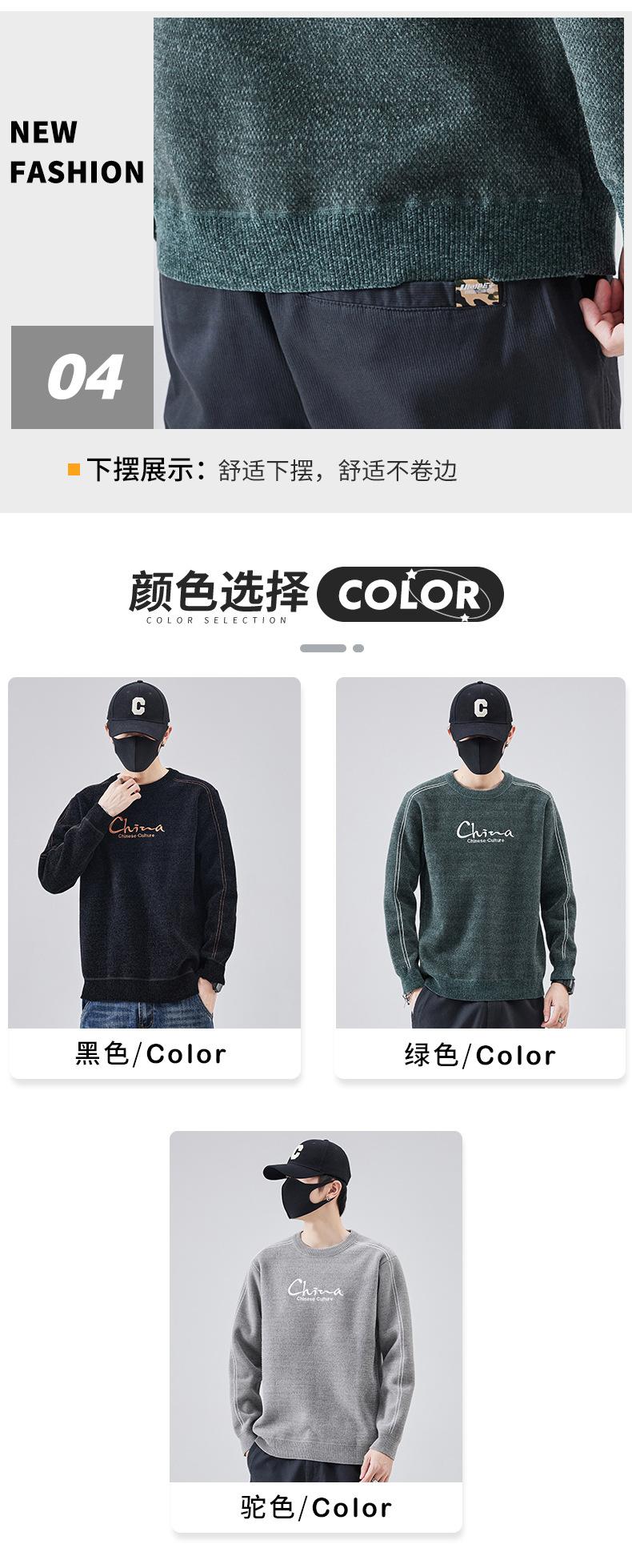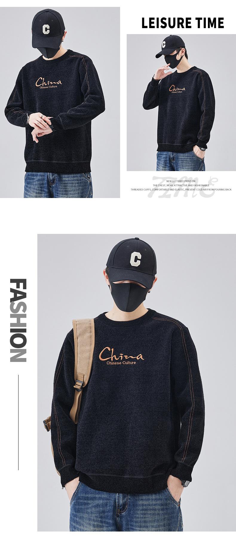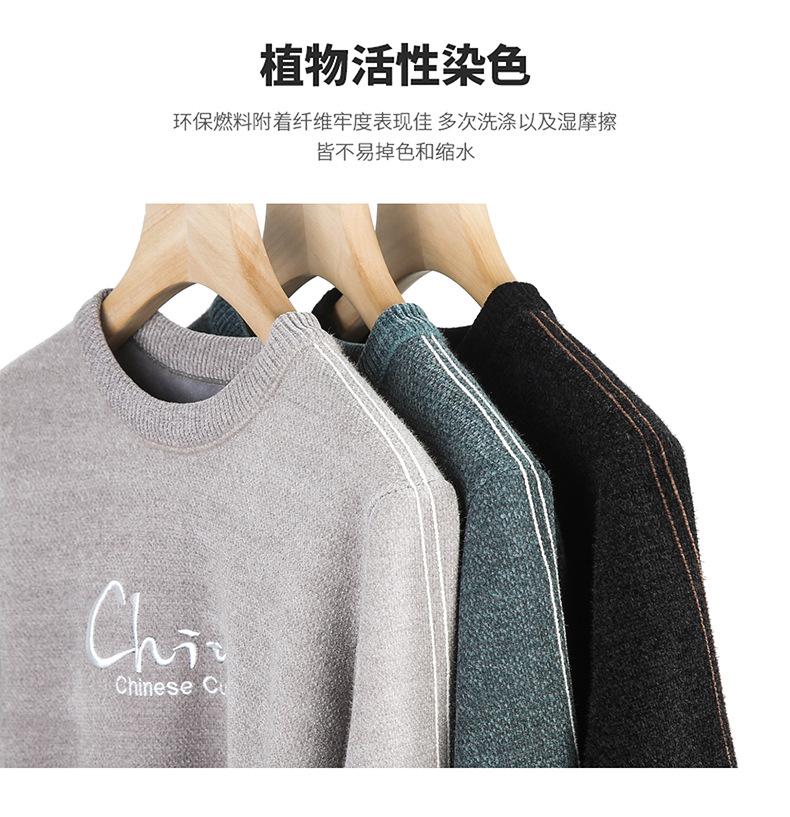 Suéter para hombre otoño e invierno nuevo suéter grueso y cálido con cuello redondo y forro polar, suéter casual de moda juvenil.