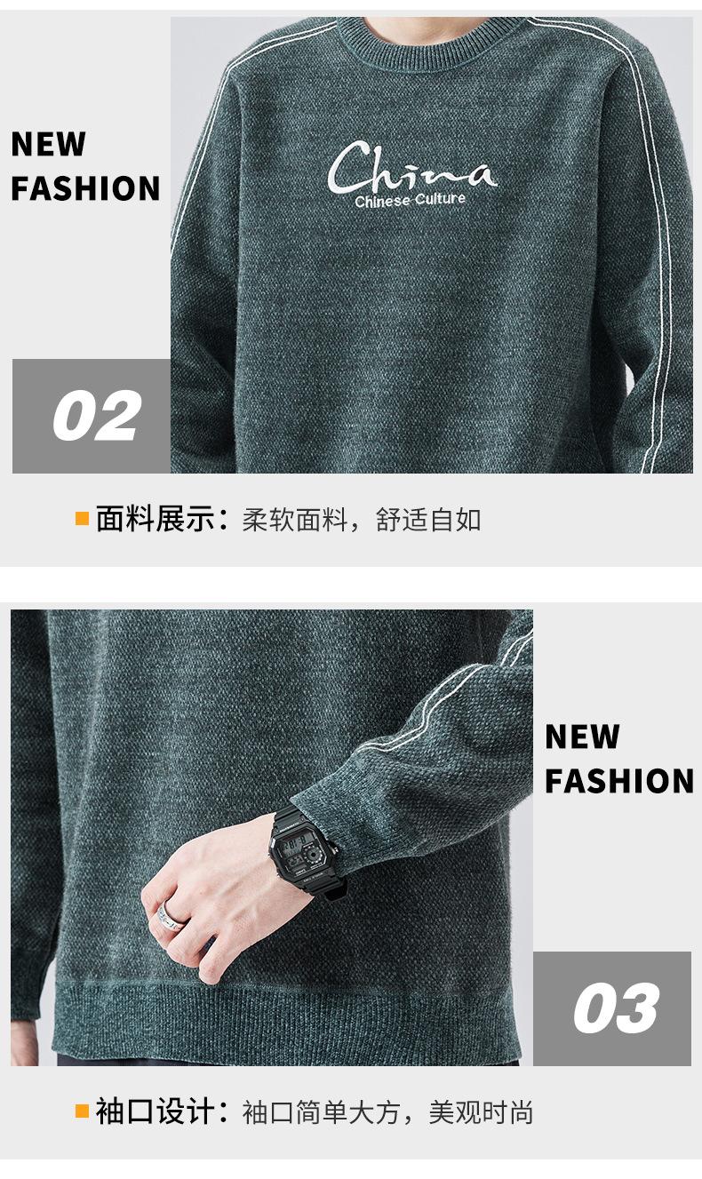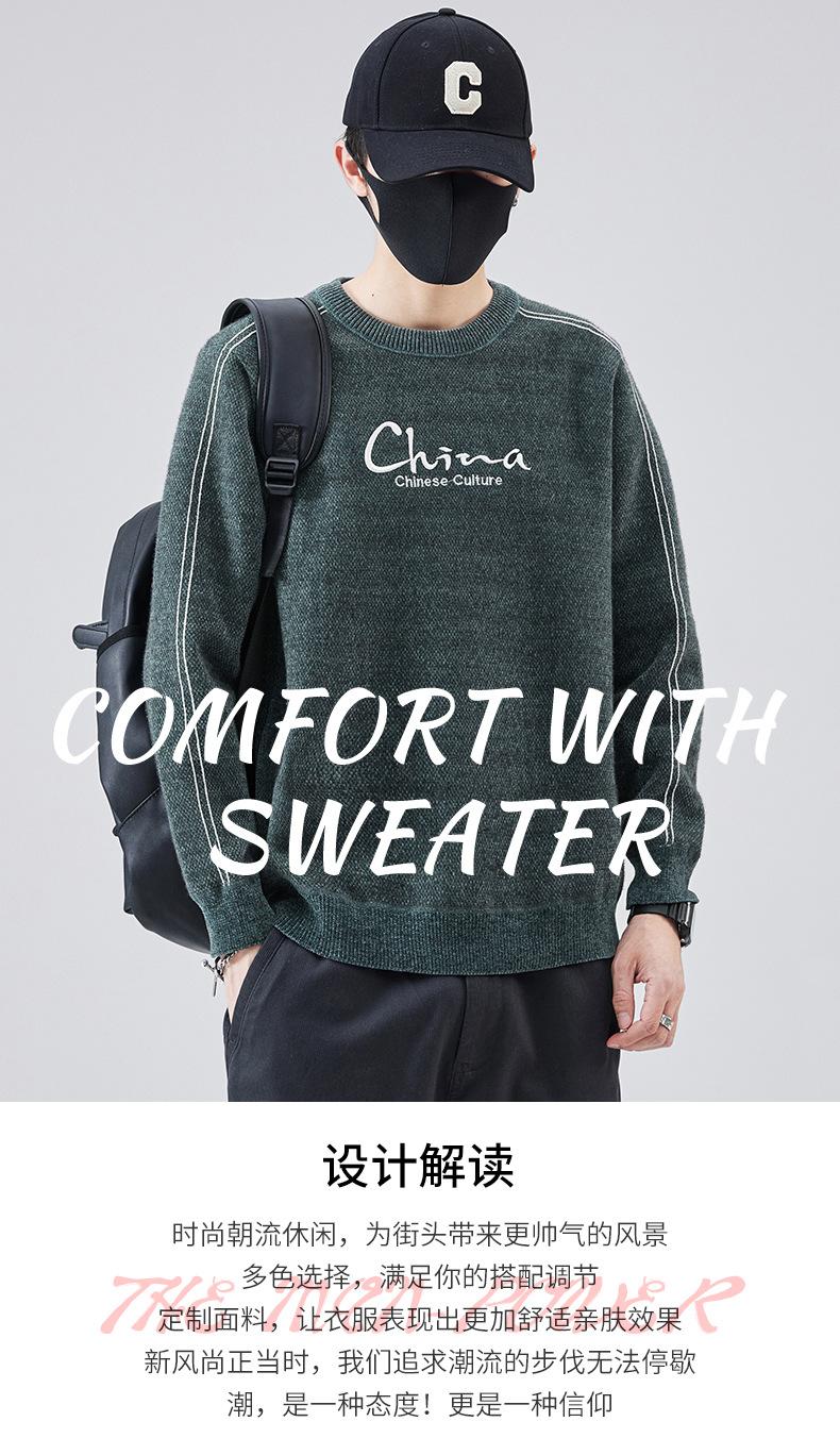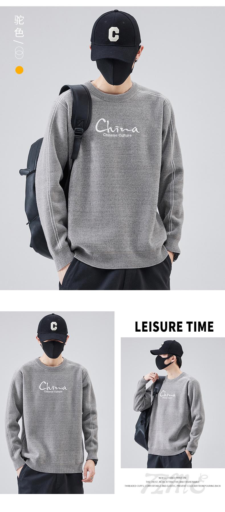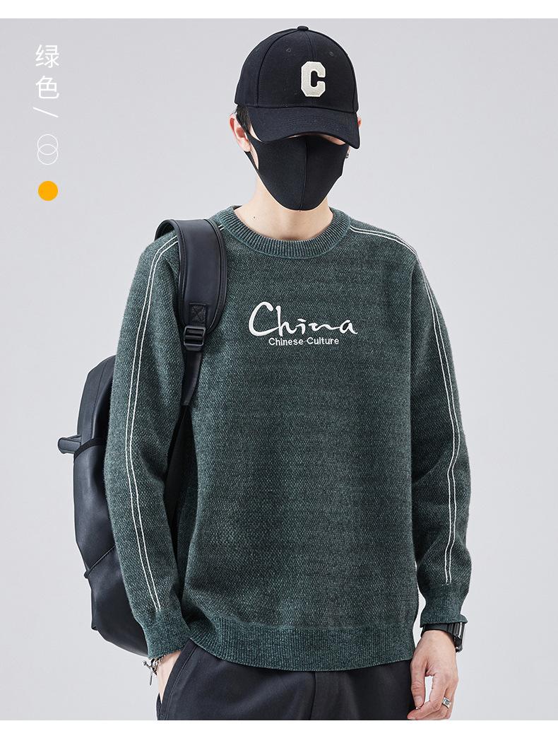 Suéter para hombre otoño e invierno nuevo suéter grueso y cálido con cuello redondo y forro polar, suéter casual de moda juvenil.