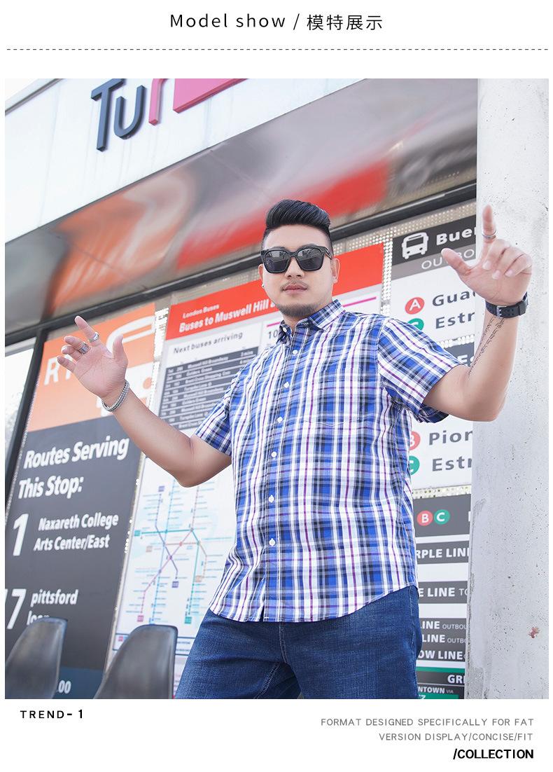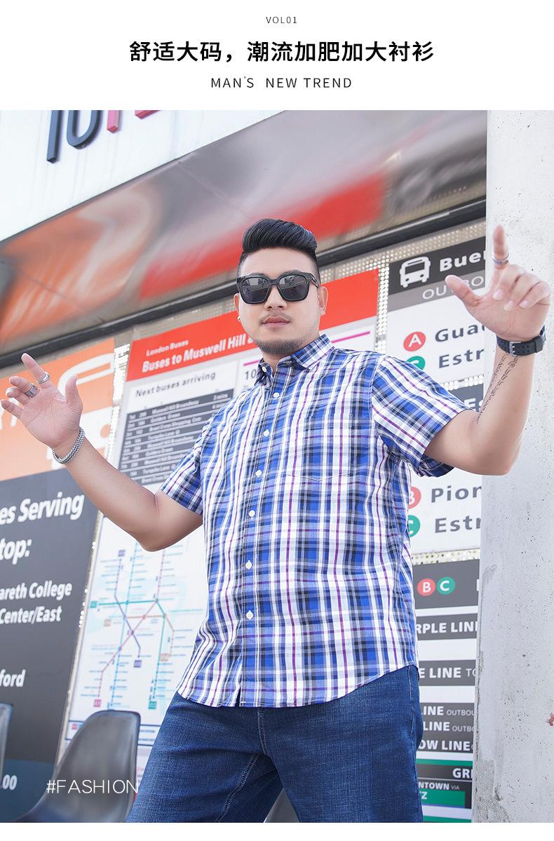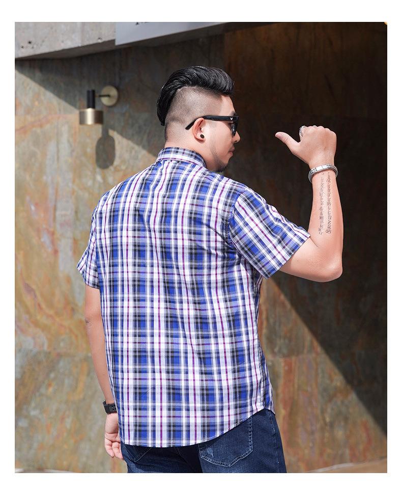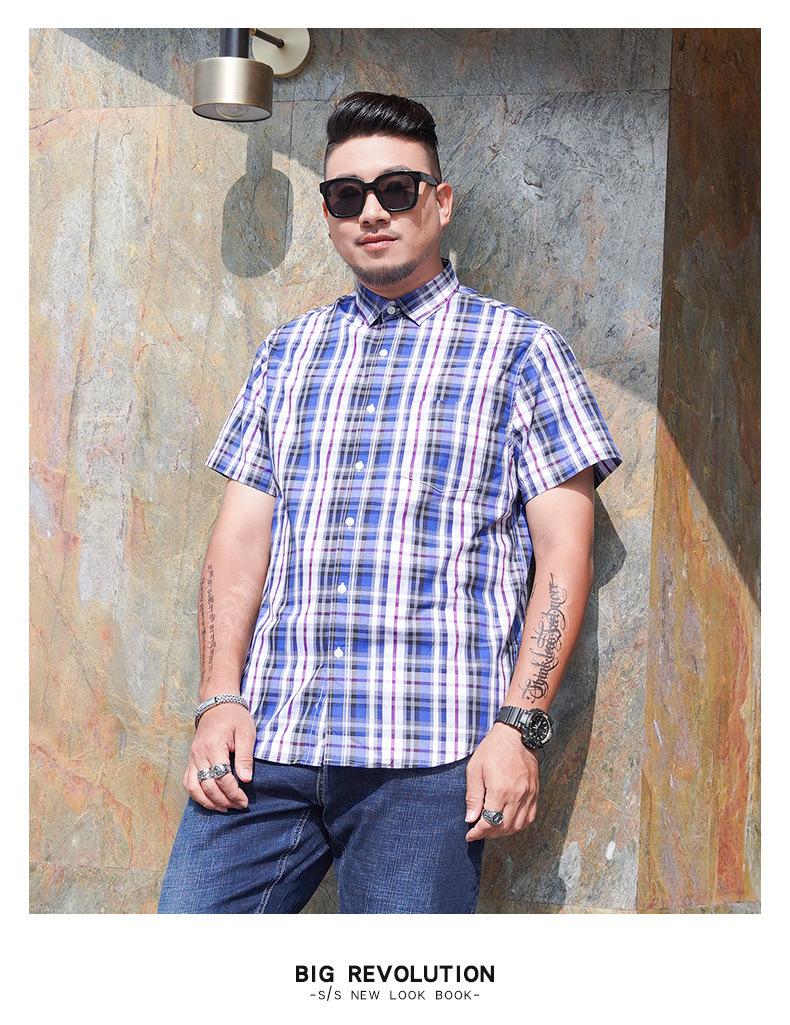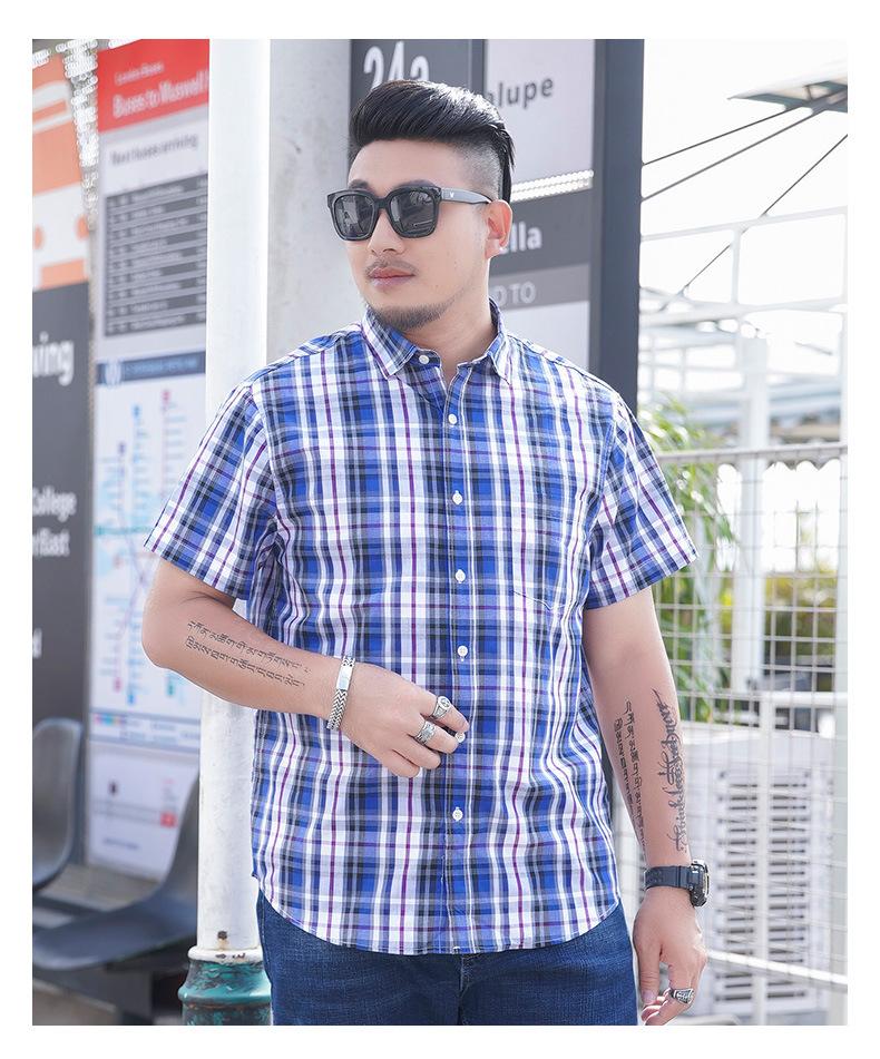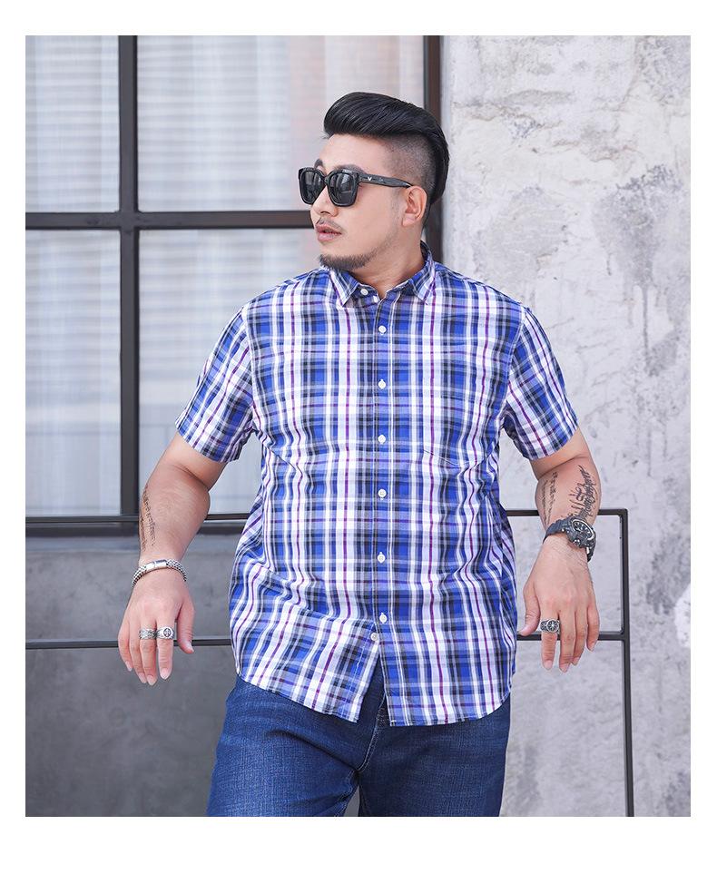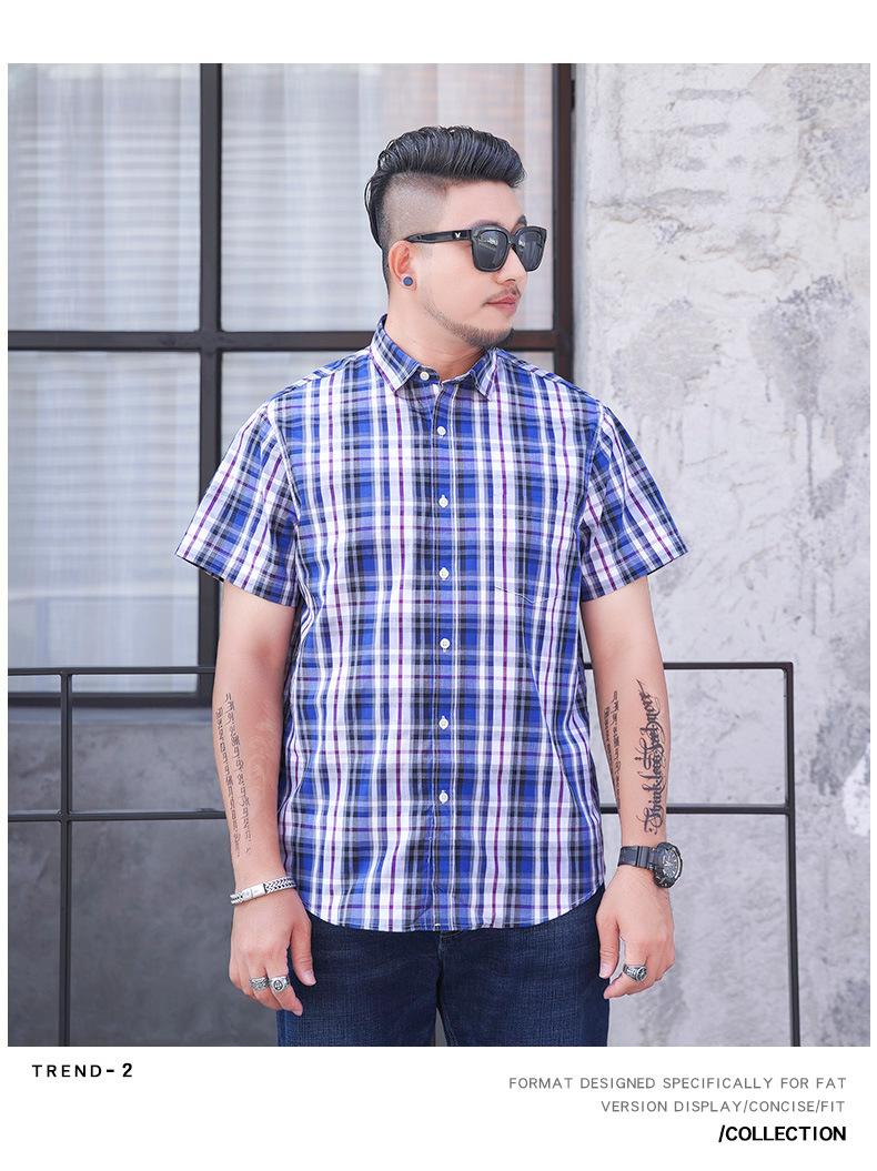 Amazon AliExpress talla grande Camisa de manga corta para hombre Gordo Suelto Plus Gordo Talla Grande Manga Corta Teñida con hilo Cuadros Camisa para hombre