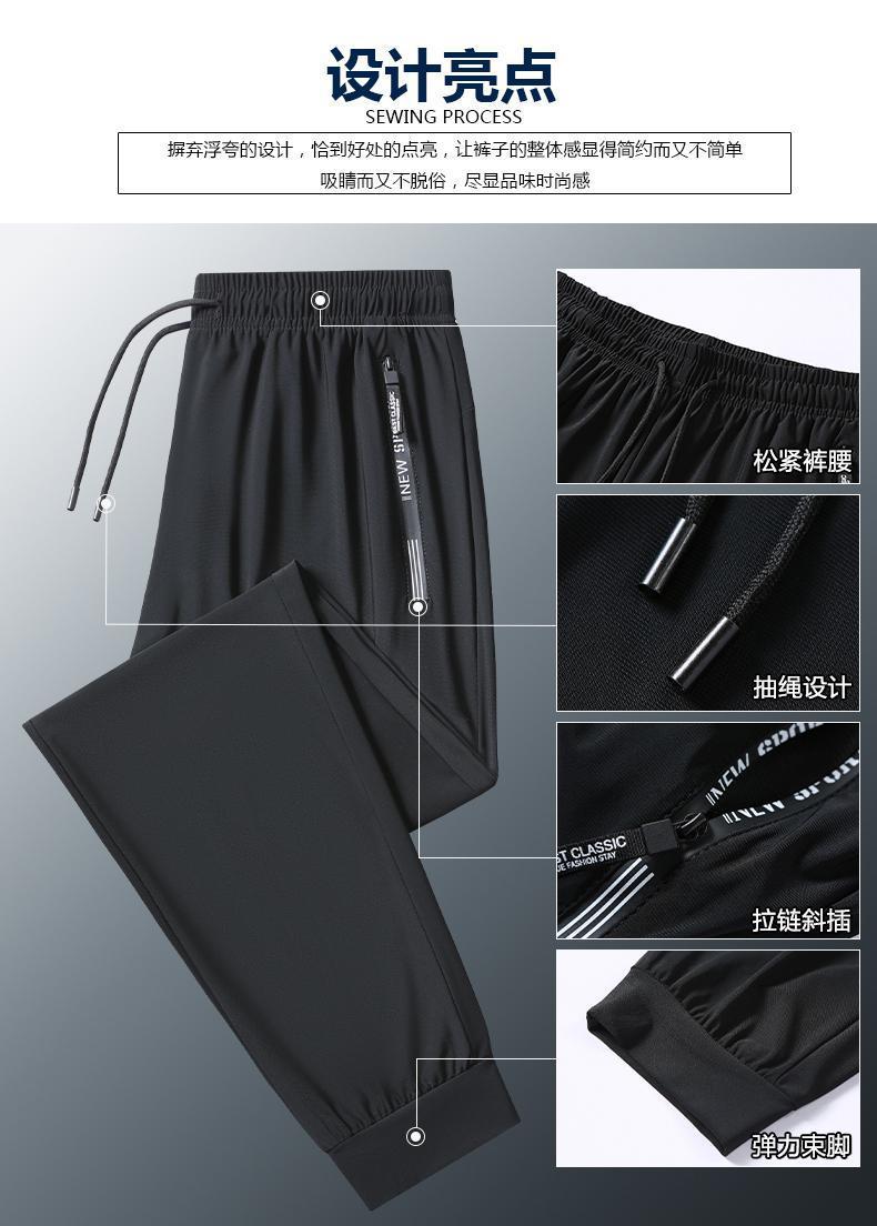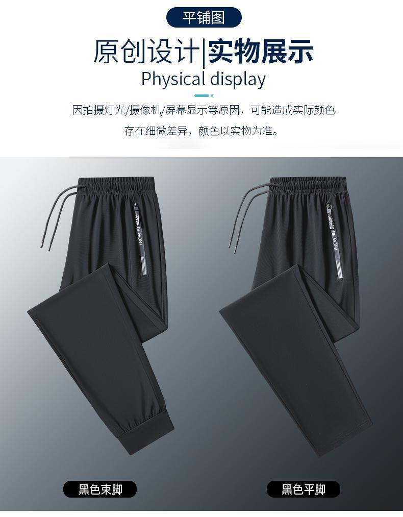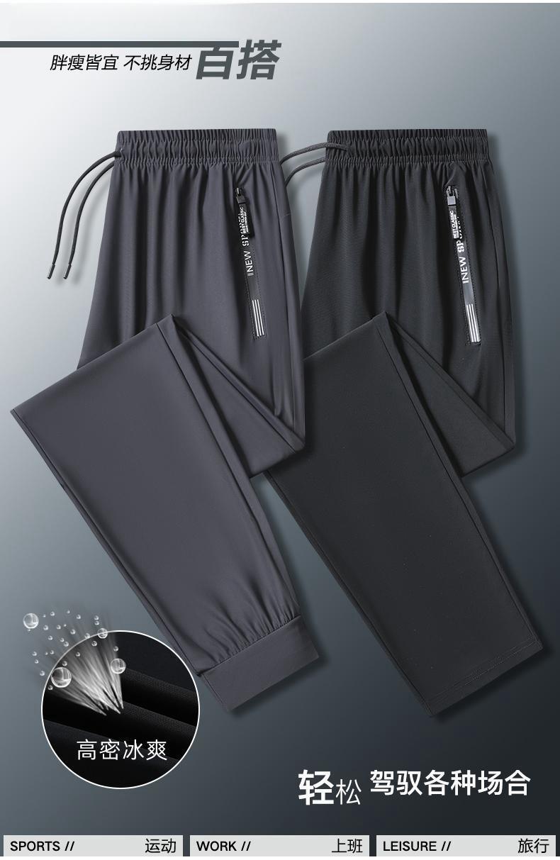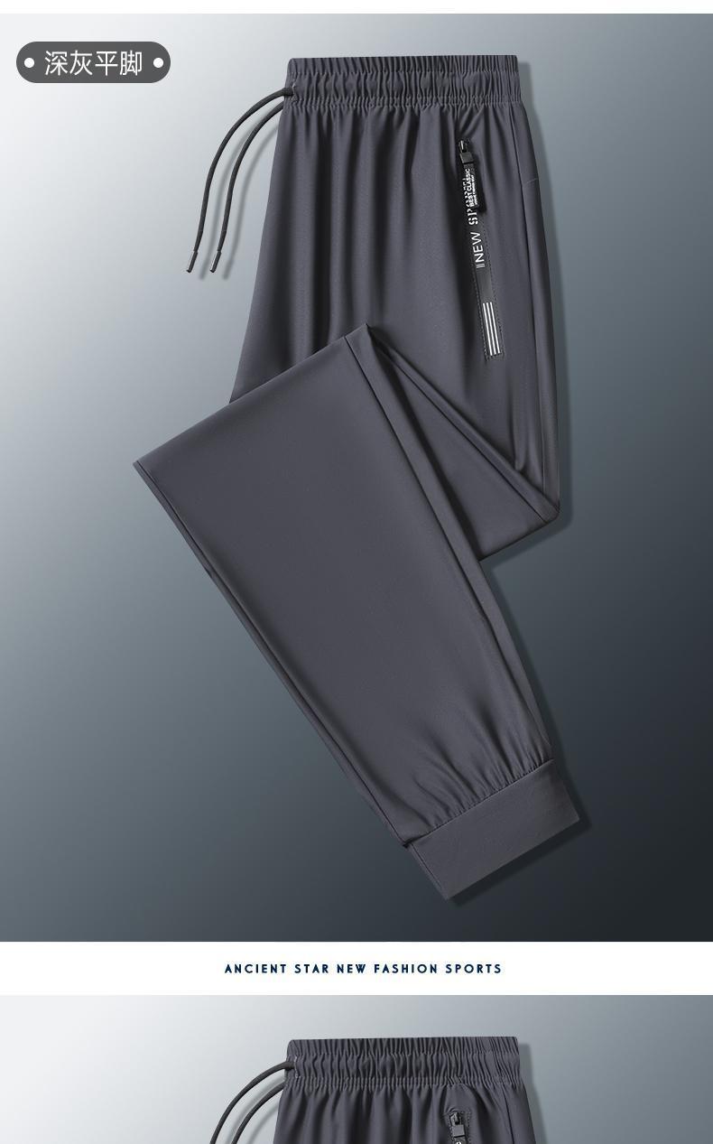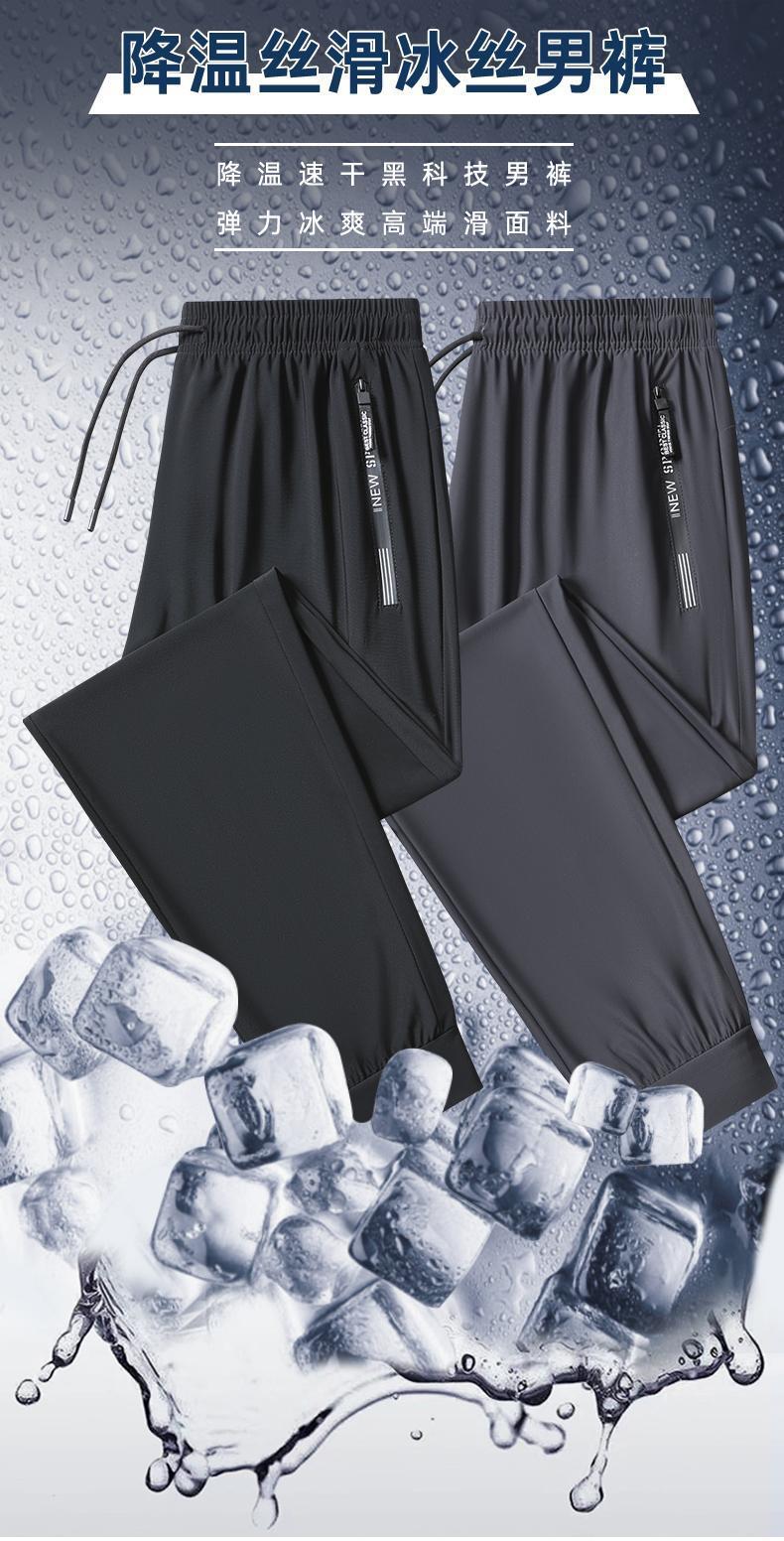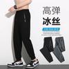 Pantalones casuales de nailon de seda helada para hombre, de secado rápido y muy elásticos, con cordón elástico y atados al tobillo, de talla grande, holgados, absorbentes del sudor y transpirables.