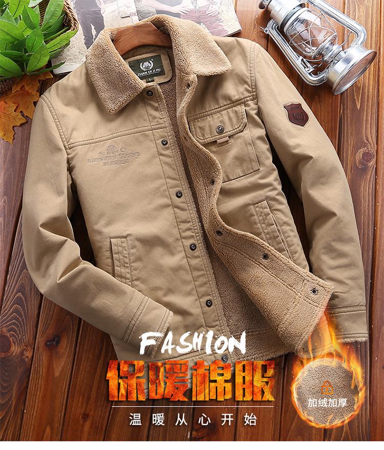 Chaqueta de Algodón de Invierno para Hombre 2019 Chaqueta de Algodón de Longitud Media para Hombre Estilo Campo de Batalla Caliente Chaqueta de Piel de Cordero Gruesa y Cálida
