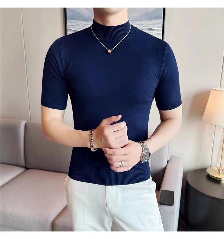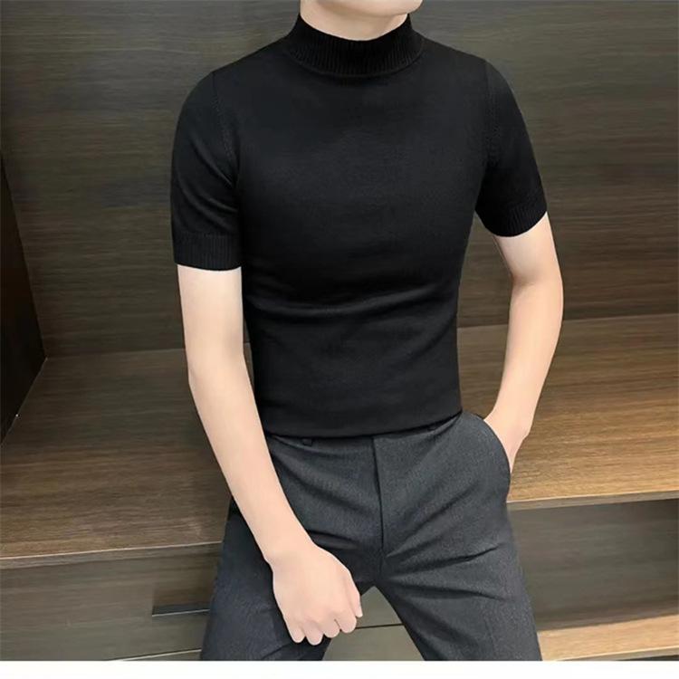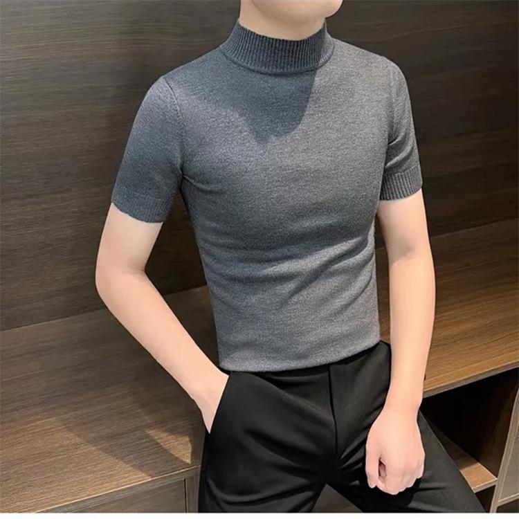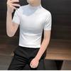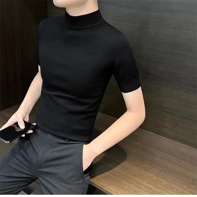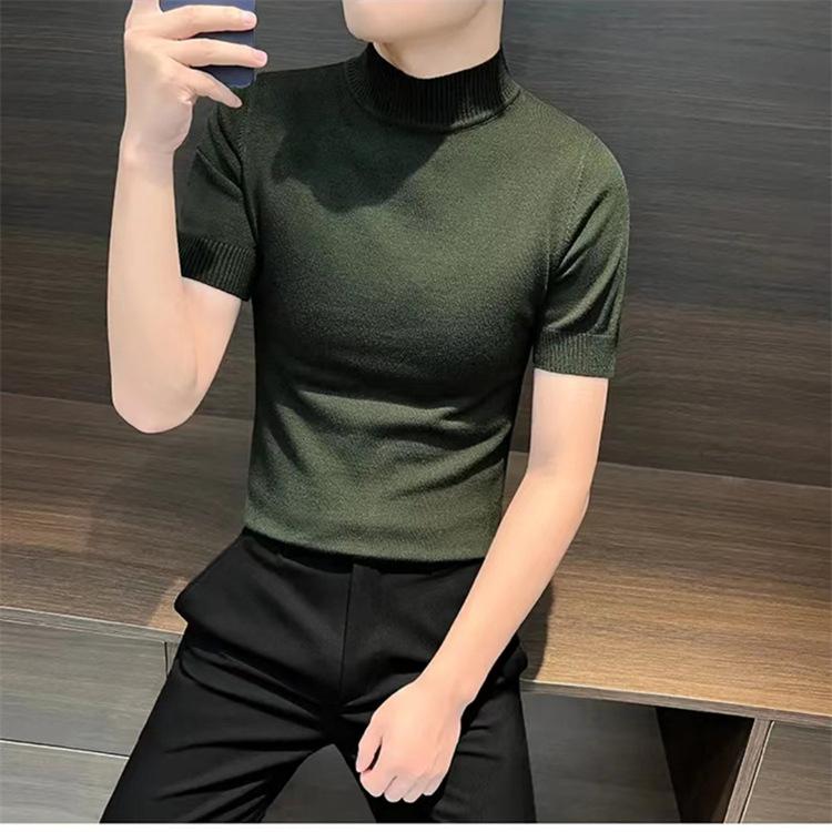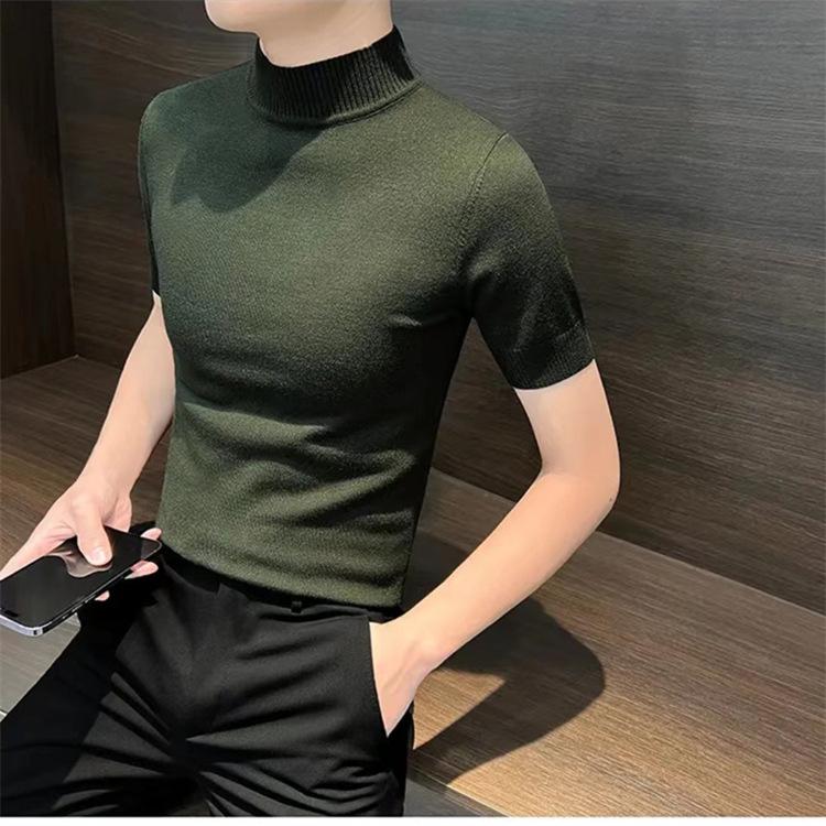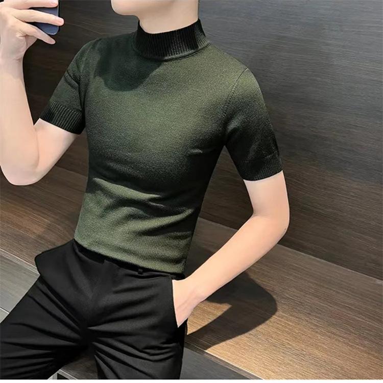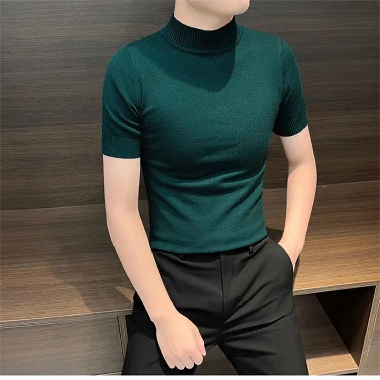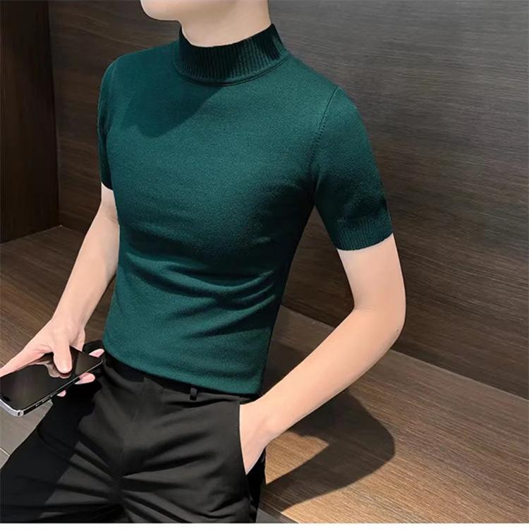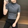 Suéter de manga corta con cuello medio alto para hombre de otoño e invierno, ajuste ceñido, suéter interior de manga media para hombre, camisa básica de color sólido cálida