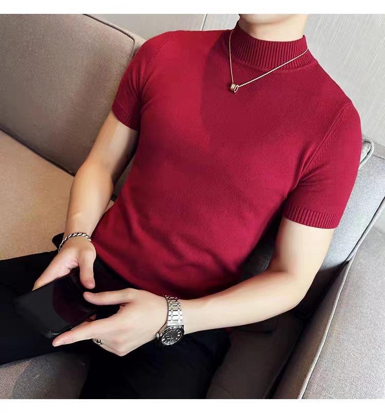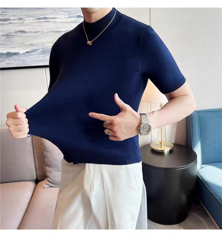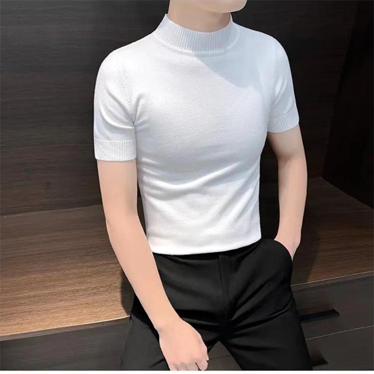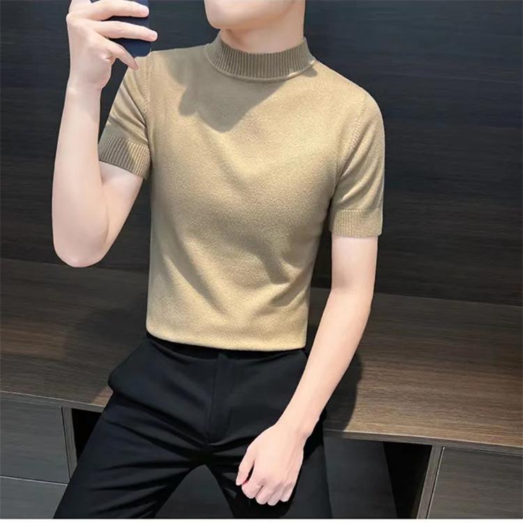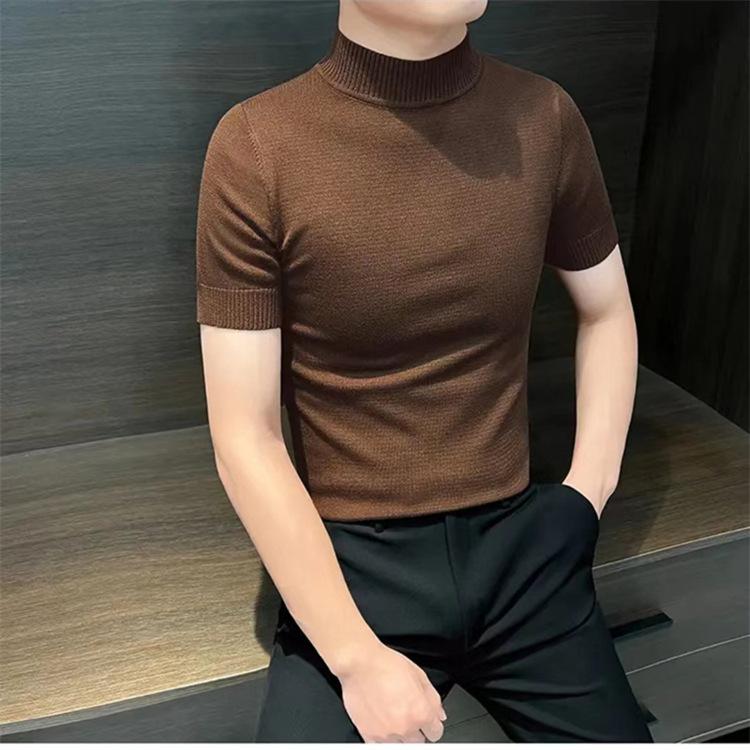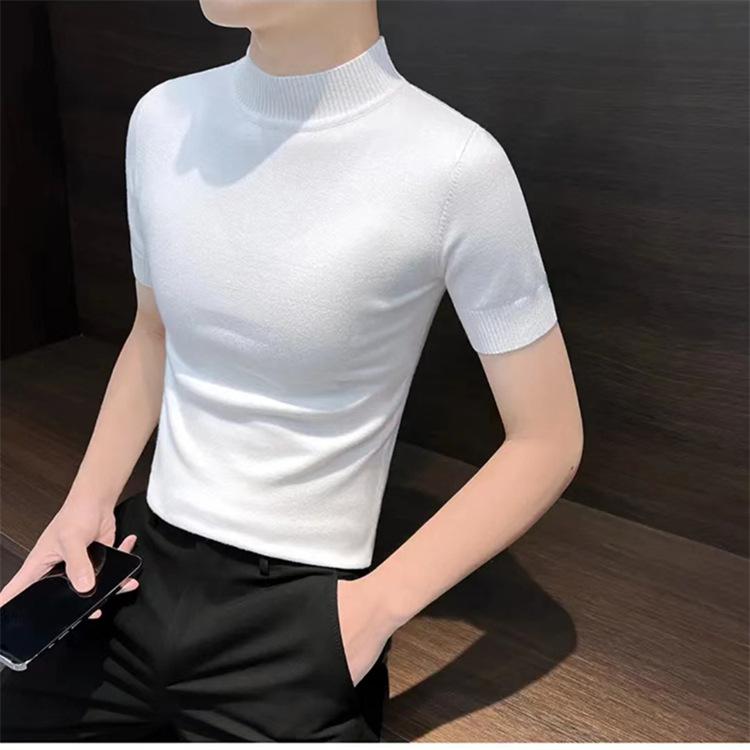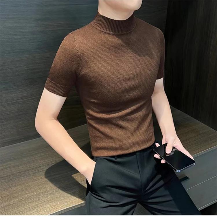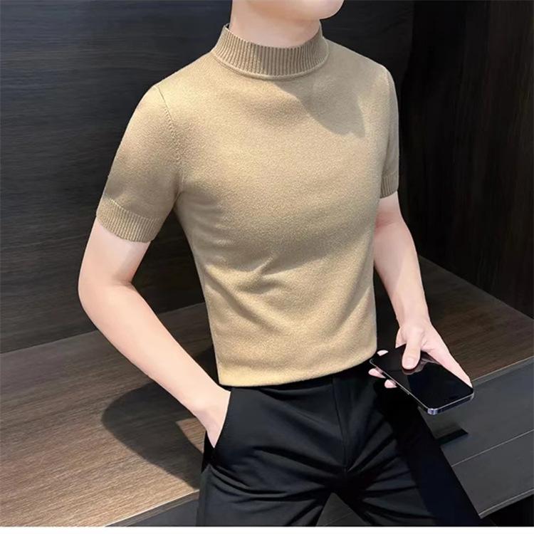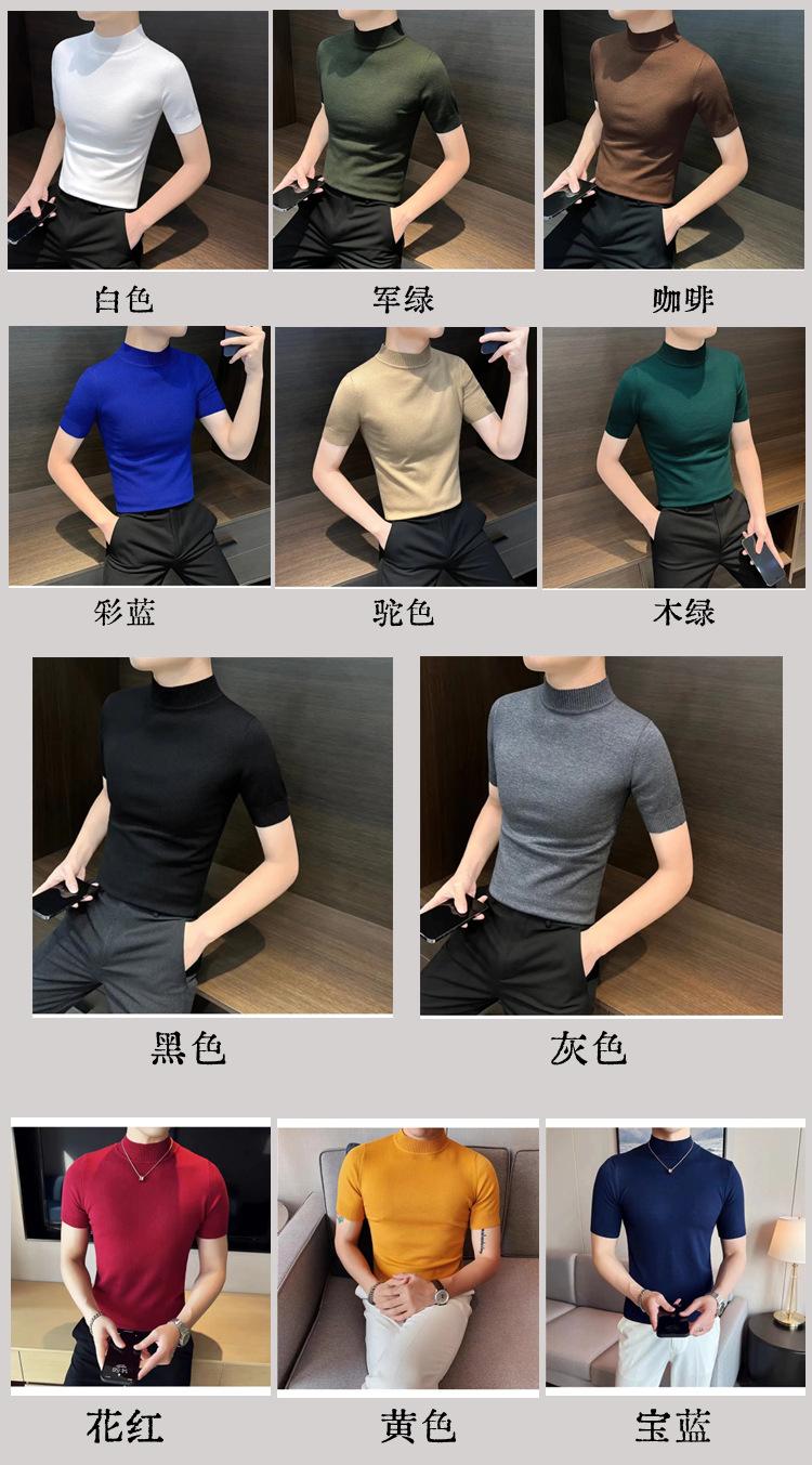 Suéter de manga corta con cuello medio alto para hombre de otoño e invierno, ajuste ceñido, suéter interior de manga media para hombre, camisa básica de color sólido cálida