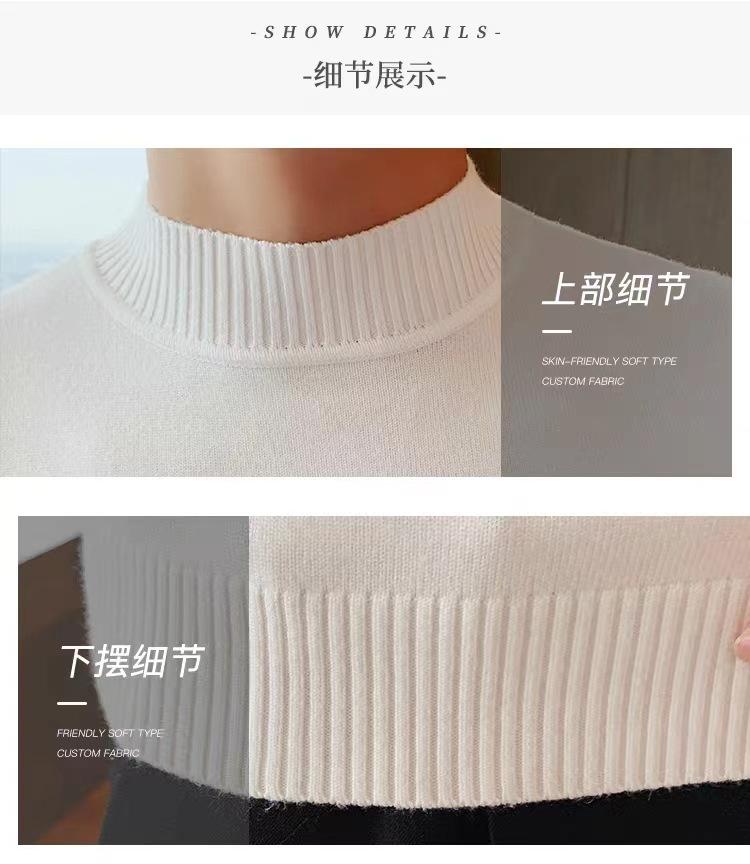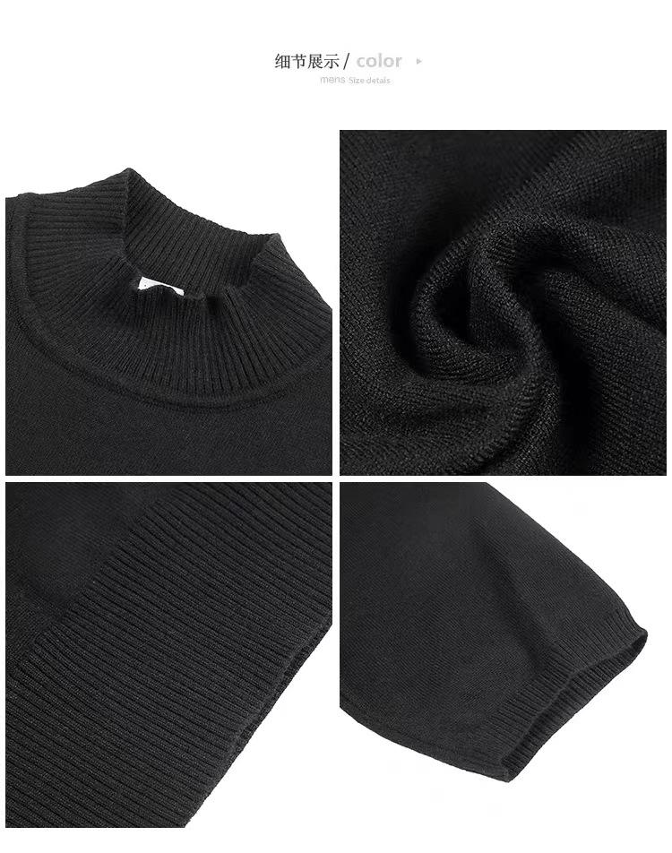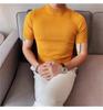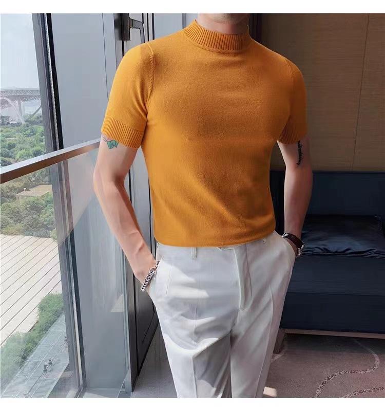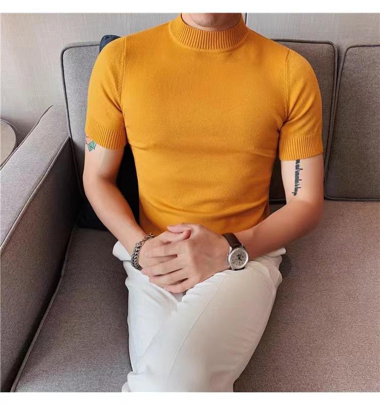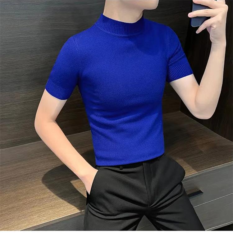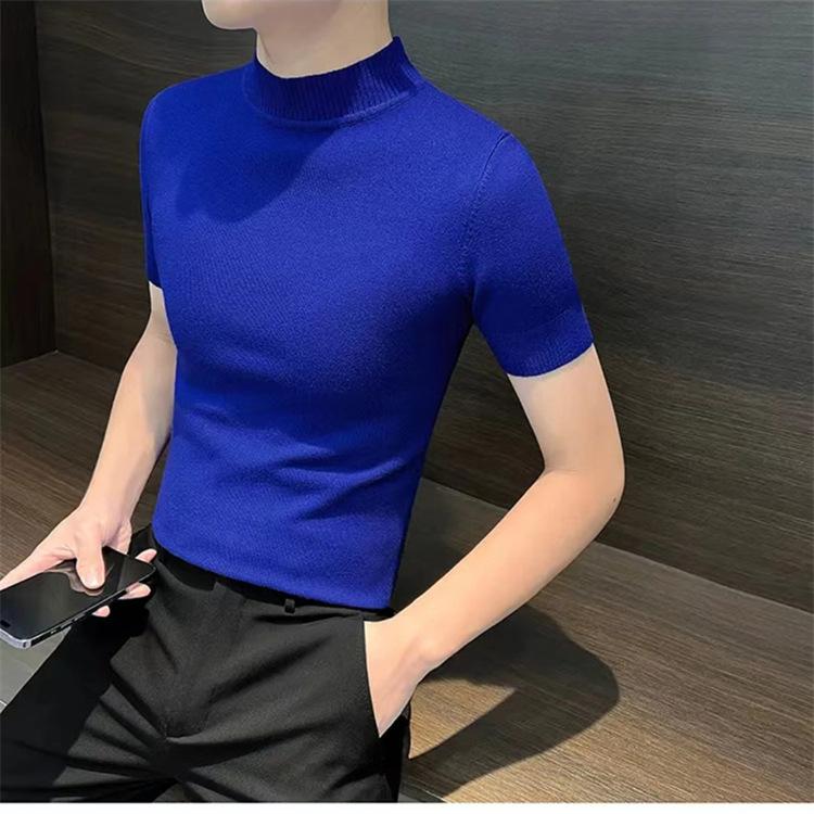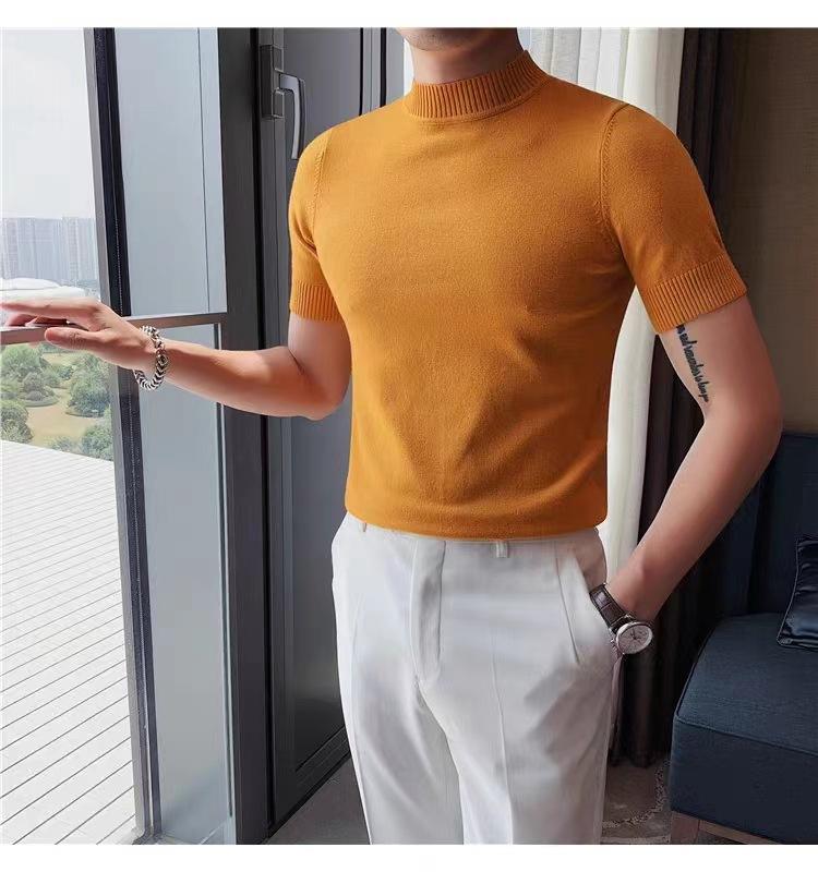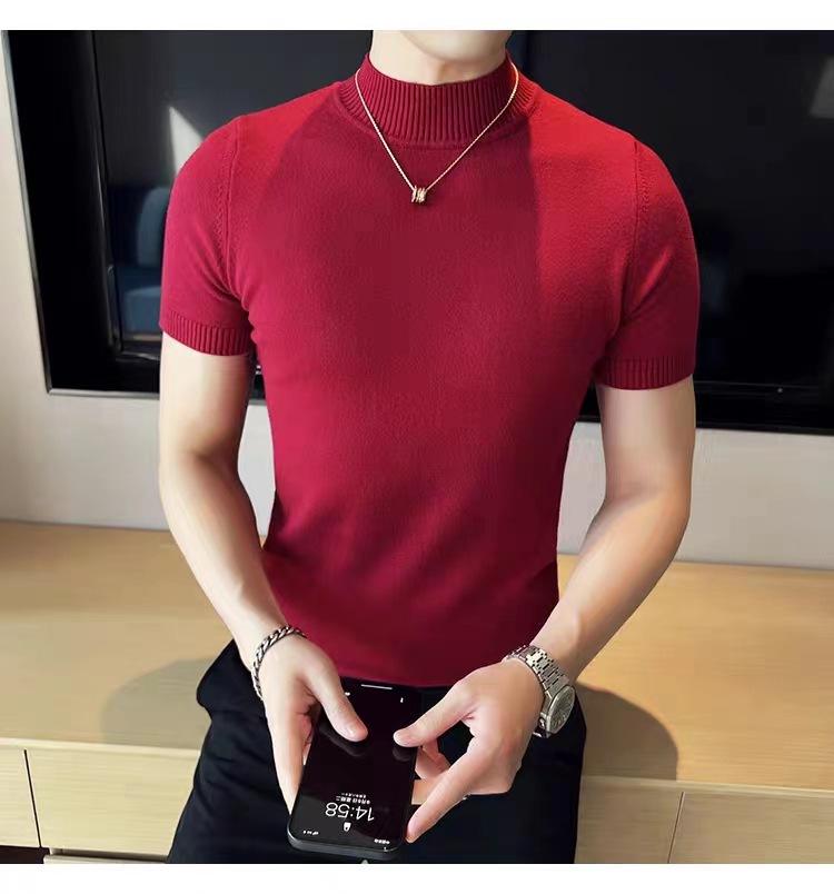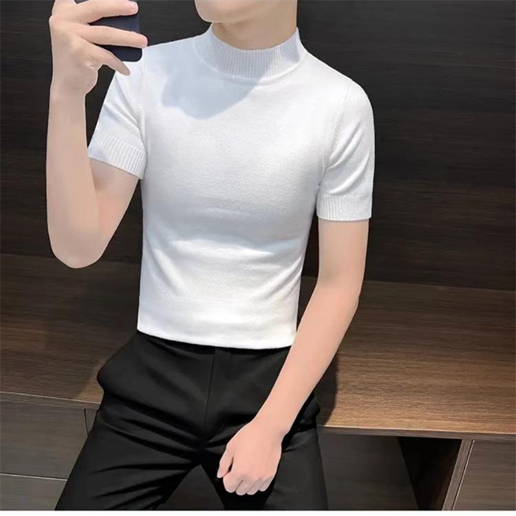 Suéter de manga corta con cuello medio alto para hombre de otoño e invierno, ajuste ceñido, suéter interior de manga media para hombre, camisa básica de color sólido cálida