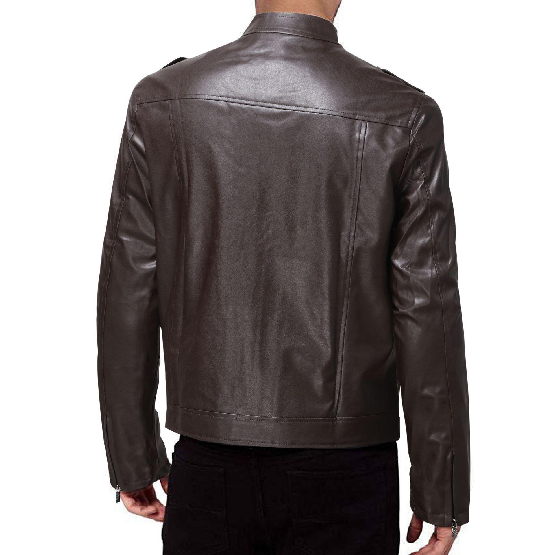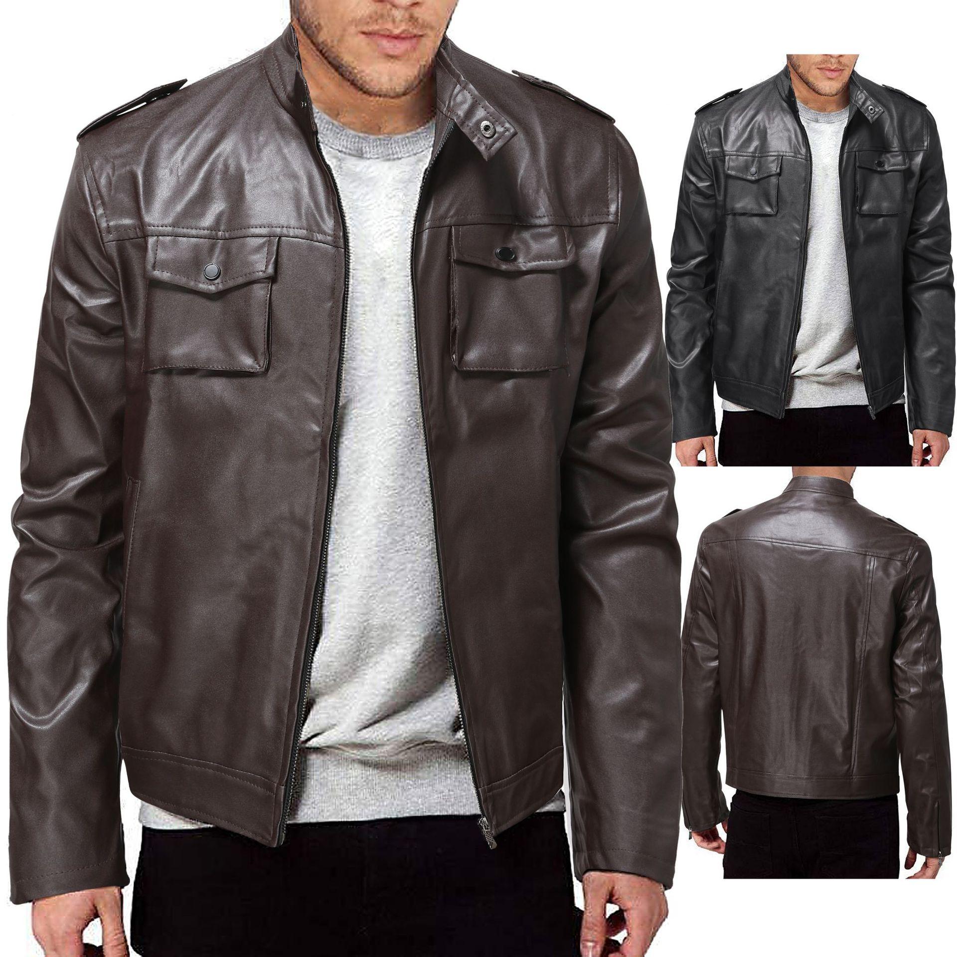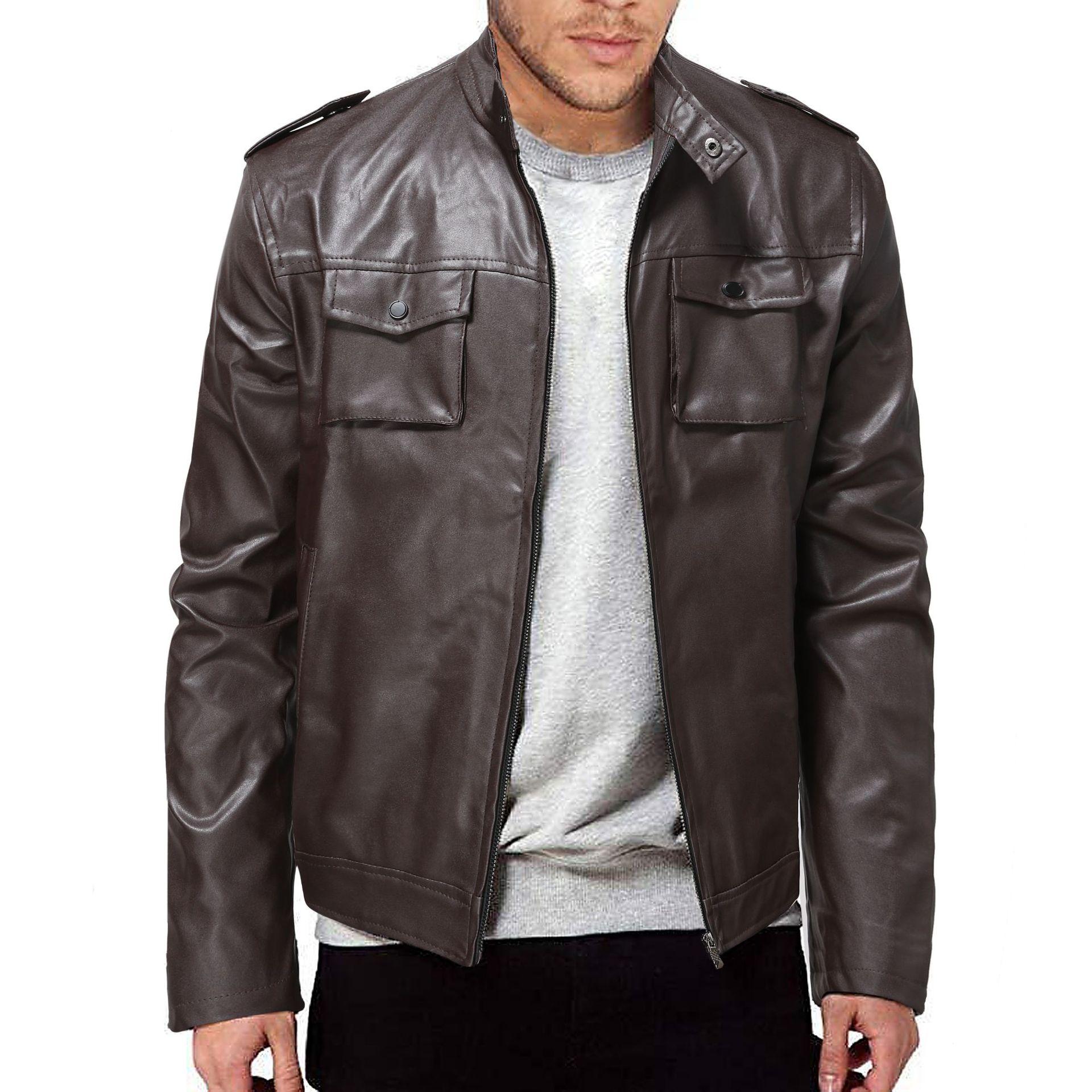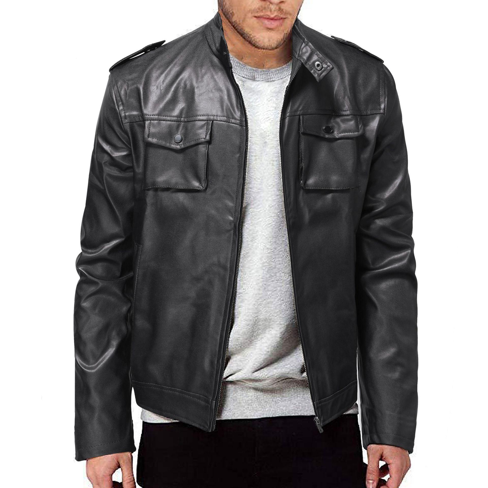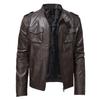 Chaqueta de cuero de cuello vertical para hombre, nueva chaqueta de cuero de comercio exterior transfronterizo, primavera y otoño de 2022, chaqueta de cuero de moda con doble bolsillo para hombre.