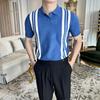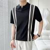 Polo de seda helada de punto de verano 2023 para hombre, informal, con solapa, corte entallado, manga corta, a rayas y contraste de color