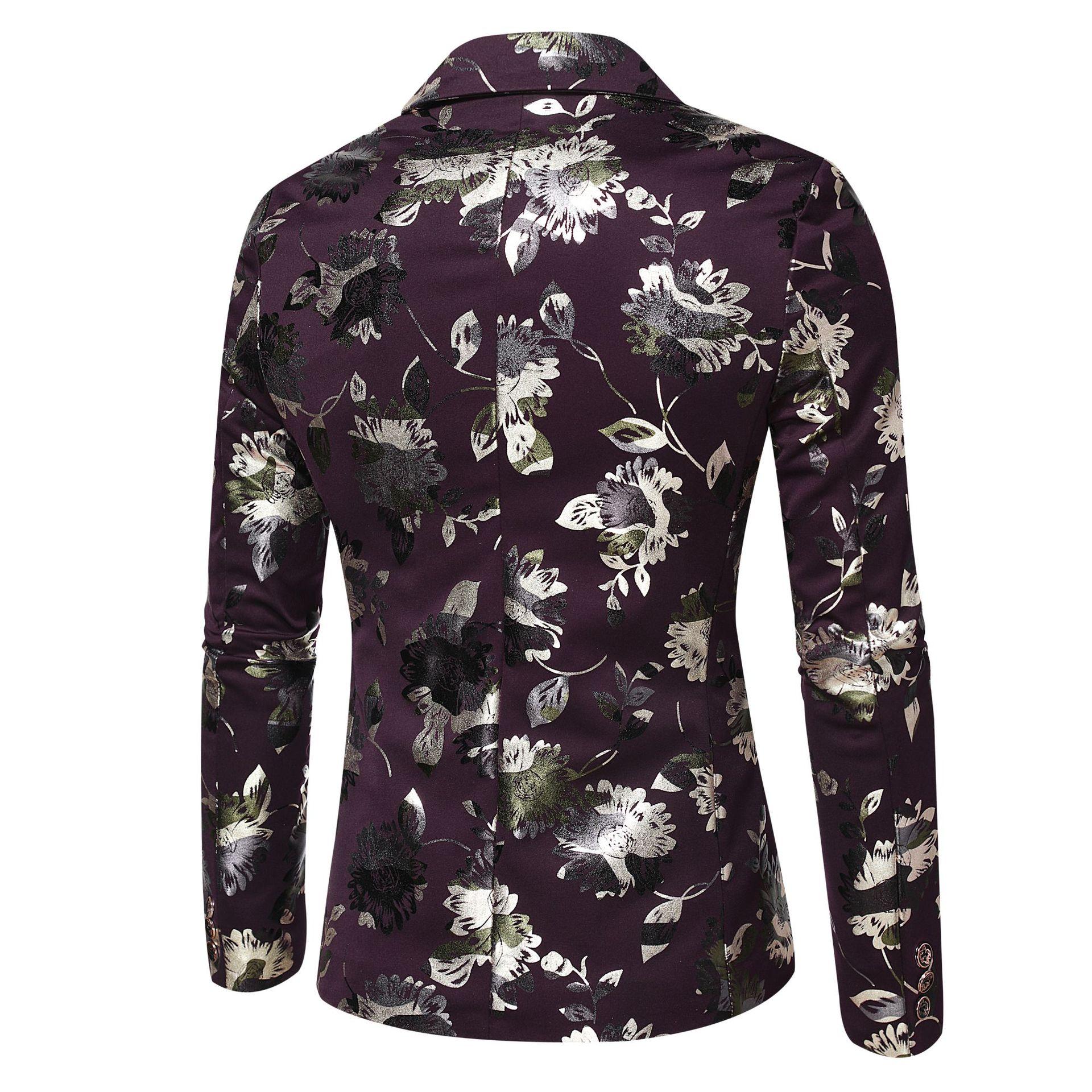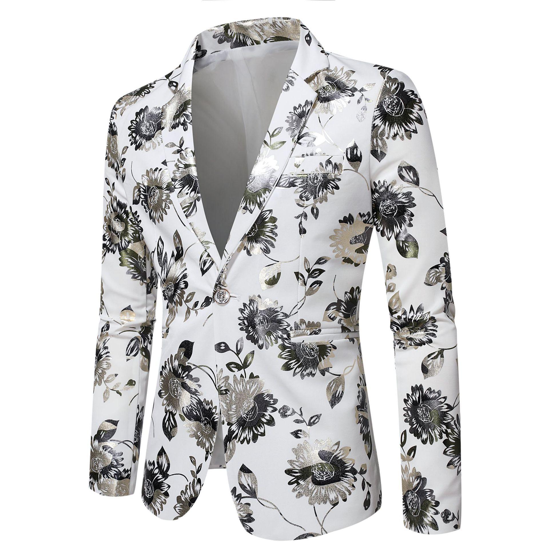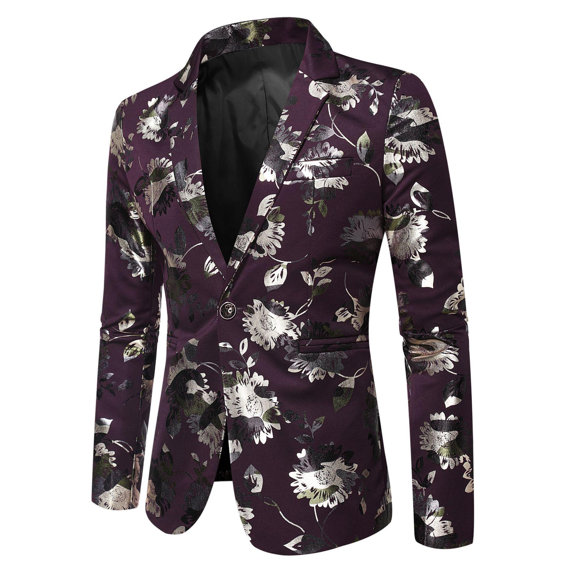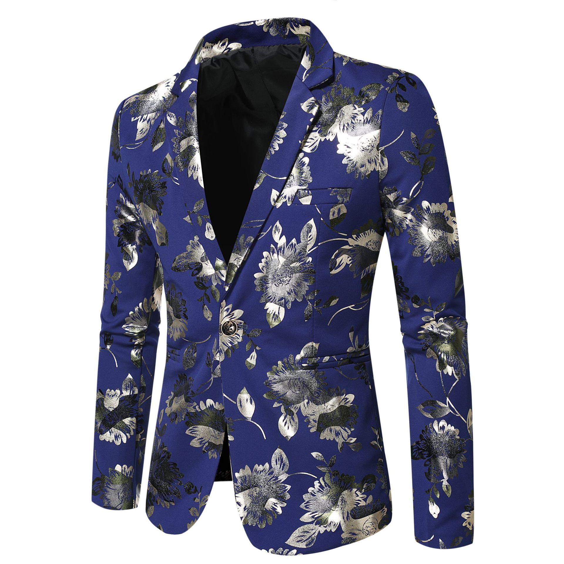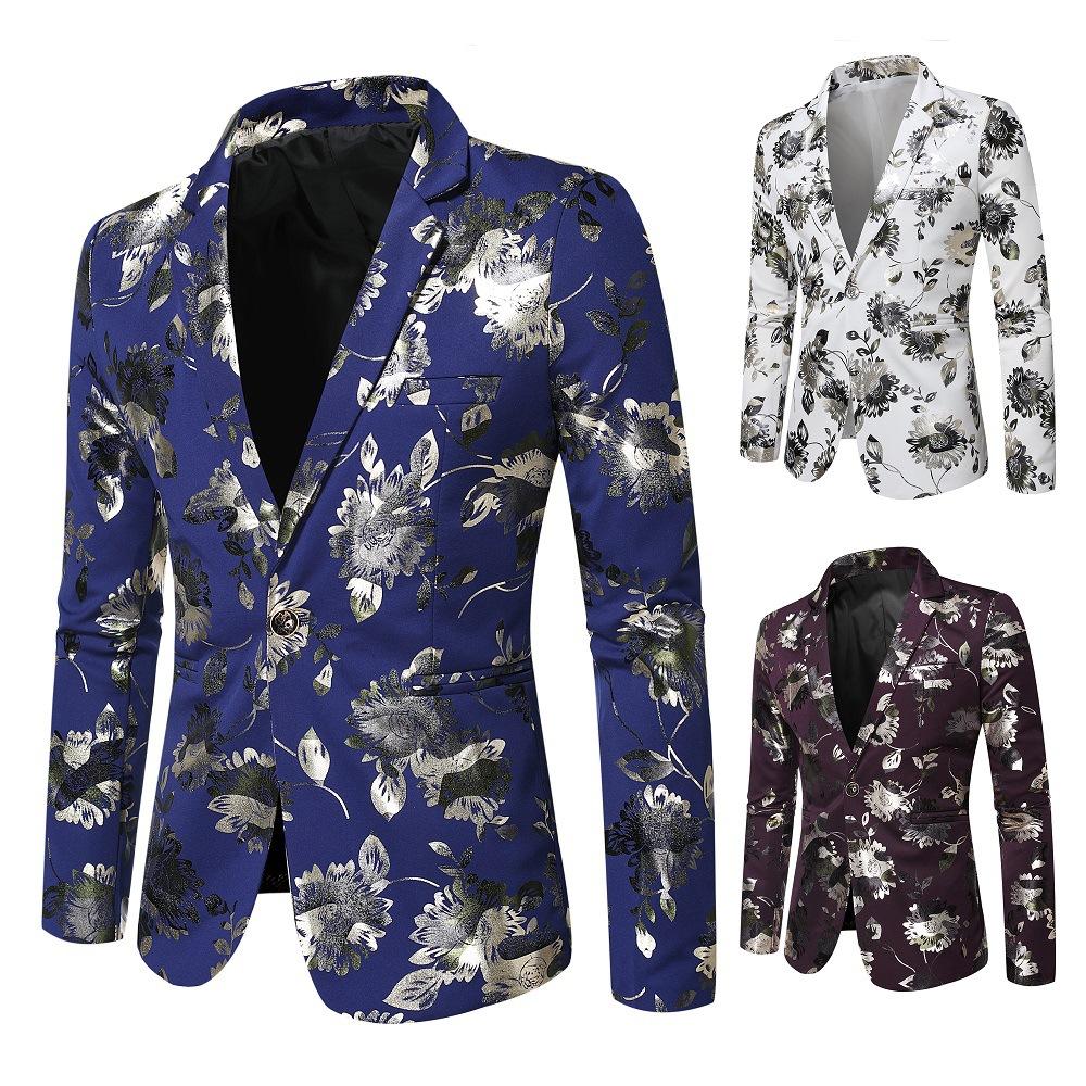 Traje Nuevo Coreano Slim Floral de Primavera y Otoño 2019 Chaqueta de Traje para Anfitrión de Actuación de Bar de Club Nocturno Boda