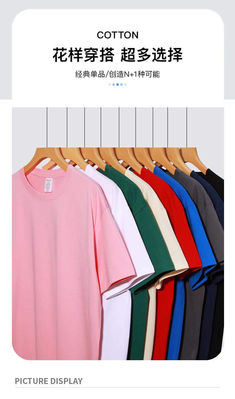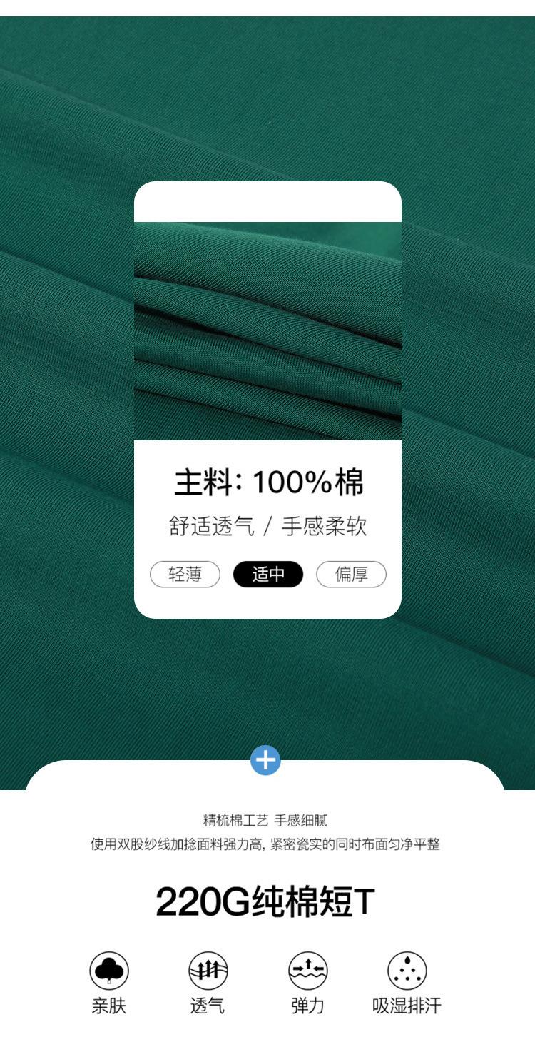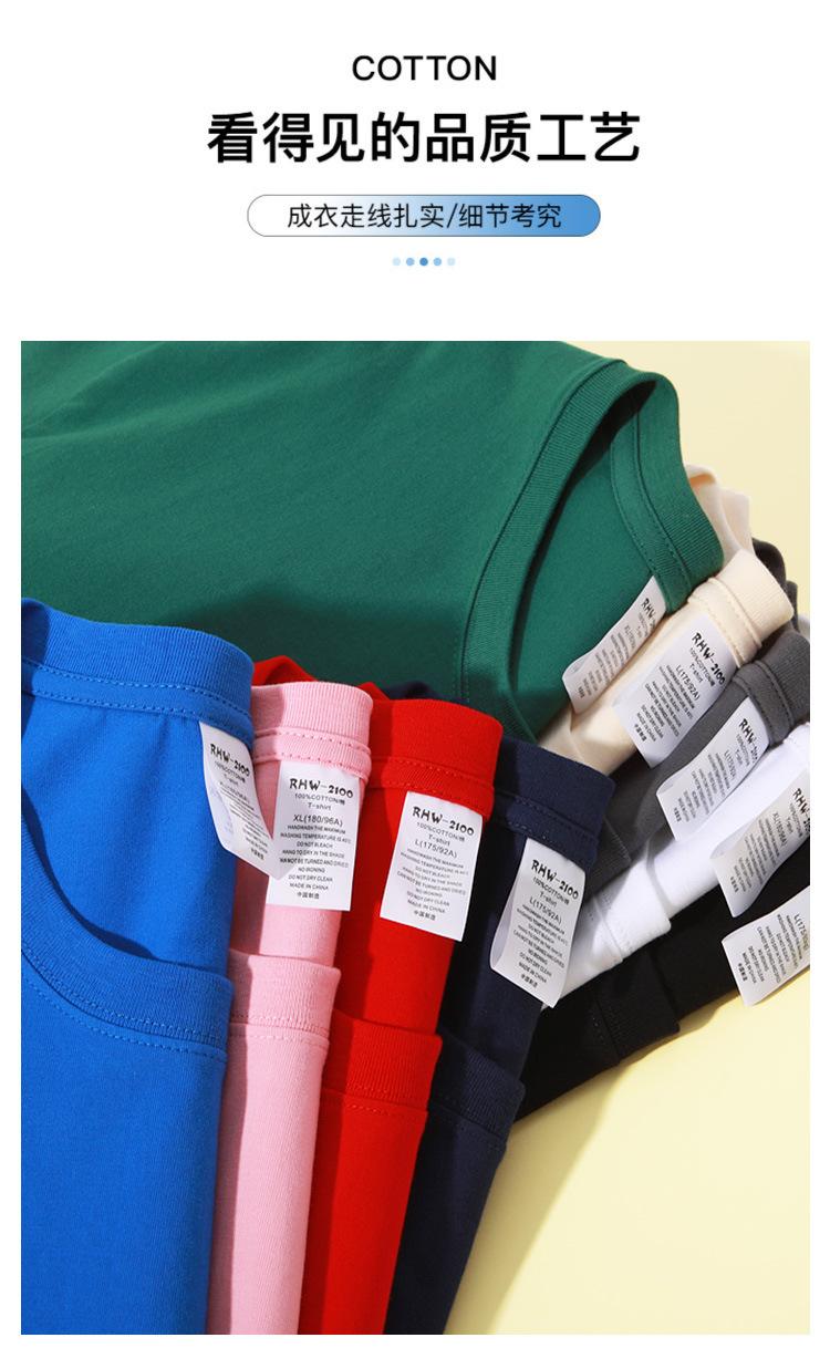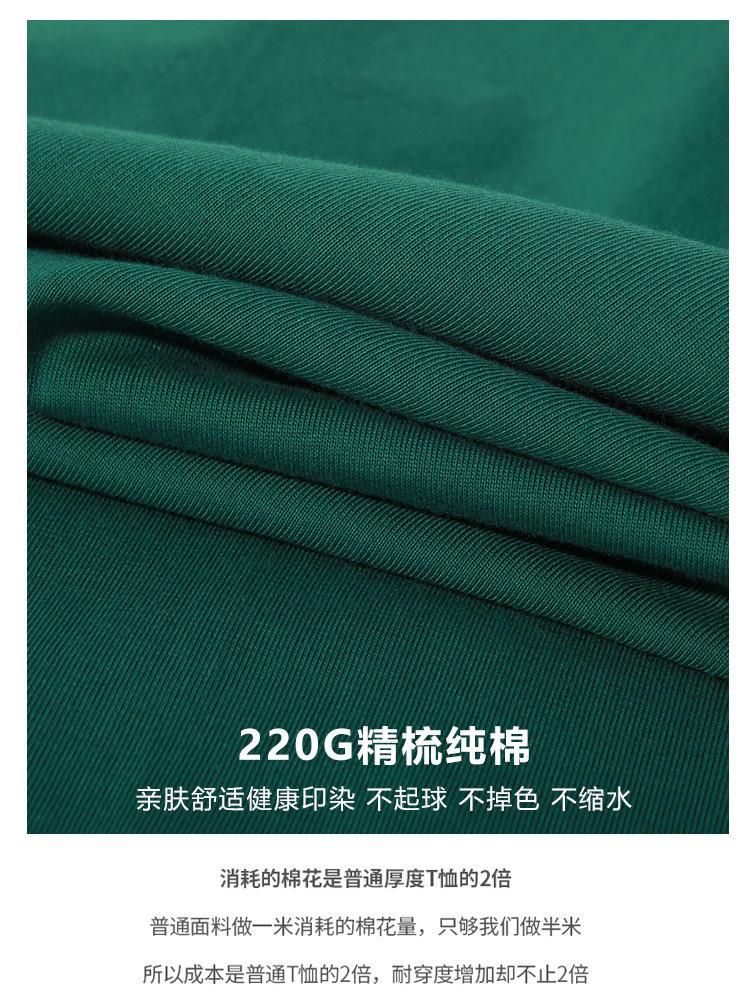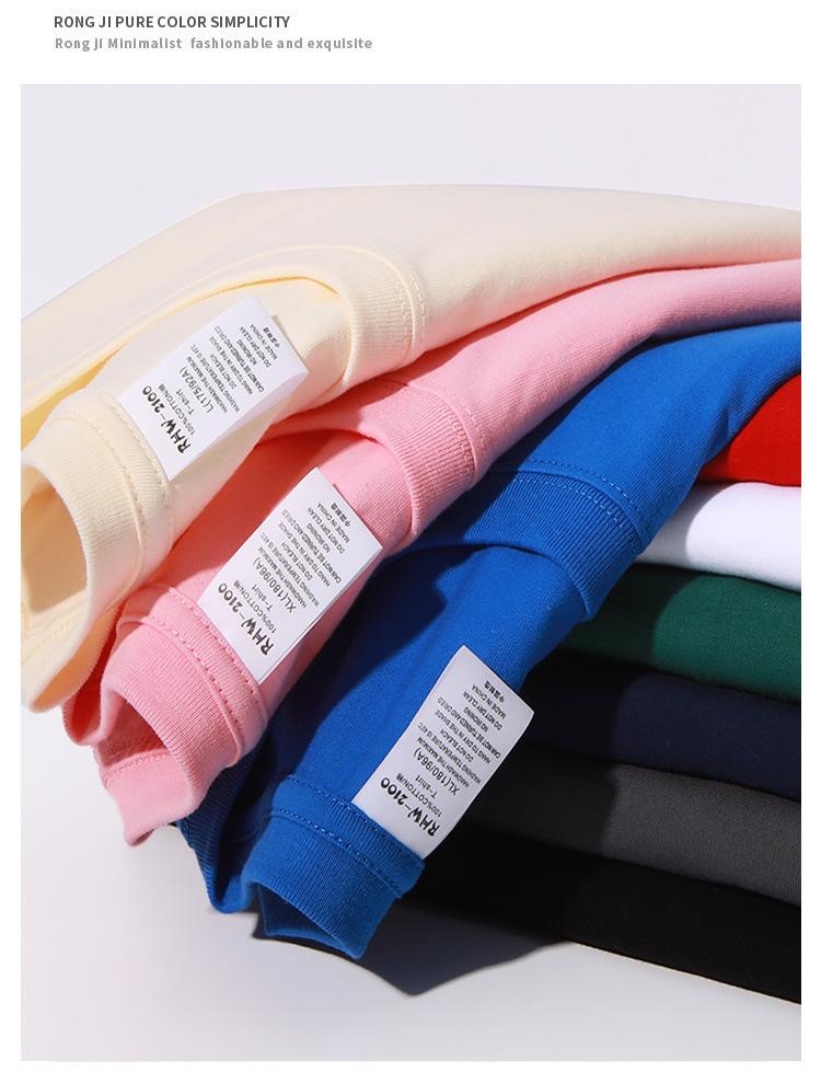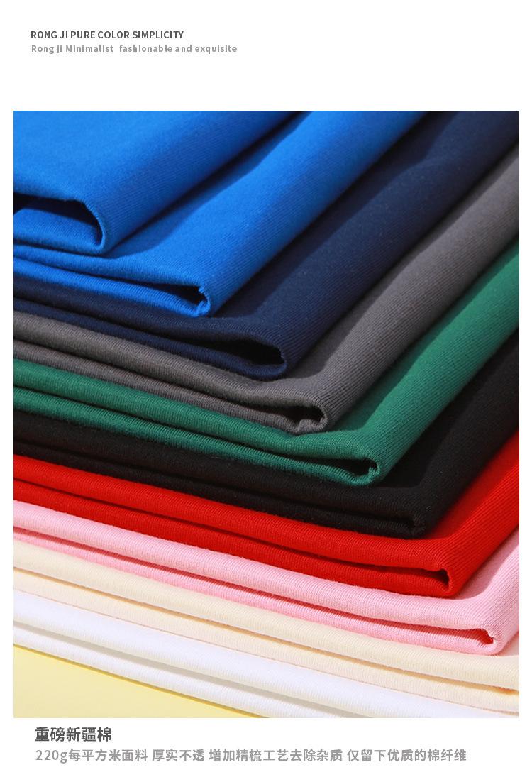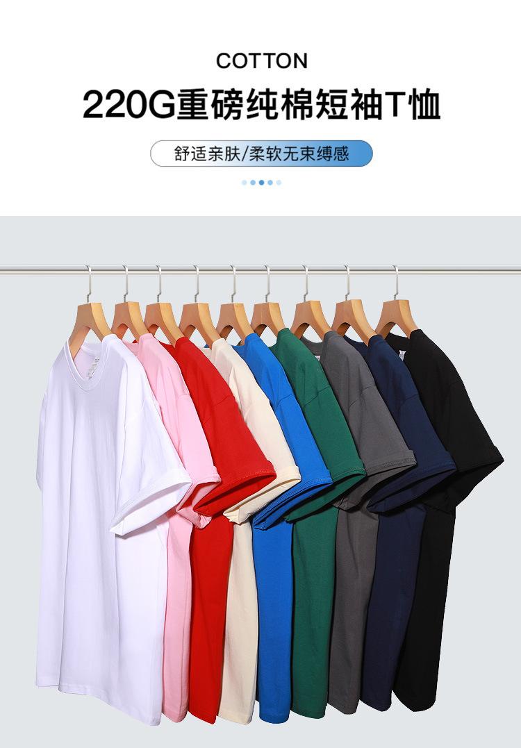 Camiseta americana de algodón pesado de 220 g, cuello redondo, manga corta, personalizada, talla Asia-Europa, versión grande, mono de grupo de color sólido, venta al por mayor