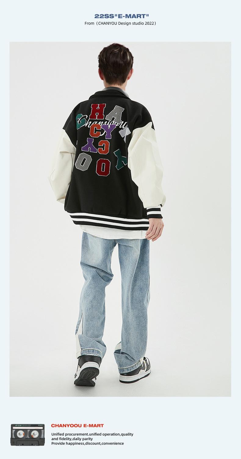 Compra Ropa de Hombre a la Moda | Chaqueta de Bordado de Letras Hip-Hop Estilo Americano para Hombre, Corte Holgado, Chaqueta de Béisbol con Cuello Vuelto, Elegante. al por mayor en Joom.pro