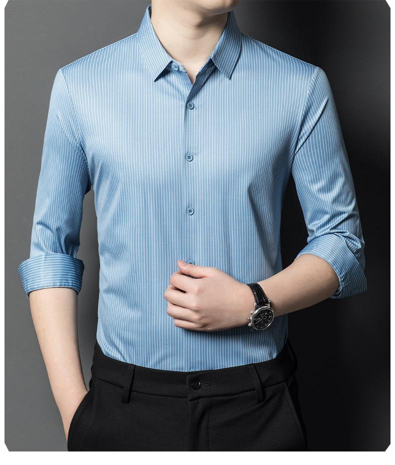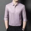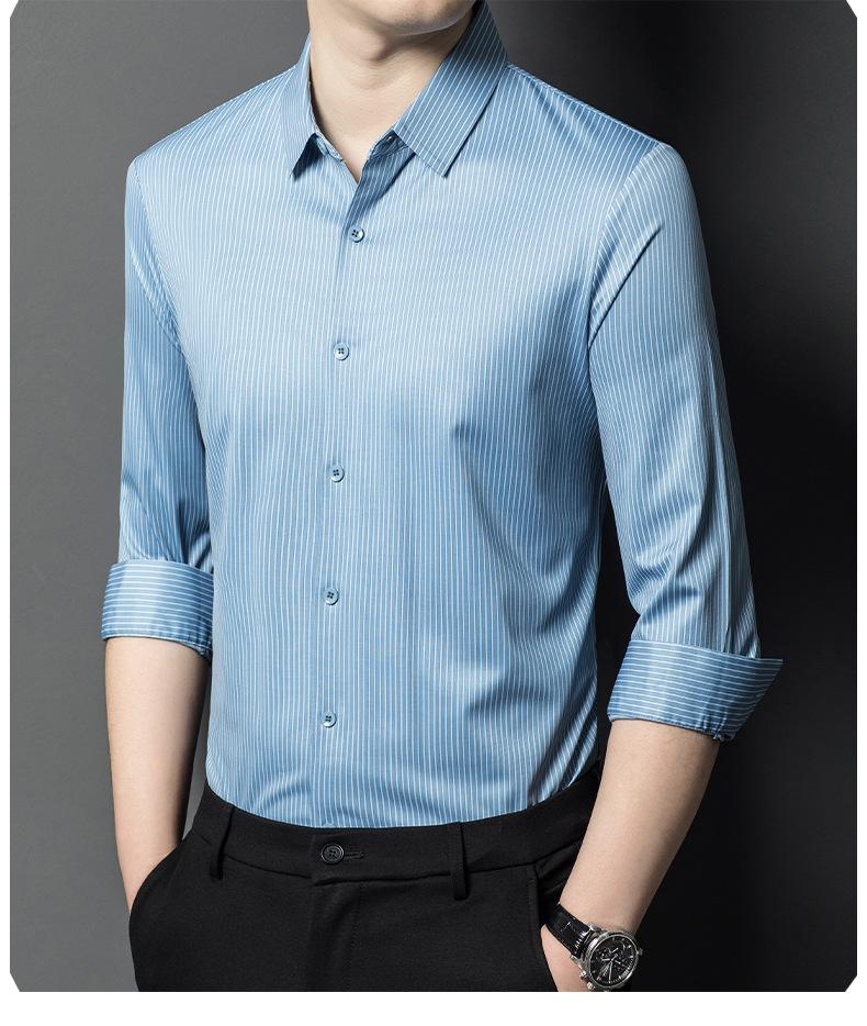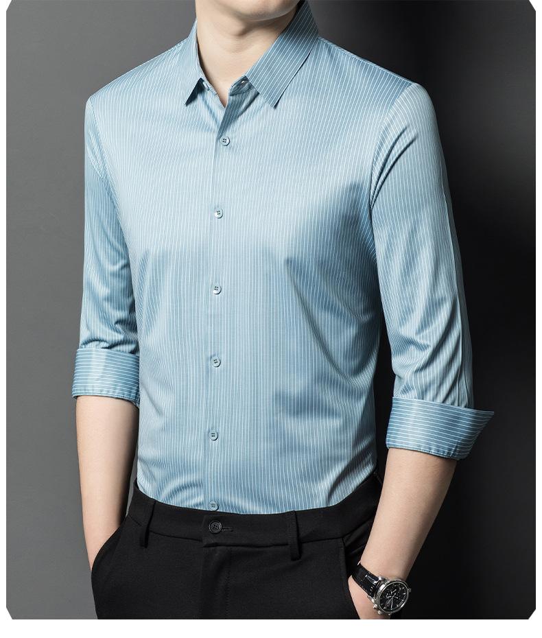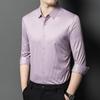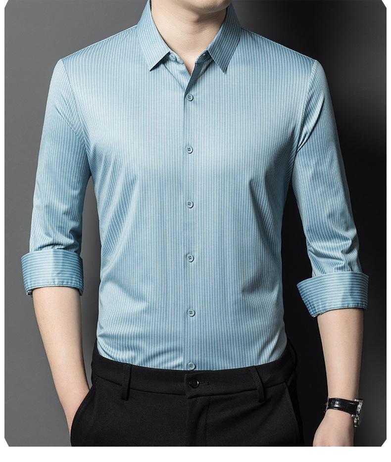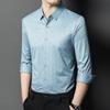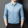 Camisa de Manga Larga Nueva de Primavera 2024 para Hombre, Solapa Casual de Negocios de Alta Gama, Camisa Elástica Sin Costuras para Hombre de Mediana Edad