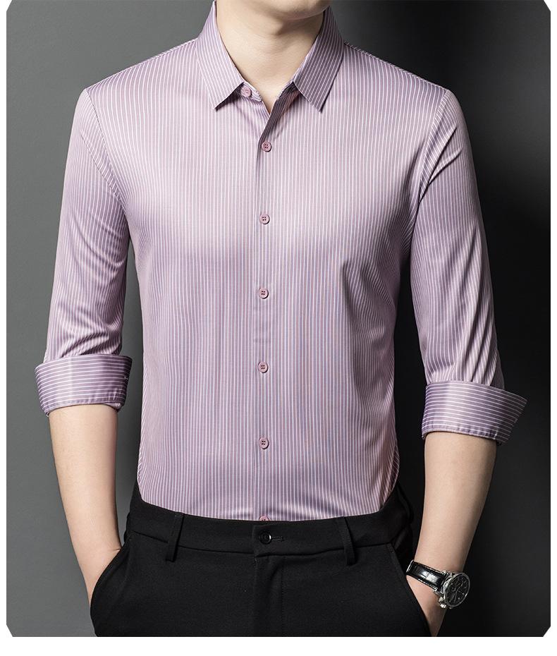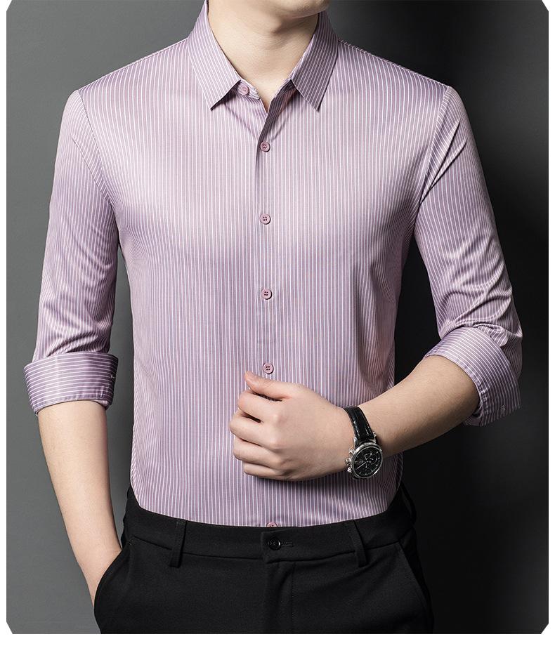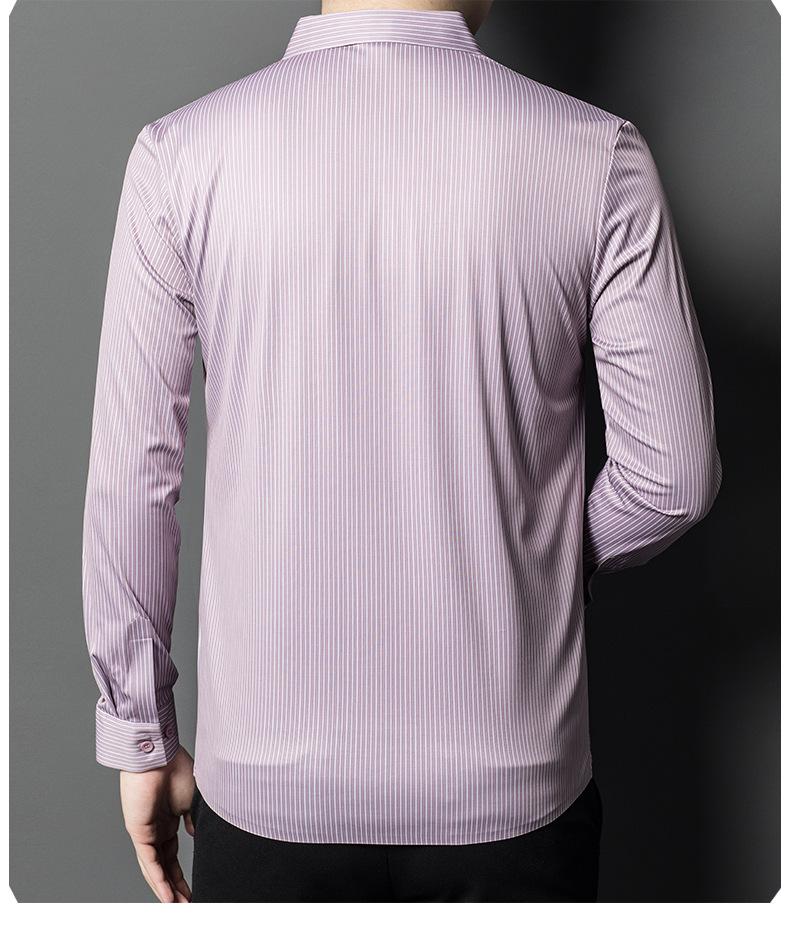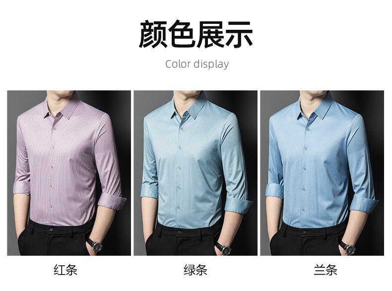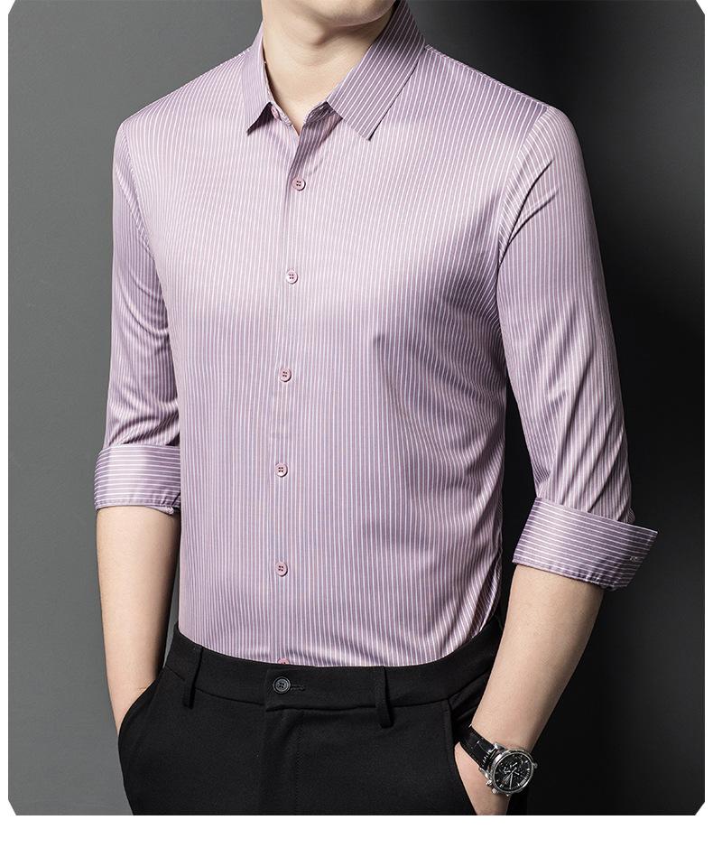 Camisa de Manga Larga Nueva de Primavera 2024 para Hombre, Solapa Casual de Negocios de Alta Gama, Camisa Elástica Sin Costuras para Hombre de Mediana Edad