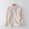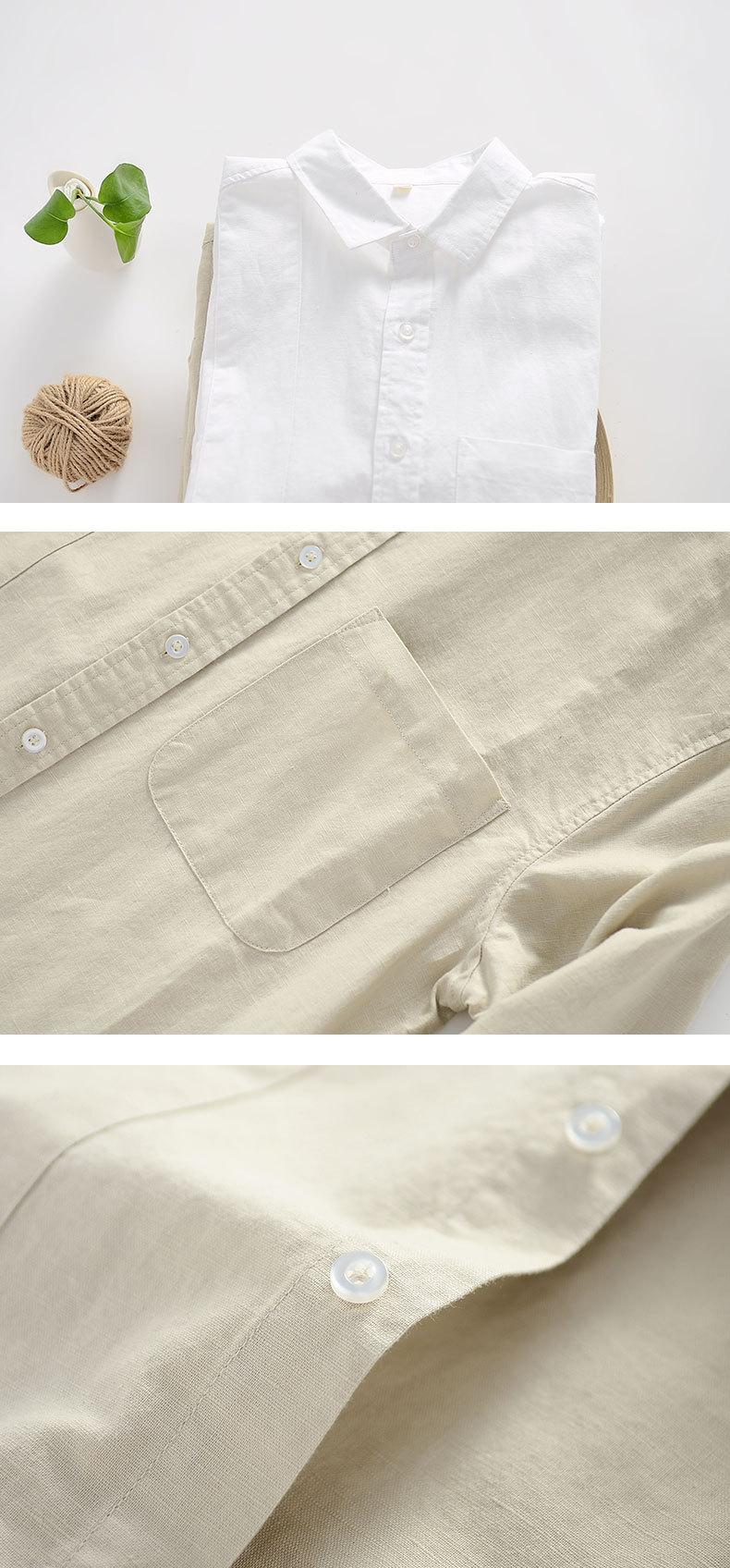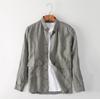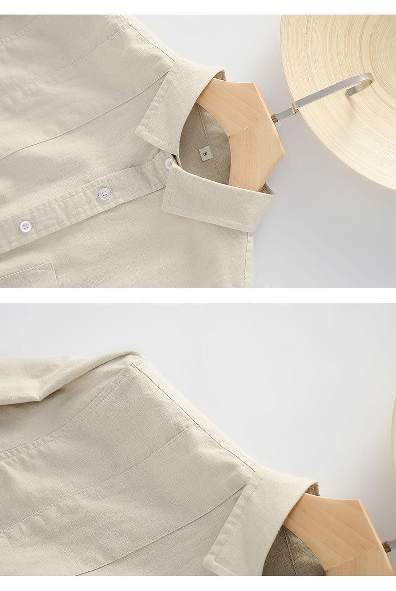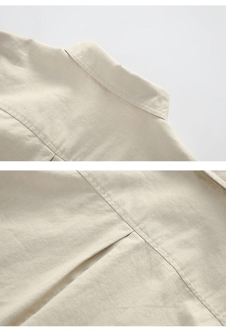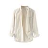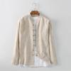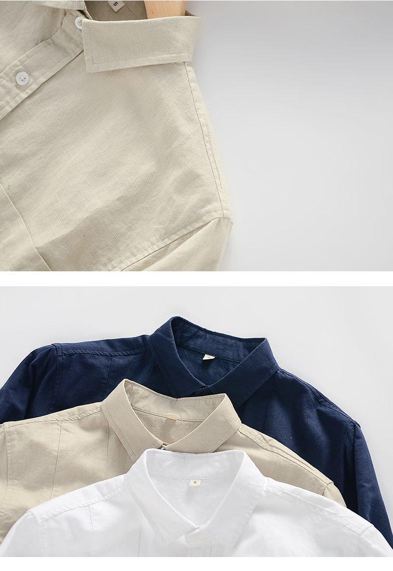 Cárdigan Casual de Lino de Manga Larga con Solapa para Hombre Primavera 2024 Suelto Color Sólido Camisa de Lino Fina D034