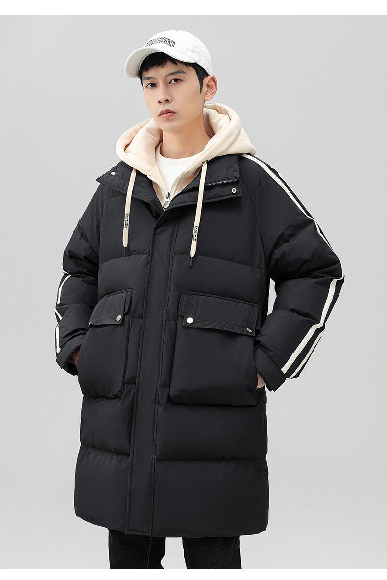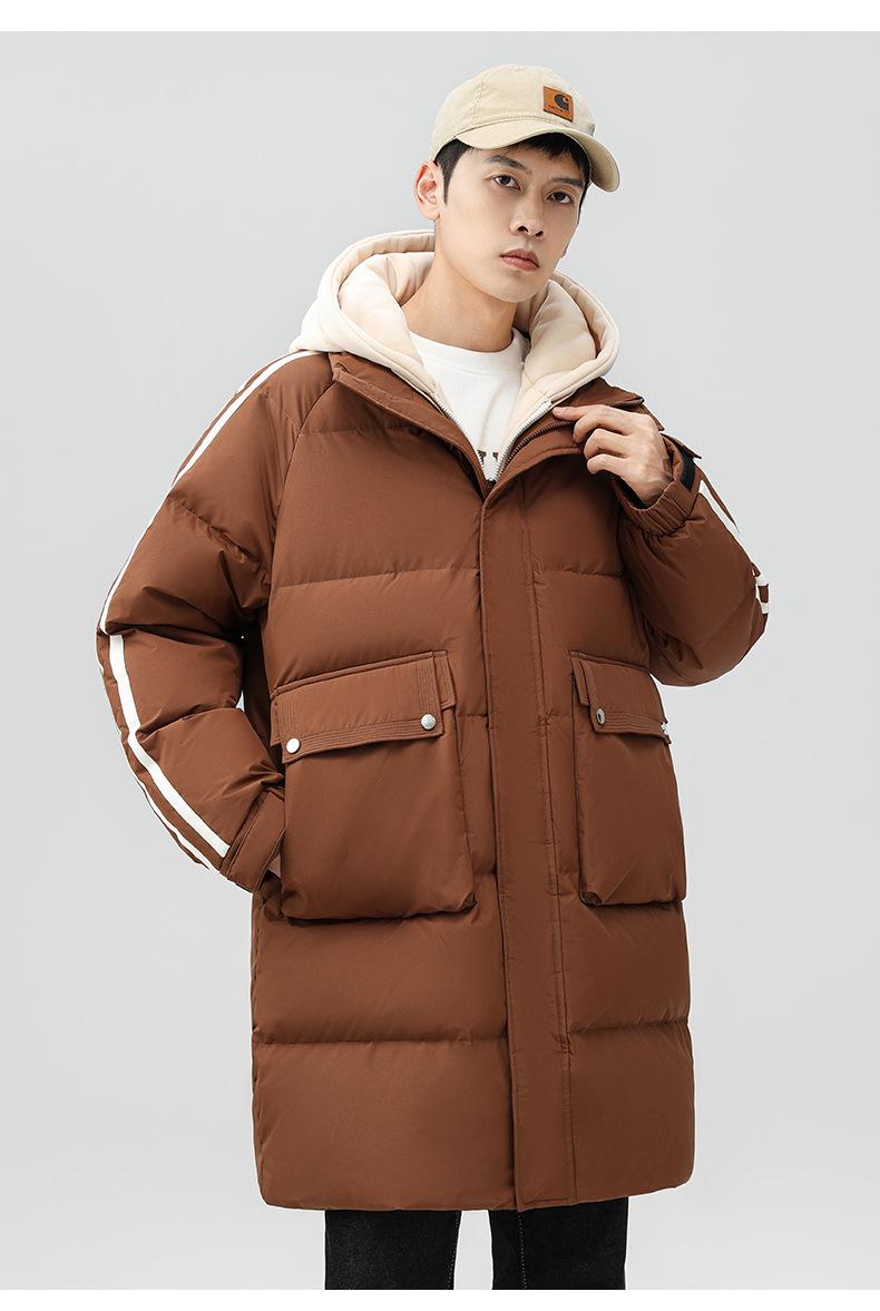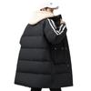 2023 nuevo abrigo cálido de plumón de longitud media para hombre abrigo de invierno juvenil moderno grueso con capucha cómodo para pareja
