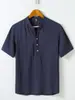 Camisa de manga corta para hombre, estilo chino, de lino estampado, con botones y cuello alto, talla grande, novedad de verano de 2023