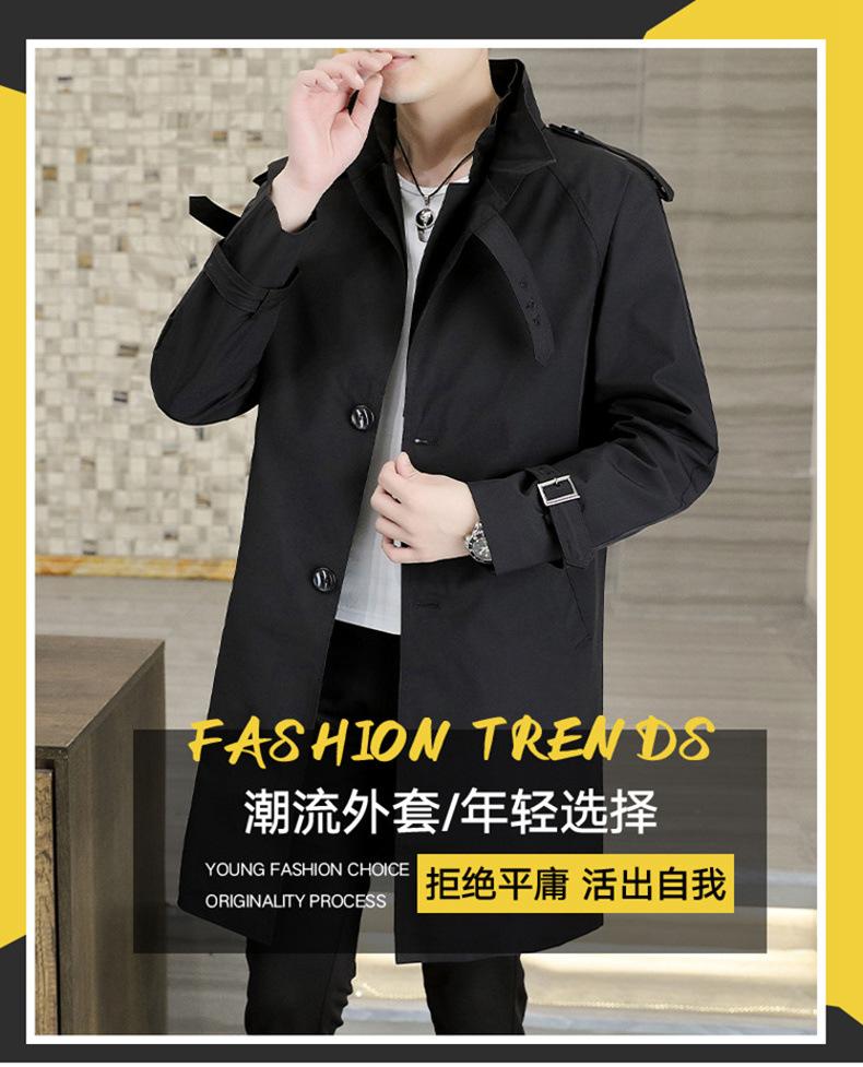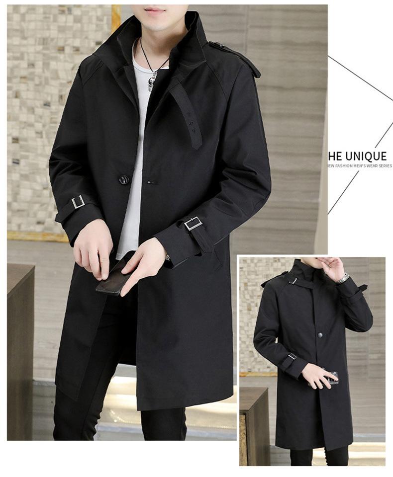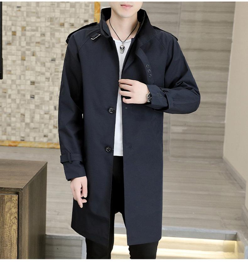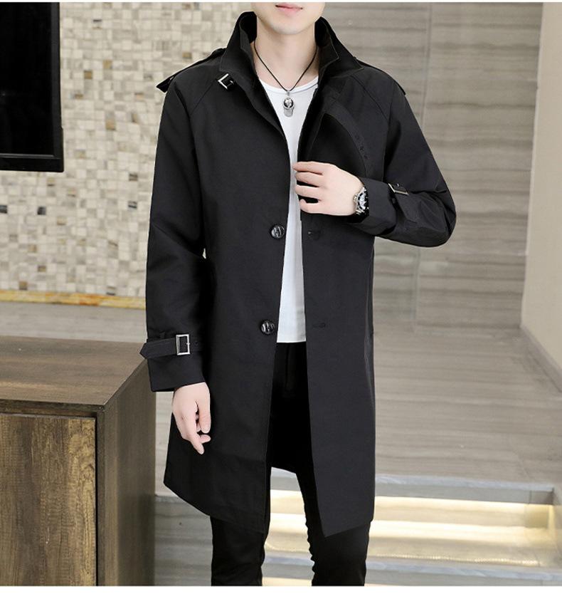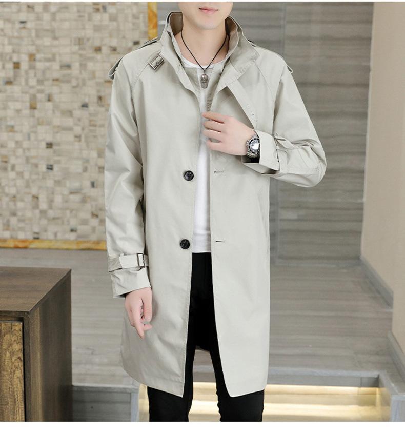 Abrigo Trench para Hombre, Nuevo Estilo de Otoño, Cruzado Sencillo, Chaqueta Casual Holgada de Largo Medio, Diseño Elegante, Abrigo de Moda para Hombre