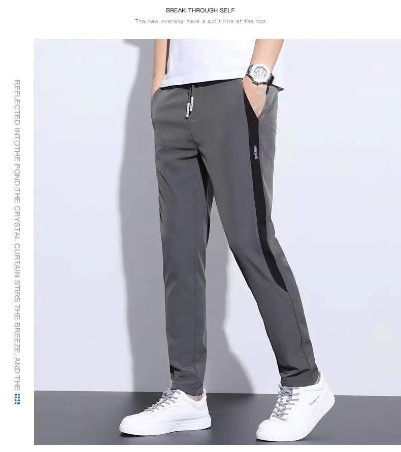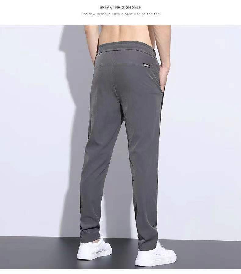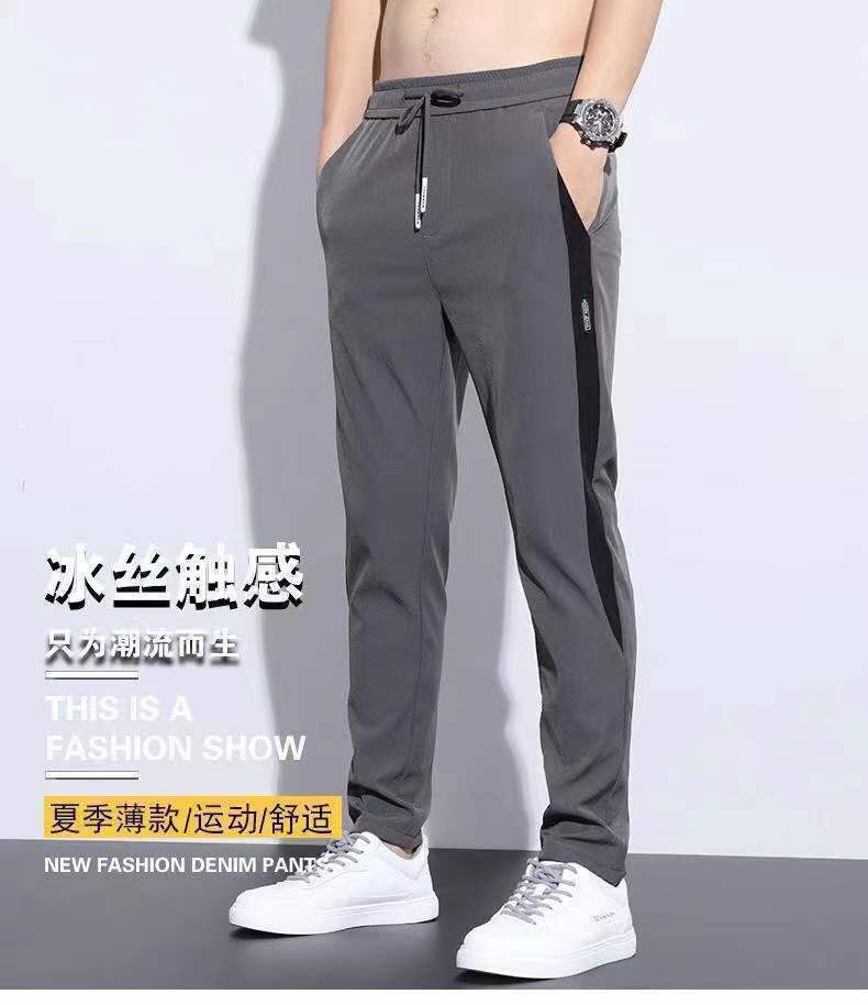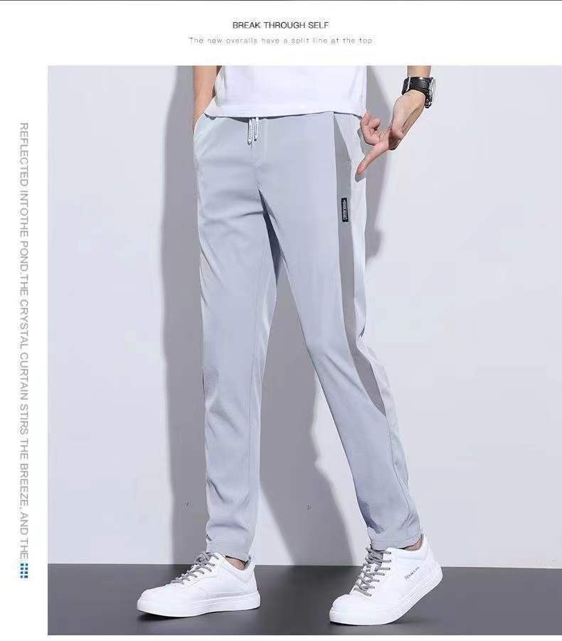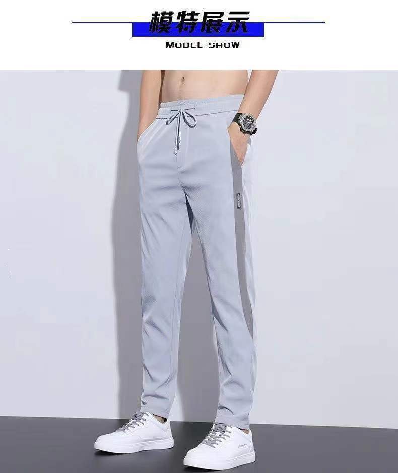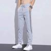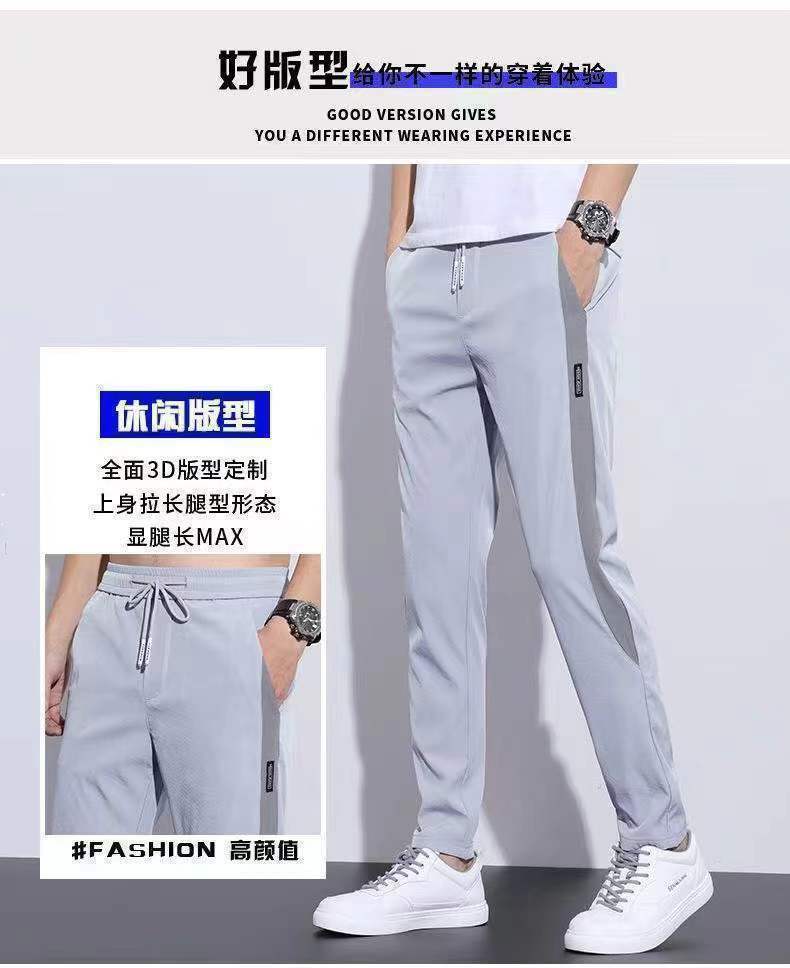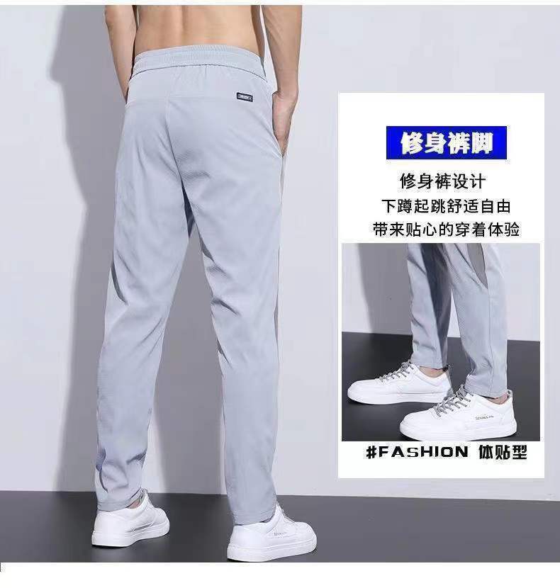 Pantalones casuales de seda fina de hielo para hombre, pantalones rectos de talla grande con costuras, pantalones ajustados coreanos, nuevos de verano