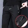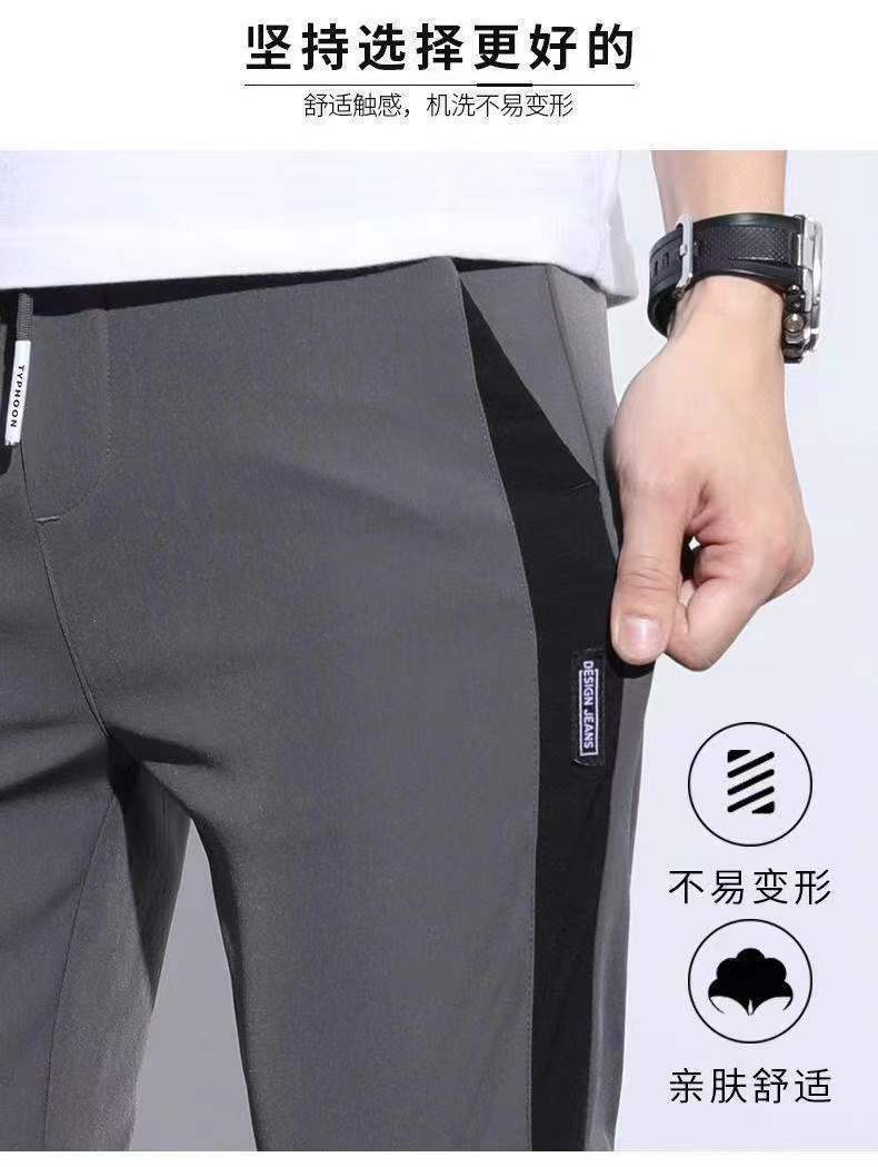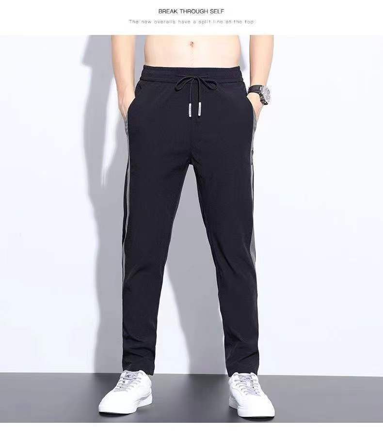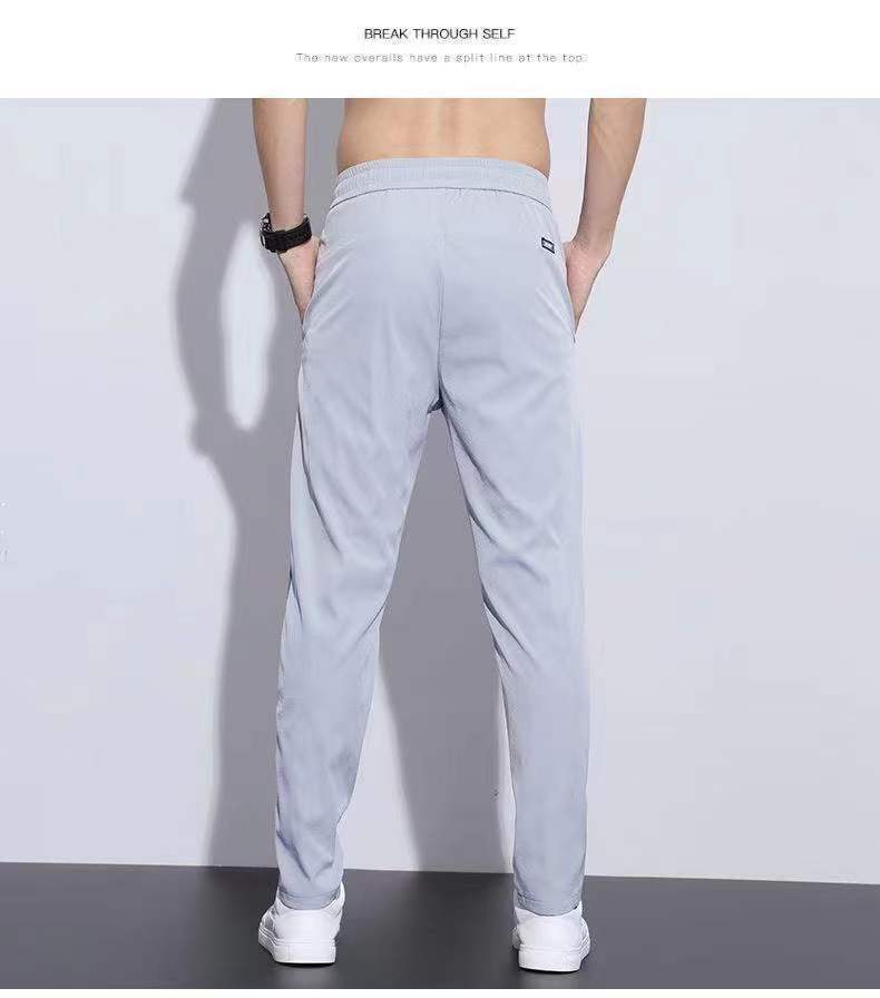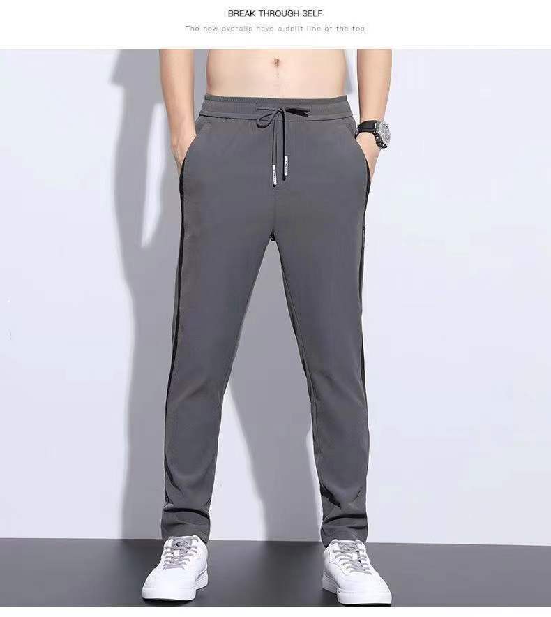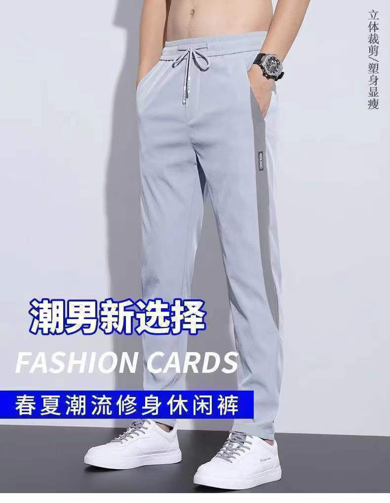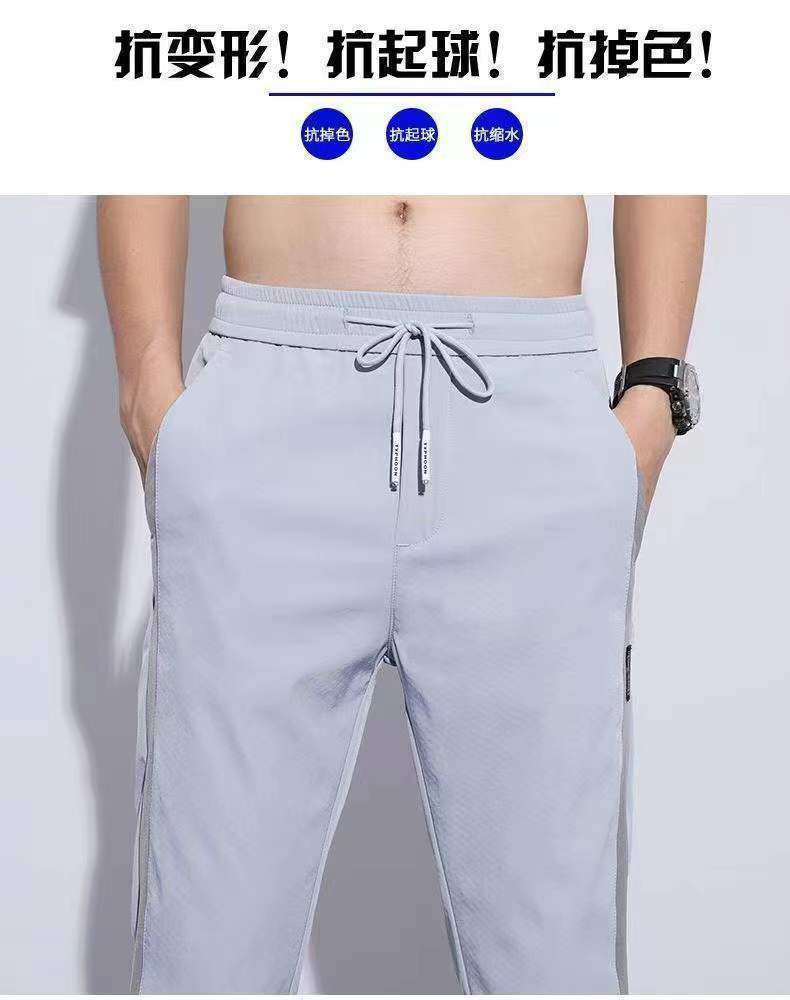 Pantalones casuales de seda fina de hielo para hombre, pantalones rectos de talla grande con costuras, pantalones ajustados coreanos, nuevos de verano
