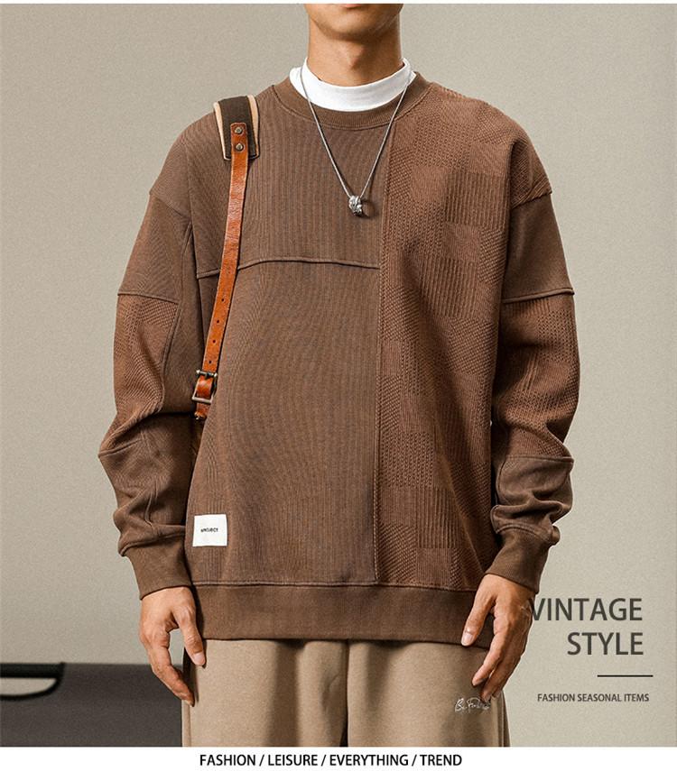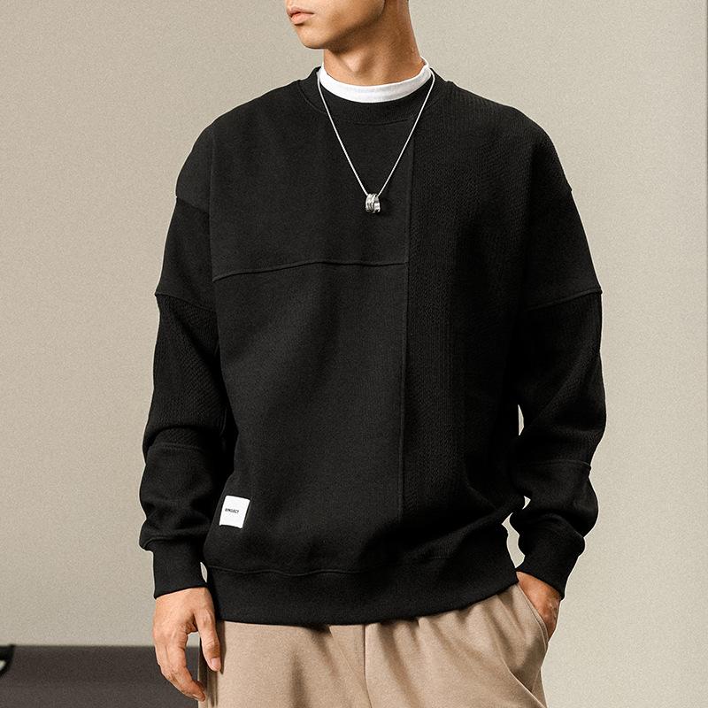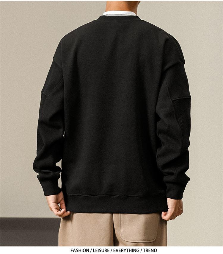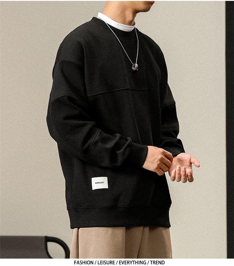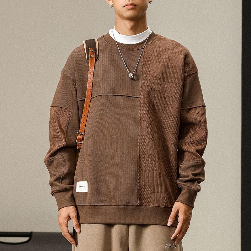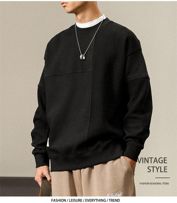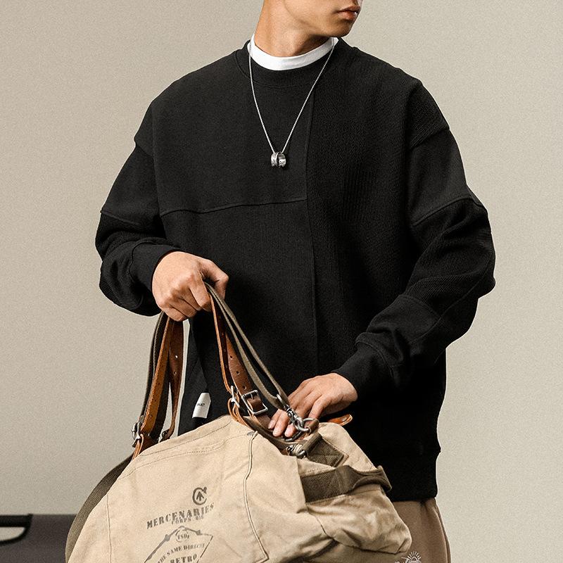 Otoño Nueva Moda de Marca Estilo Americano Retro Peso Pesado Cuello Redondo Sudor Ropa Holgada de Talla Grande para Hombre Costuras Top de Manga Larga a la Moda