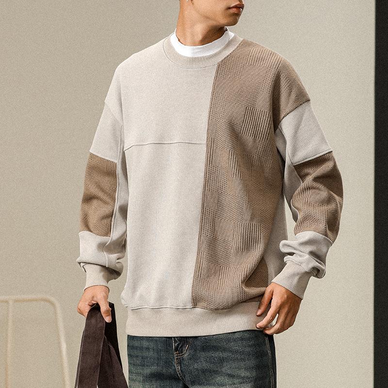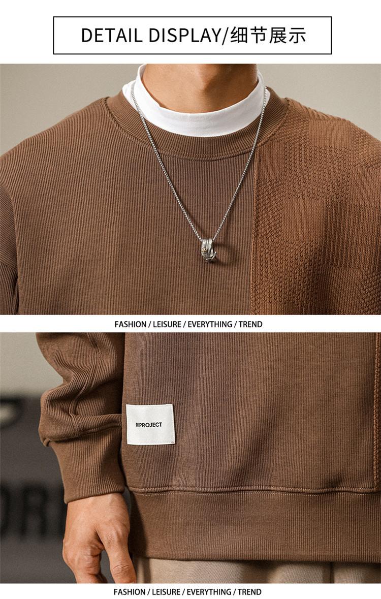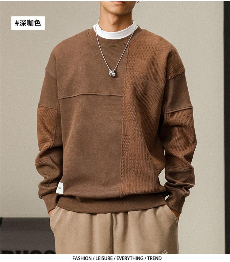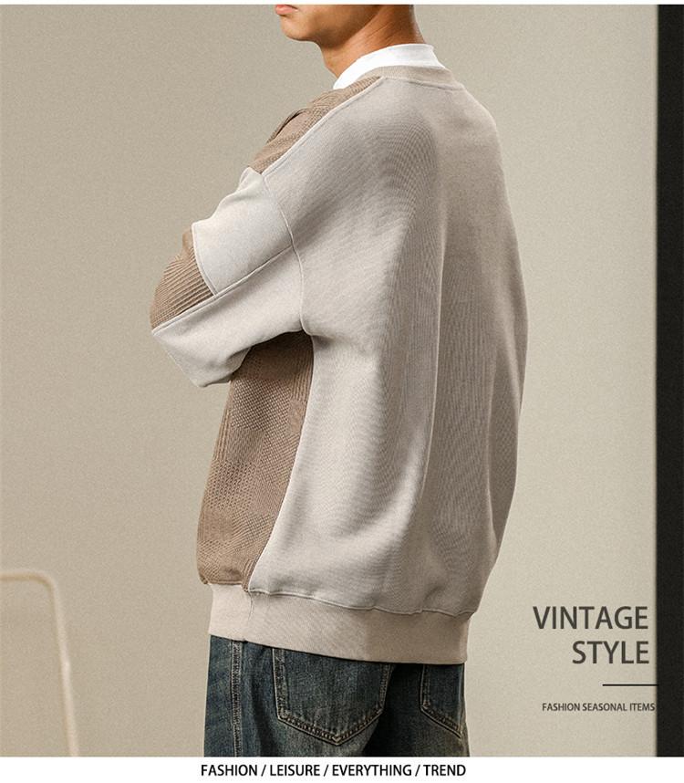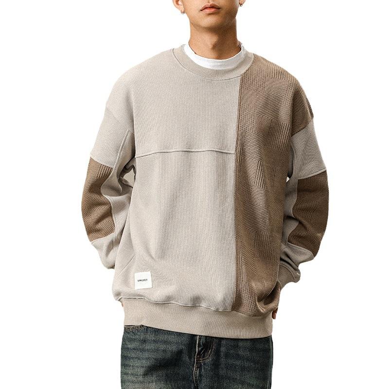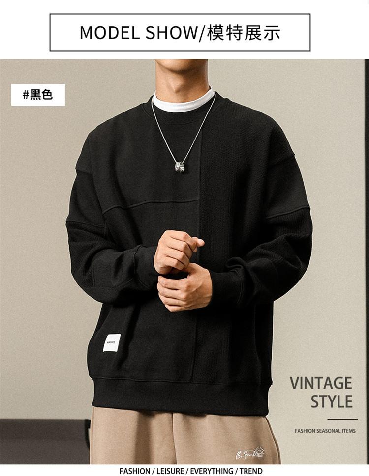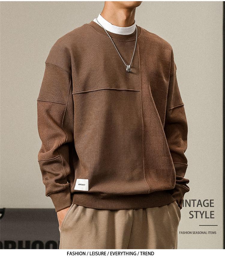 Otoño Nueva Moda de Marca Estilo Americano Retro Peso Pesado Cuello Redondo Sudor Ropa Holgada de Talla Grande para Hombre Costuras Top de Manga Larga a la Moda