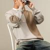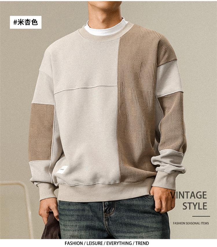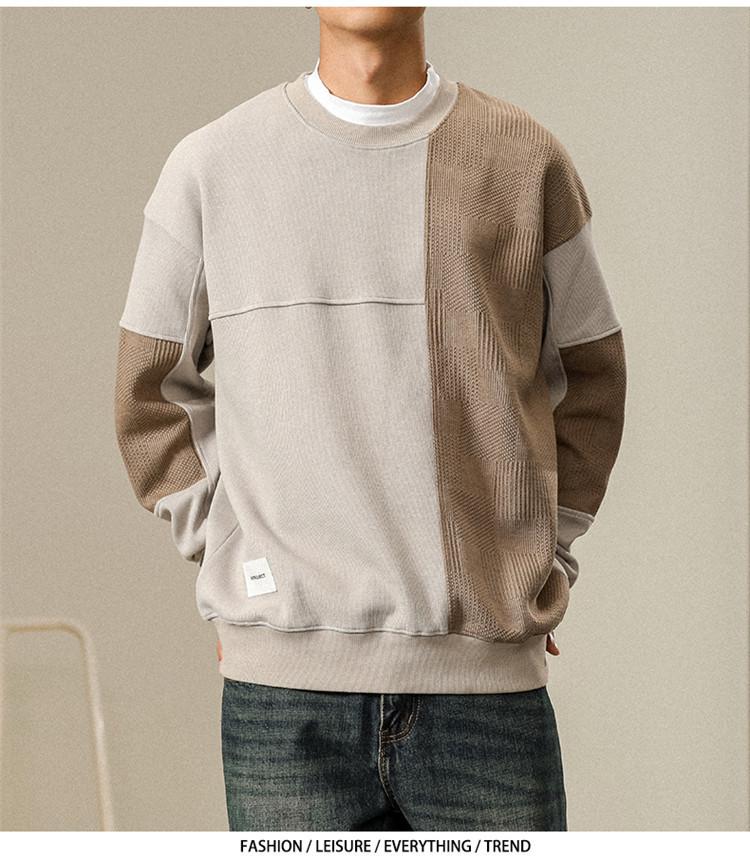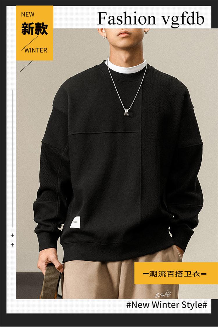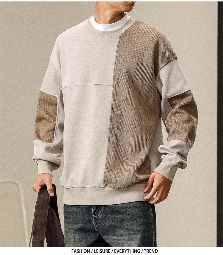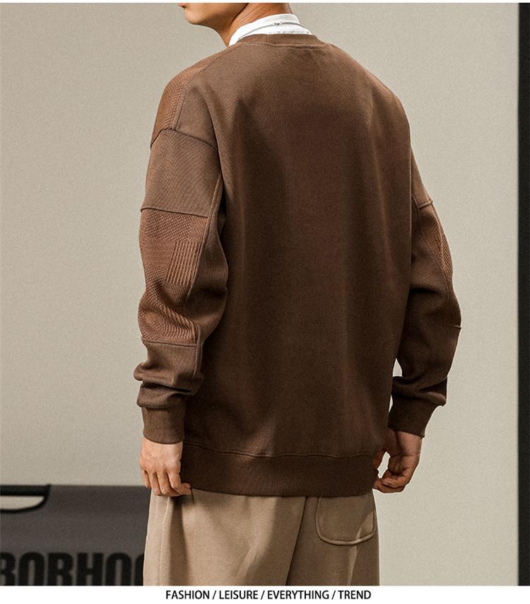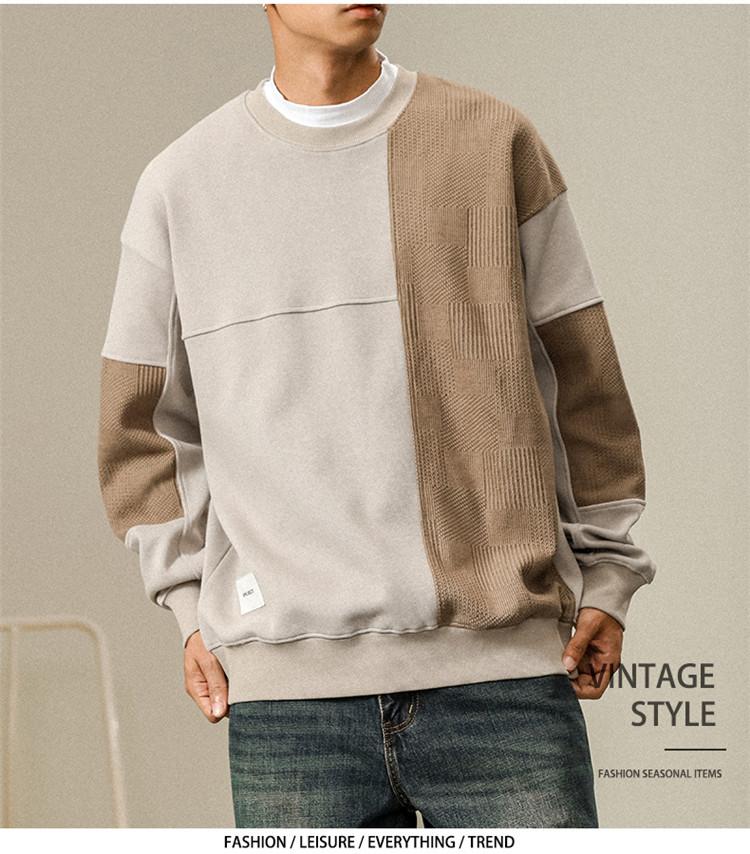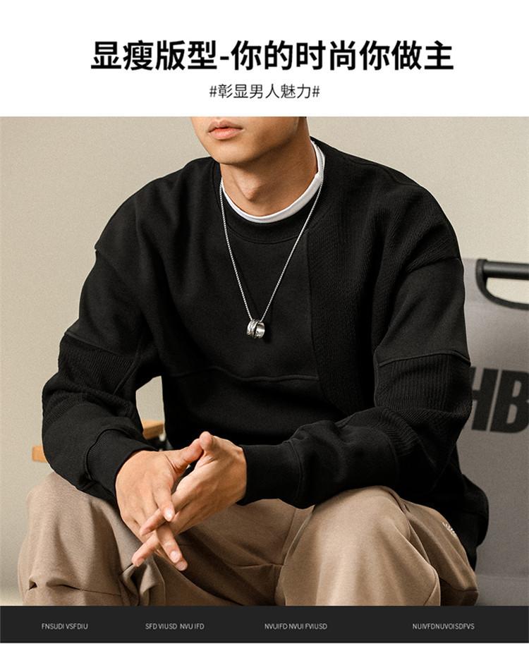 Otoño Nueva Moda de Marca Estilo Americano Retro Peso Pesado Cuello Redondo Sudor Ropa Holgada de Talla Grande para Hombre Costuras Top de Manga Larga a la Moda