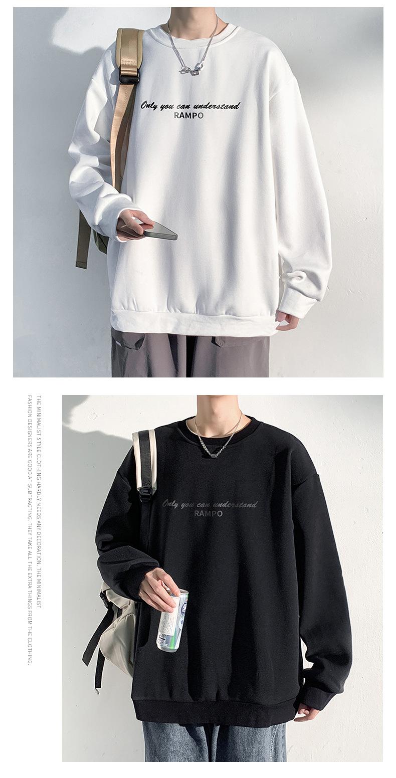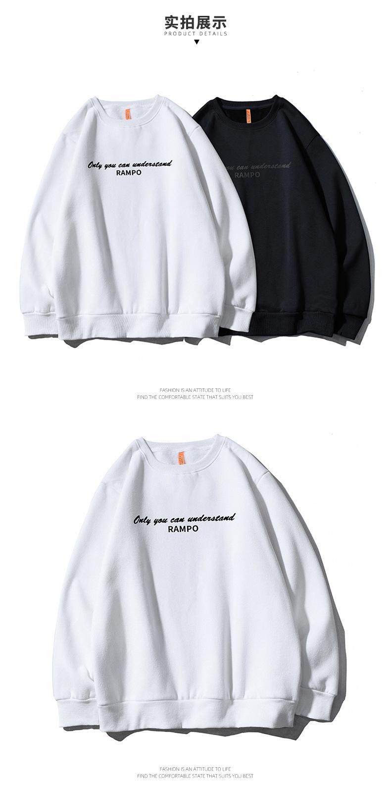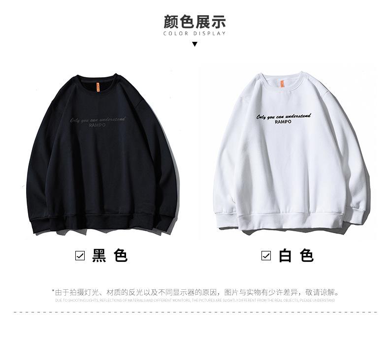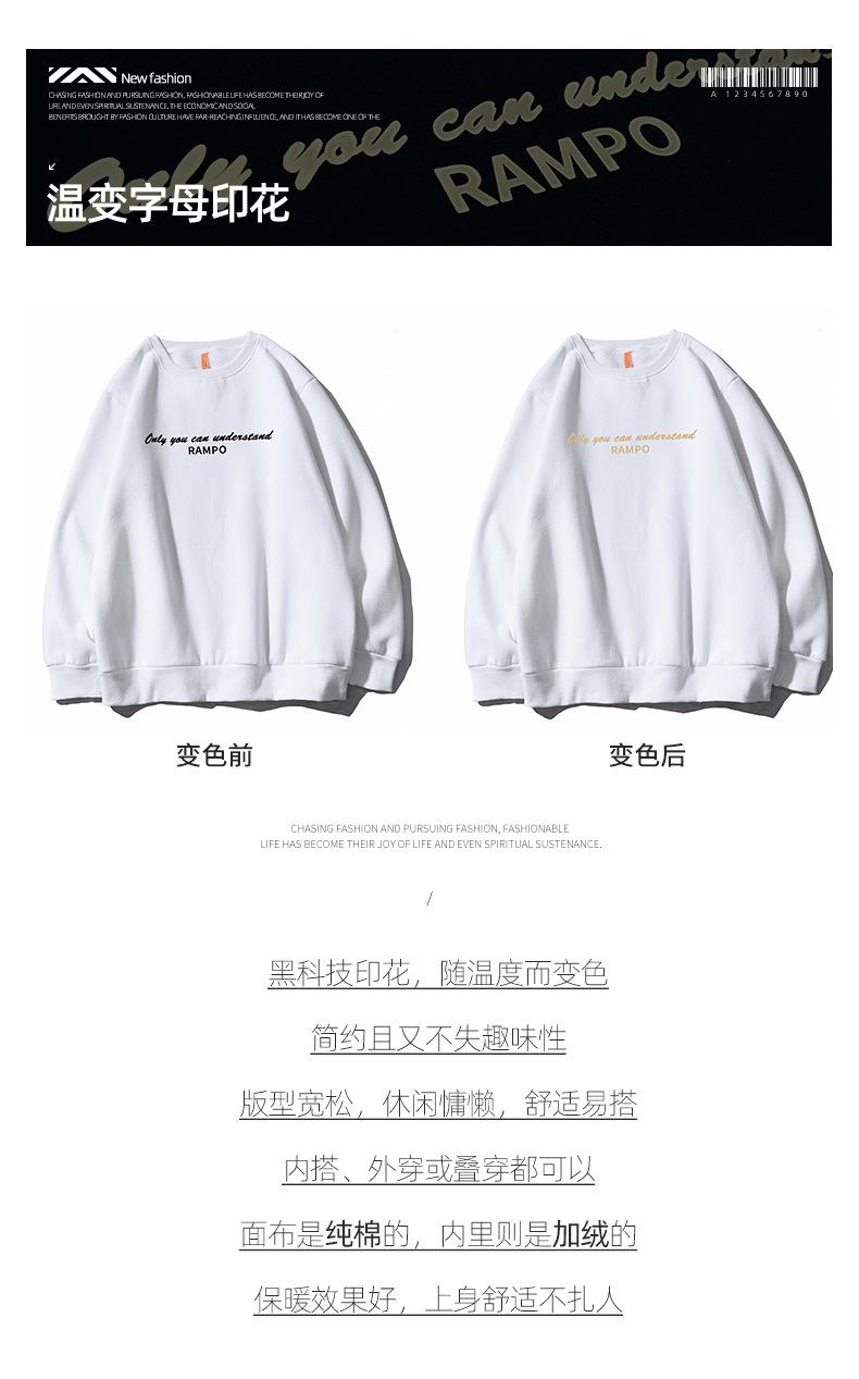 WY2616 temperature change letter fleece-lined round neck black, WY2616 temperature change letter fleece-lined round neck White