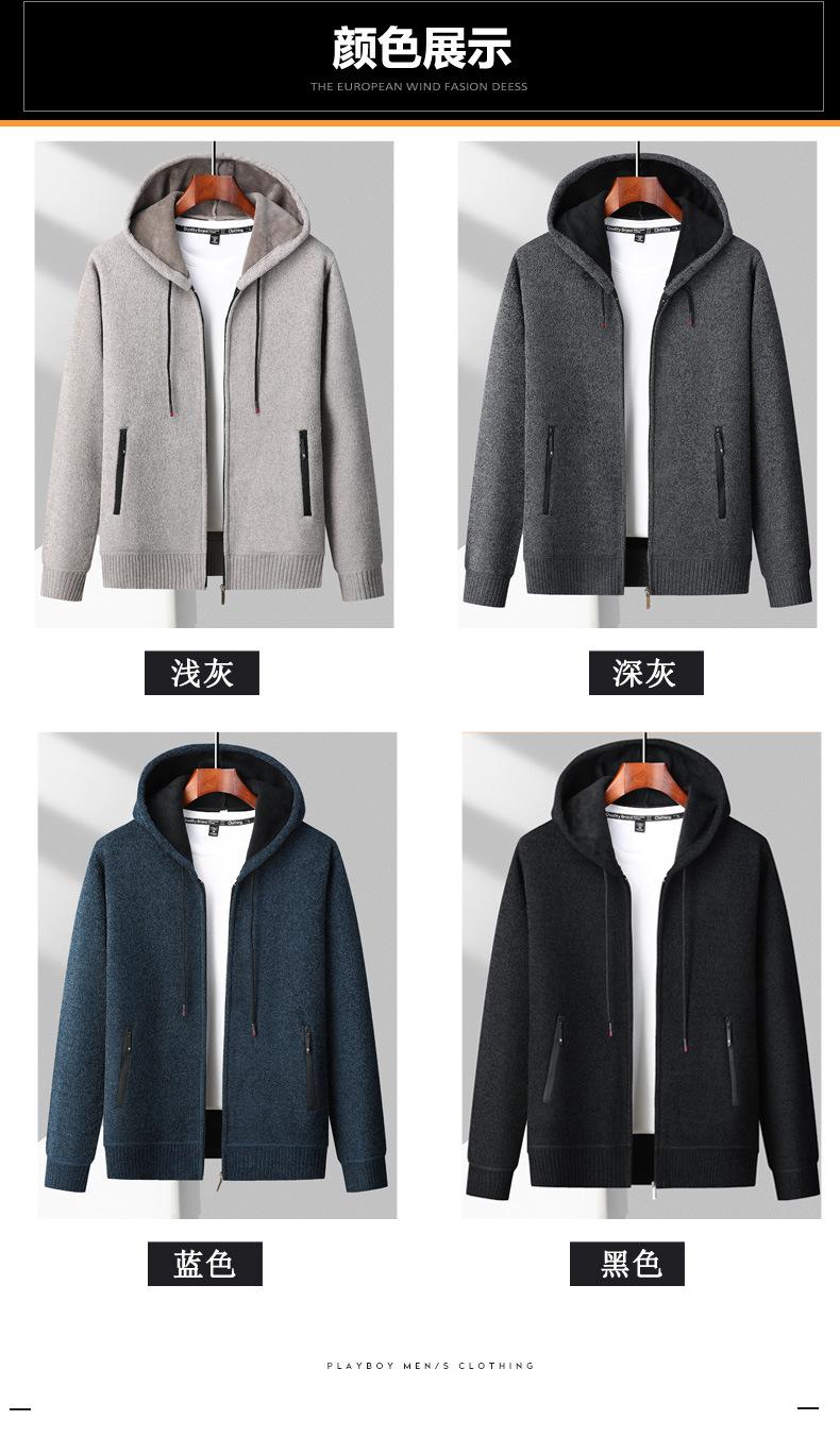 Suéter con capucha informal para hombre, cárdigan grueso con forro polar de otoño e invierno, suéter versátil de talla grande para hombre, abrigo de lana
