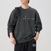 Camiseta de manga larga para hombre, estilo retro americano, de 260 g, lisa, pesada, de doble hilo, de marca de moda, holgada, de talla grande, para otoño