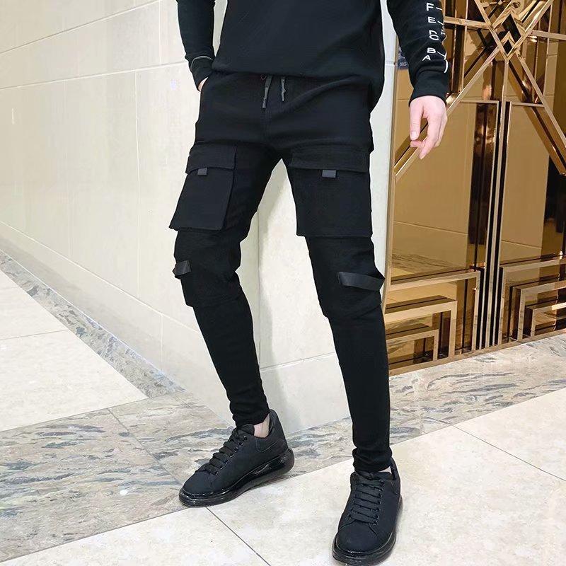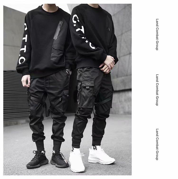 Overoles de marca de tendencia funcional para hombre, puños de cinta personalizados, estilo coreano, holgados, hip-hop callejero, pantalones harén combinables