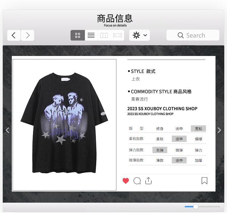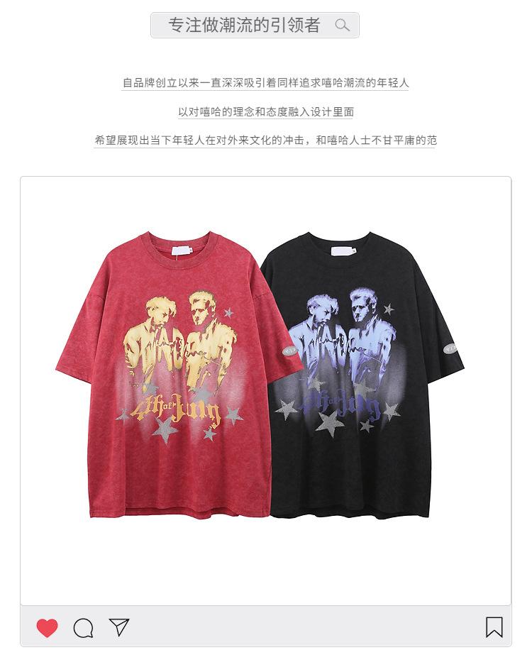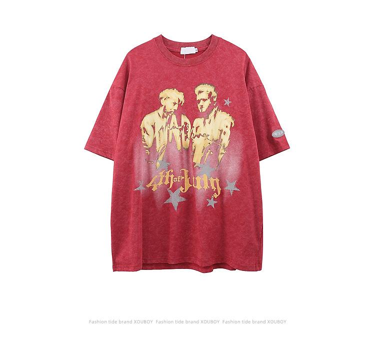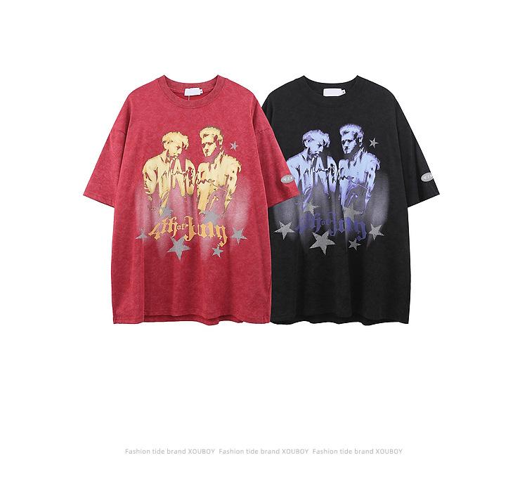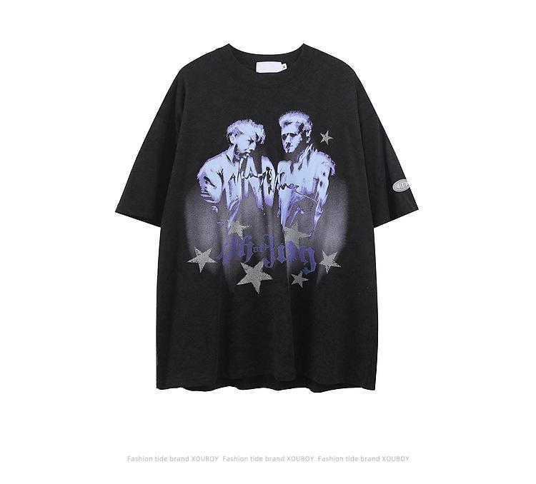 Camiseta de manga corta con estampado de grafiti y retratos de estrellas de la marca de moda estadounidense YPRS para hombre y mujer, holgada, de verano, para la calle.