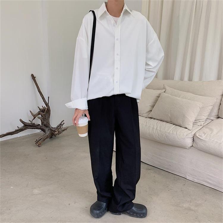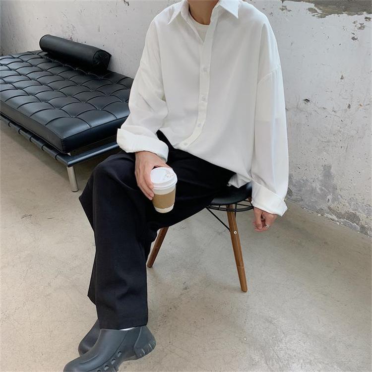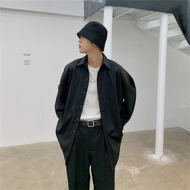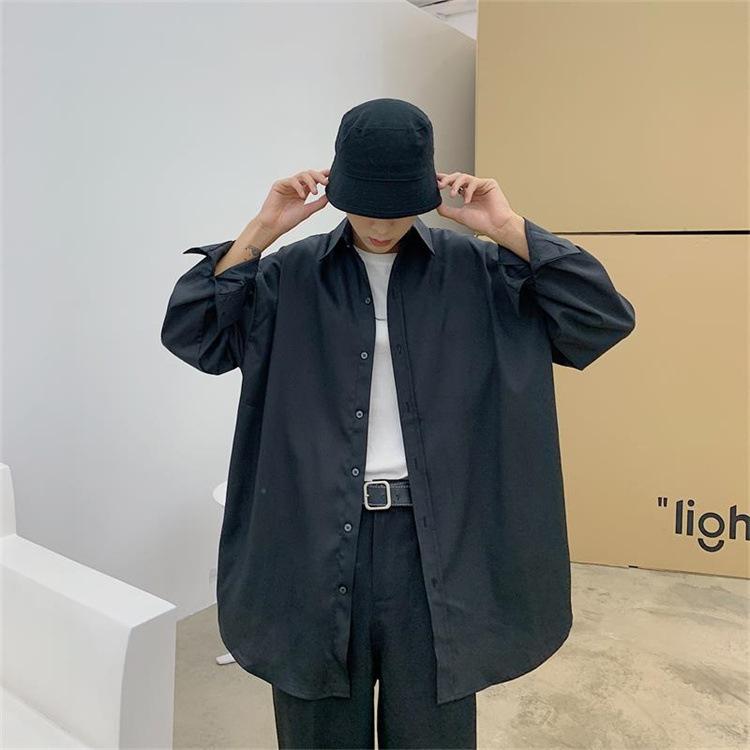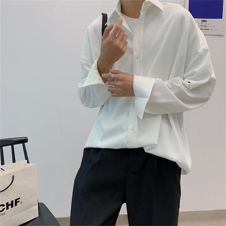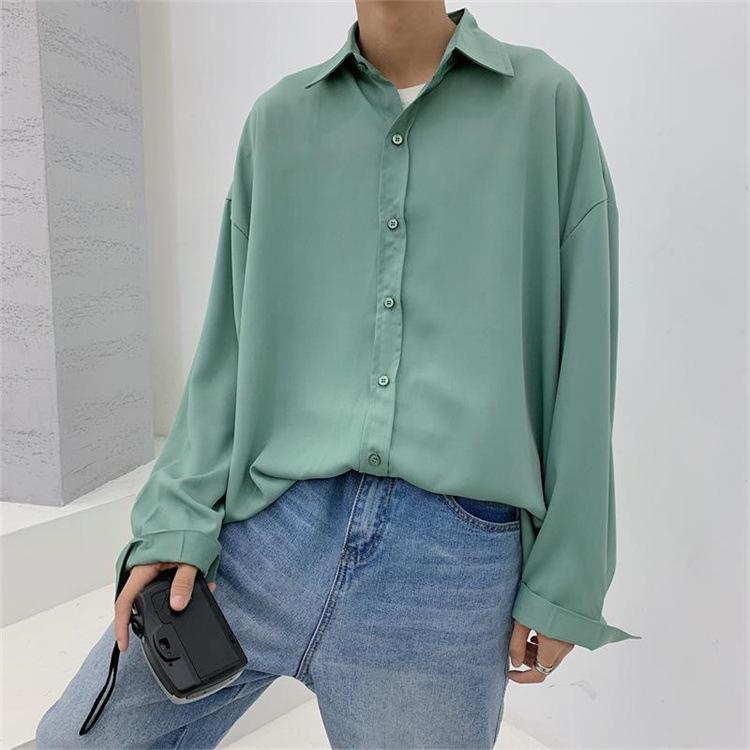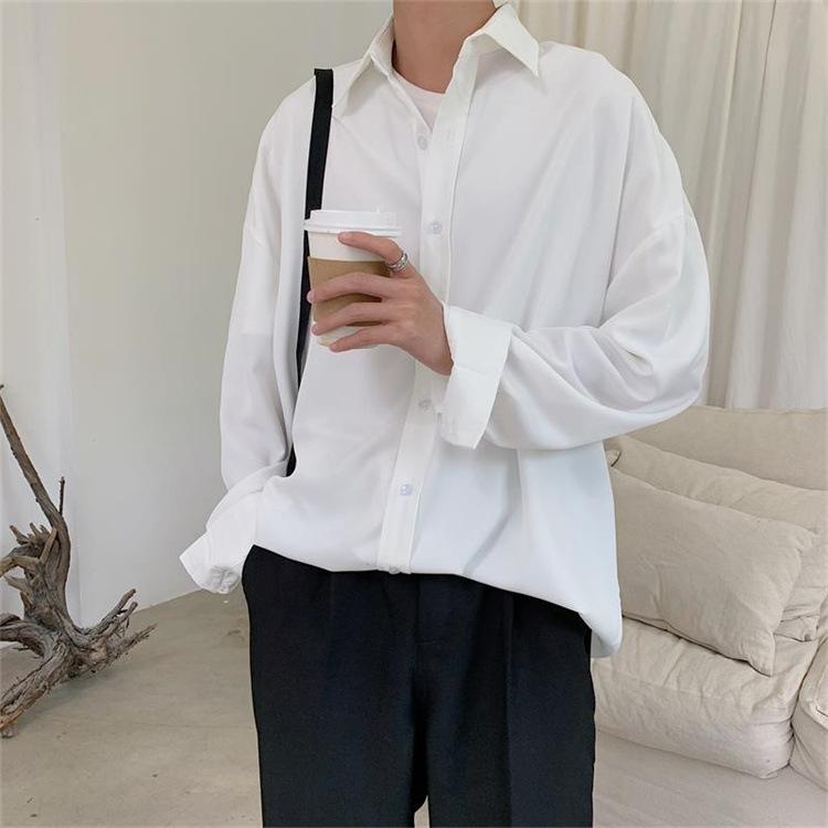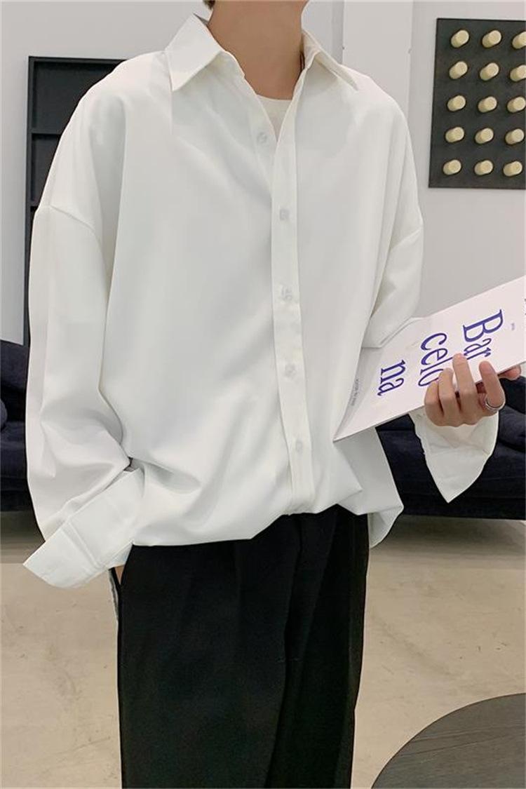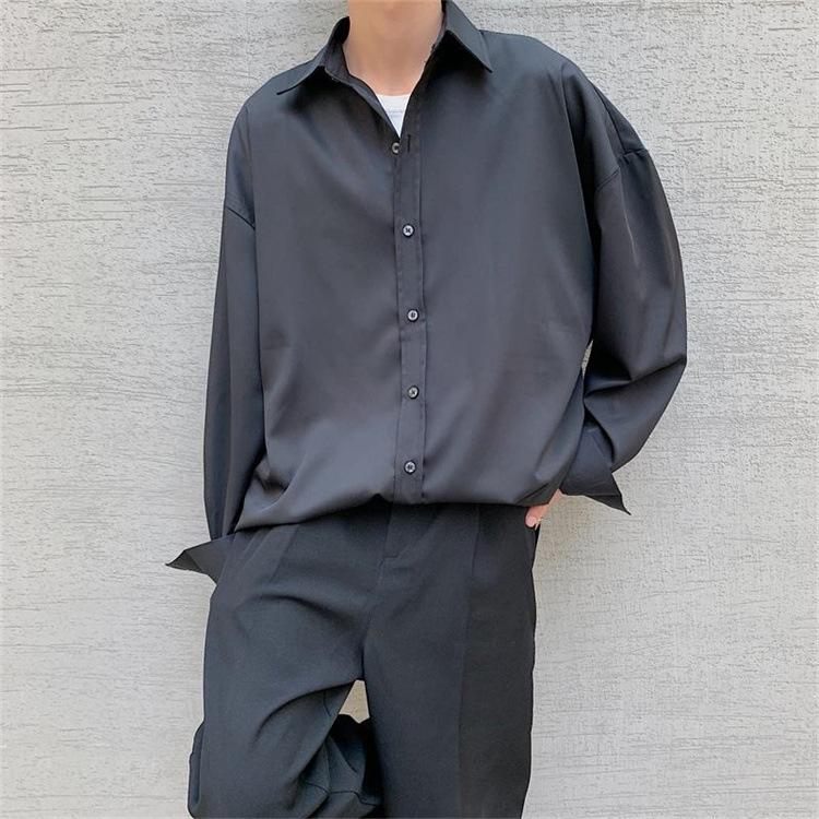 Camisa de manga larga para hombre de primavera y otoño, estilo Hong Kong, marca de moda, ins drapeado, camisa de color sólido, estilo coreano, moderna, moderna, guapo, top suelto