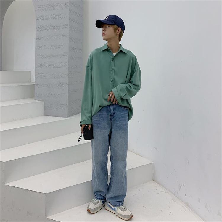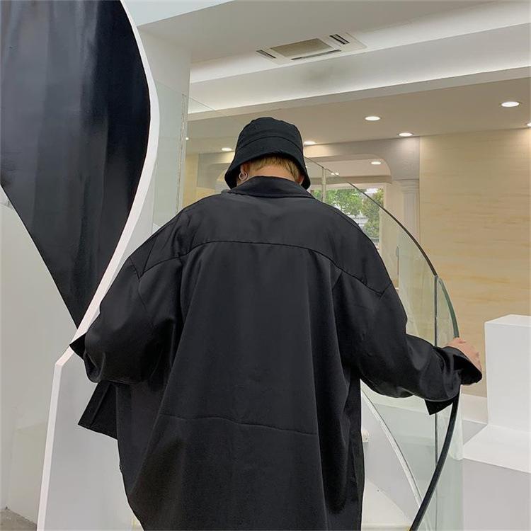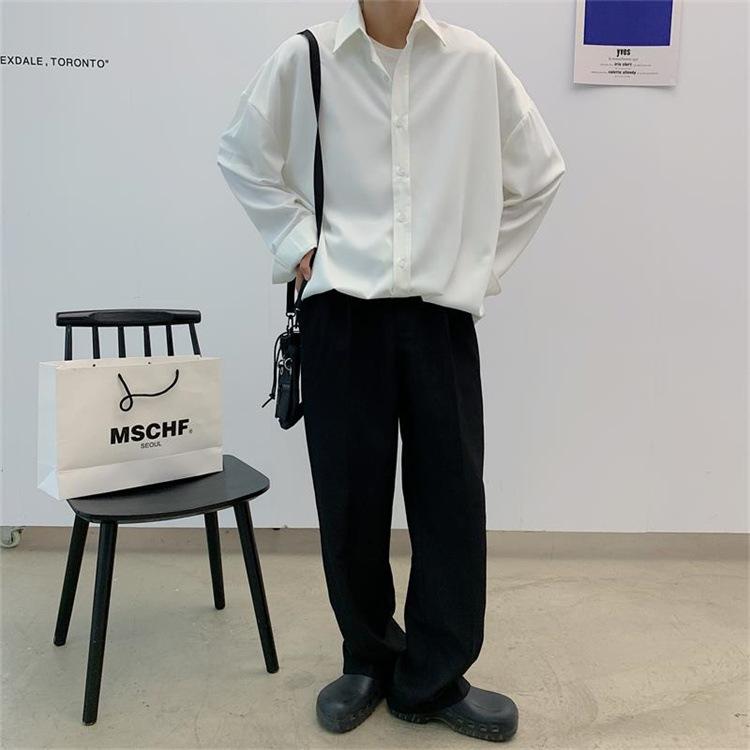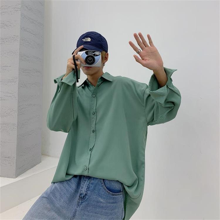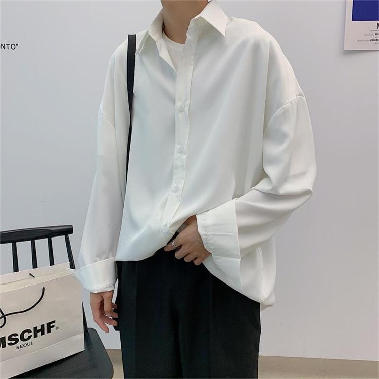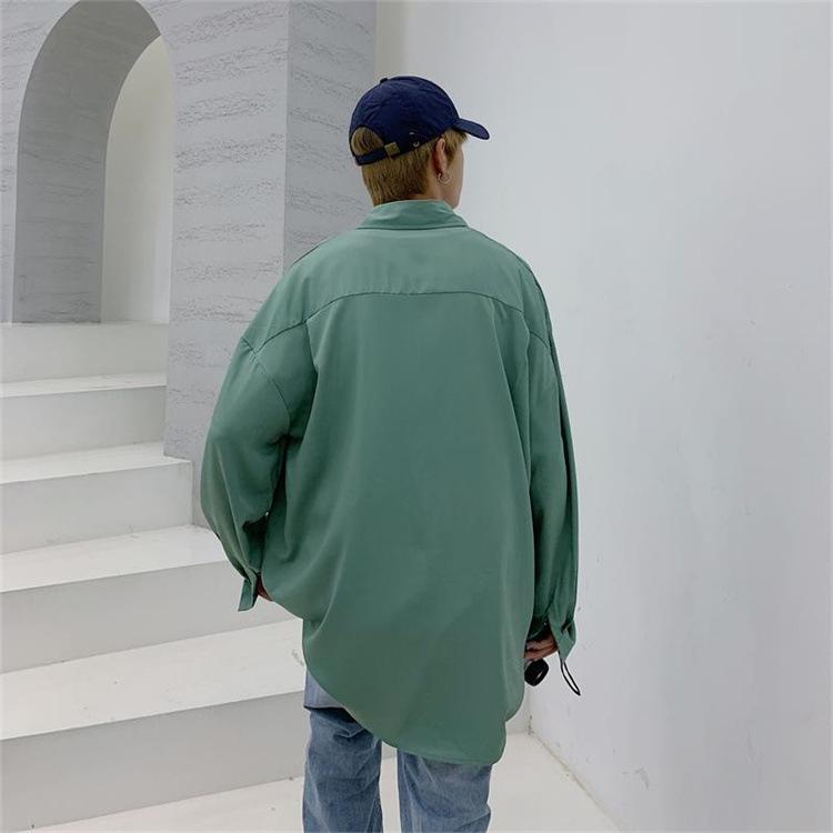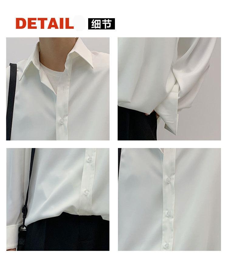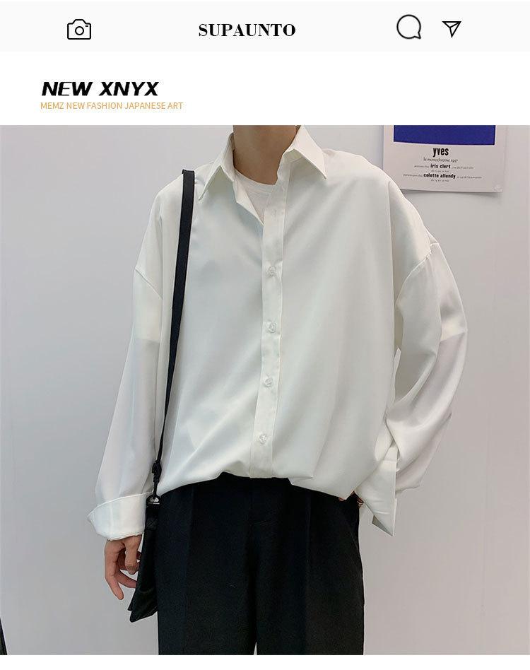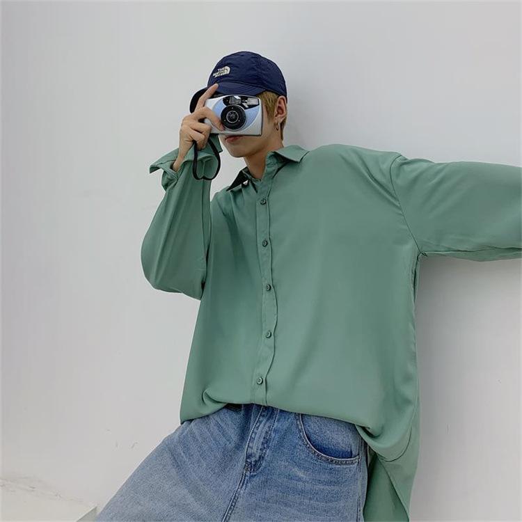 Camisa de manga larga para hombre de primavera y otoño, estilo Hong Kong, marca de moda, ins drapeado, camisa de color sólido, estilo coreano, moderna, moderna, guapo, top suelto