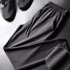 Pantalones de Seda Antihielo para Hombre Verano Nuevo Talla Grande Delgados Transpirables Frescos Pantalones para Aire Acondicionado Cordón Secado Rápido Alta Elasticidad Pantalones Rectos