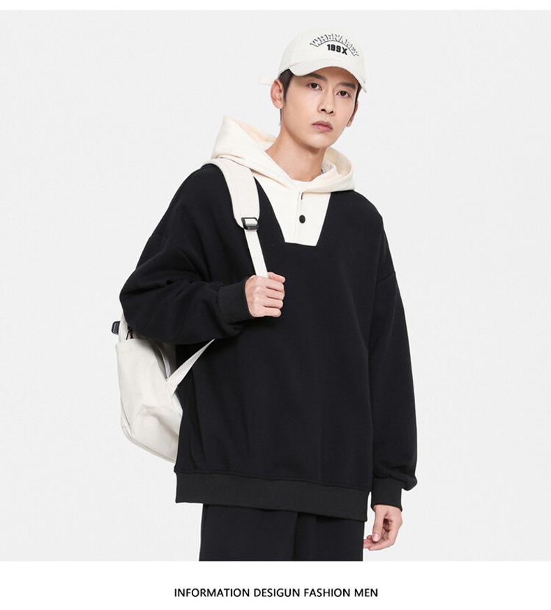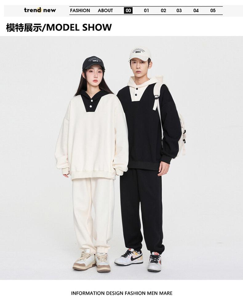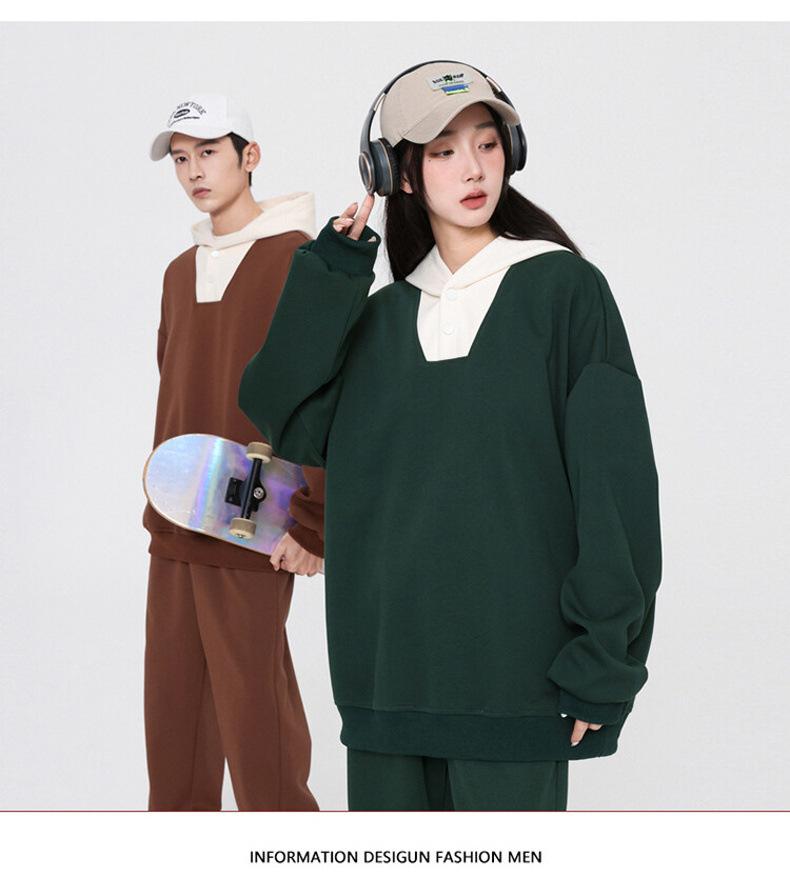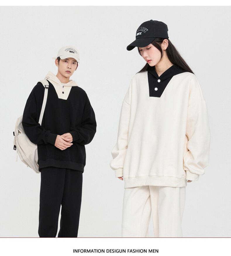 Suéter con capucha pesada con botones retro para hombre, abrigo de pareja, nuevo estilo americano de primavera y otoño de 2023