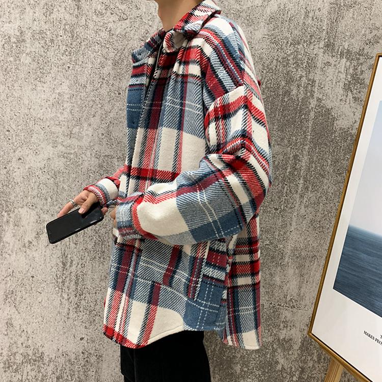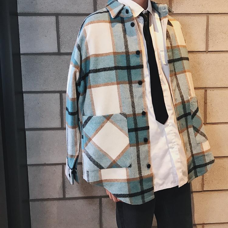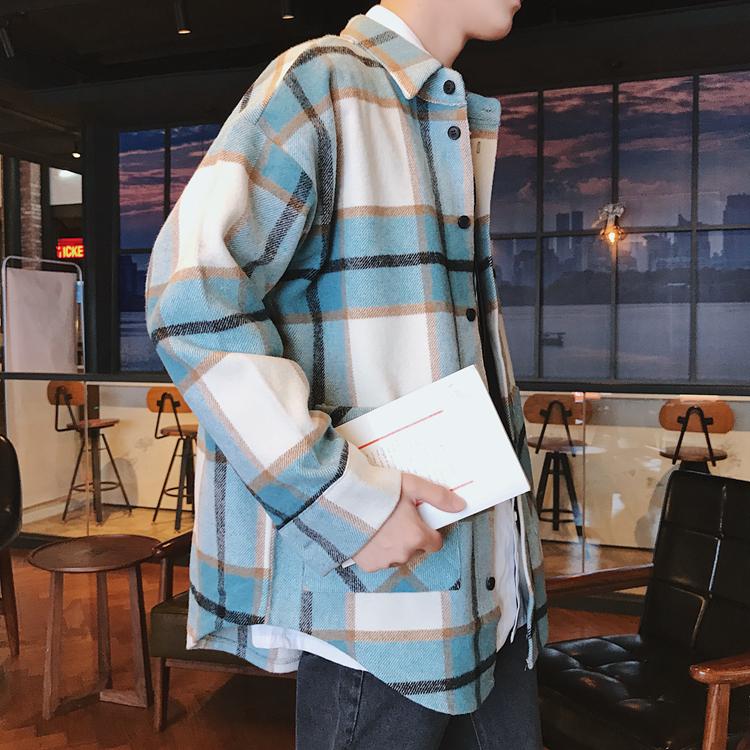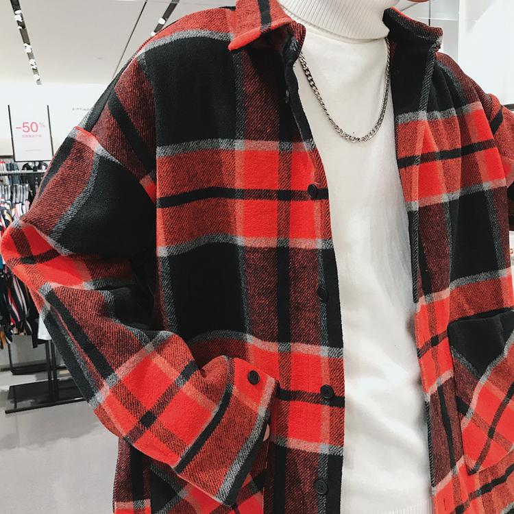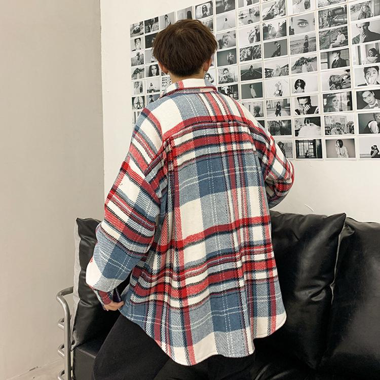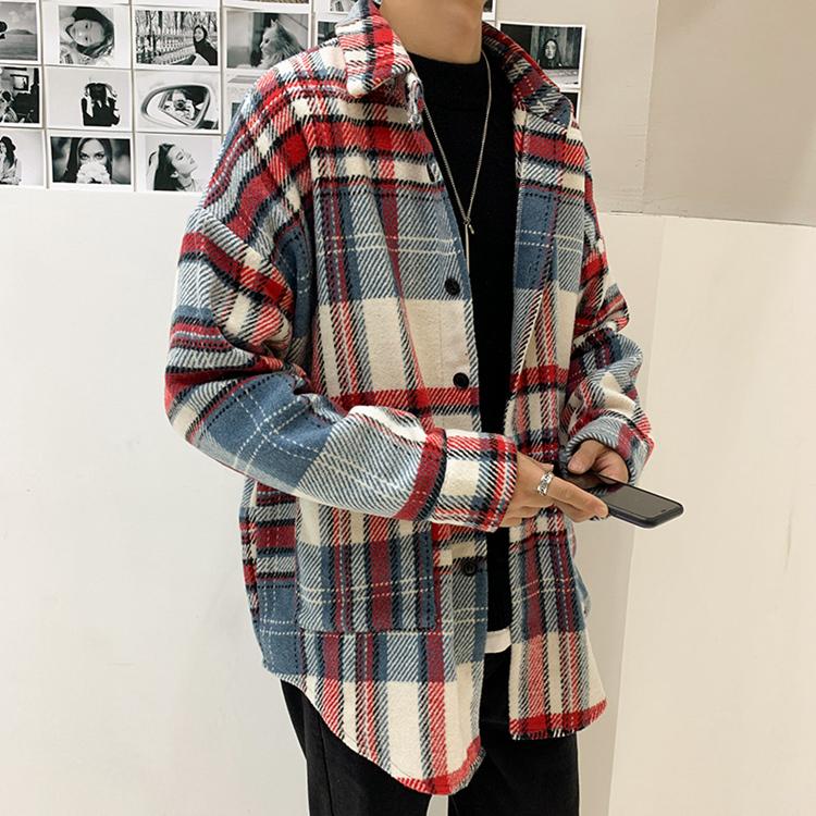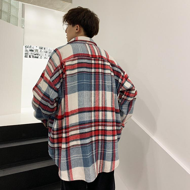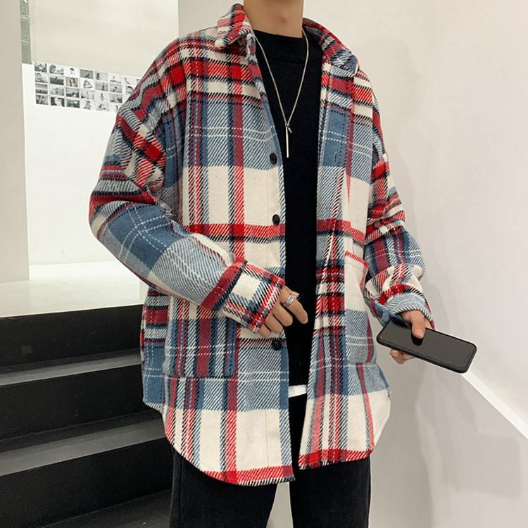 Chaqueta Camisa de Franela a Cuadros Lijada Otoñal para Hombre de Manga Larga Estilo Coreano Moderna Suelta Estilo Lazy Retro Ropa Exterior Camisa para Niños