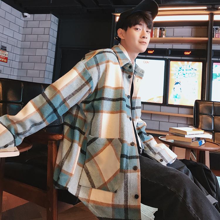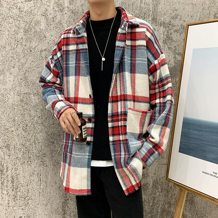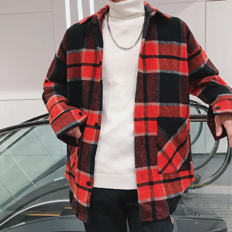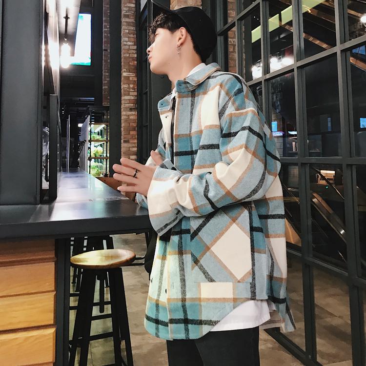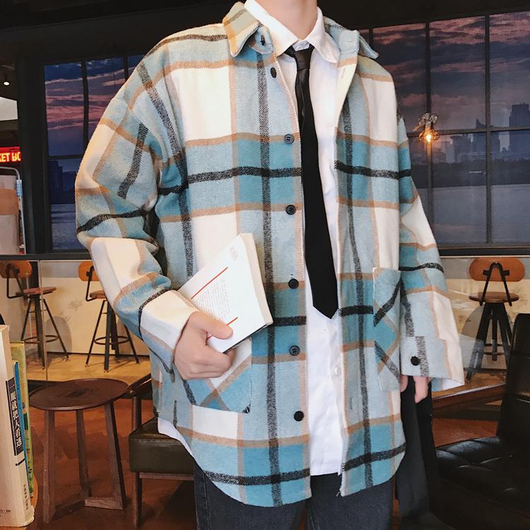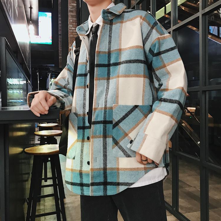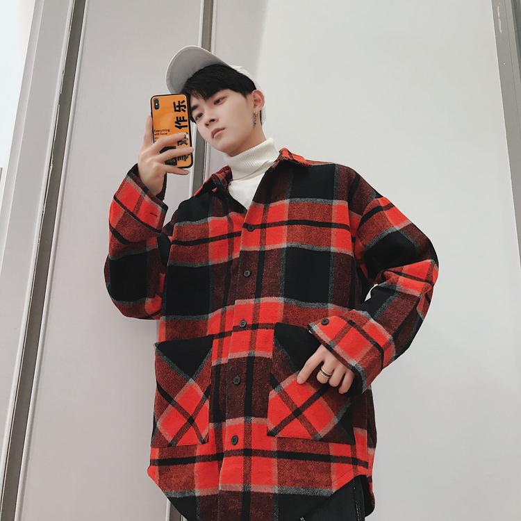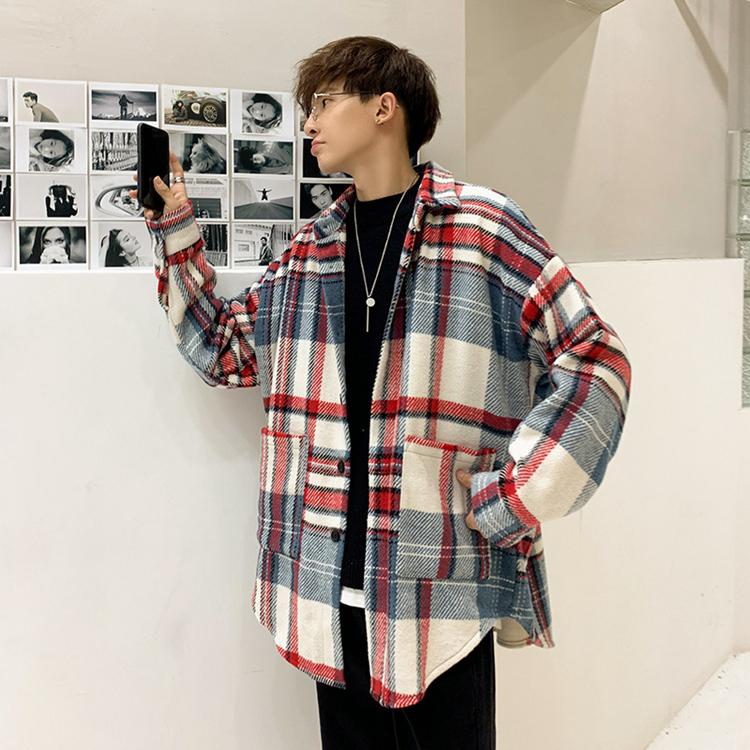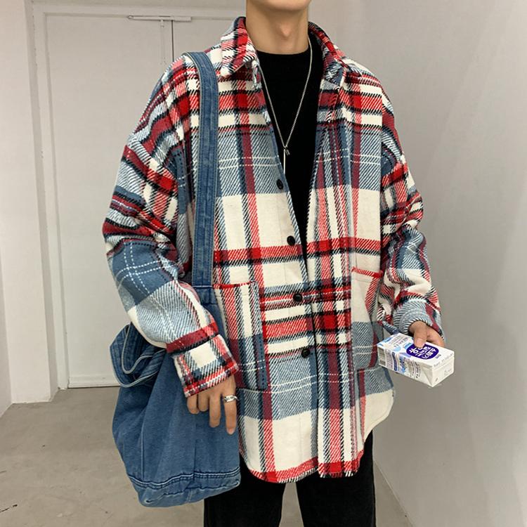 Chaqueta Camisa de Franela a Cuadros Lijada Otoñal para Hombre de Manga Larga Estilo Coreano Moderna Suelta Estilo Lazy Retro Ropa Exterior Camisa para Niños