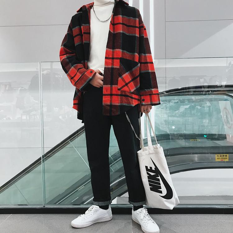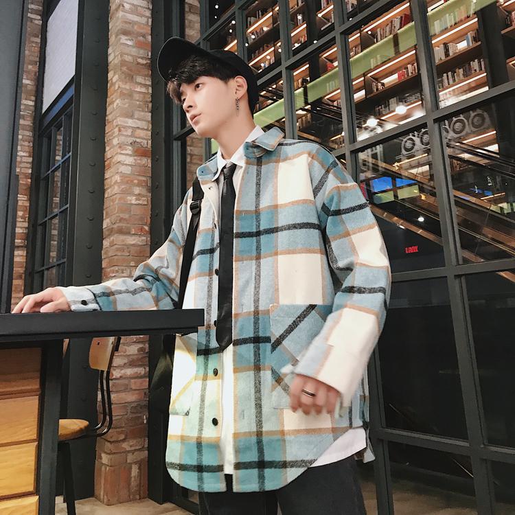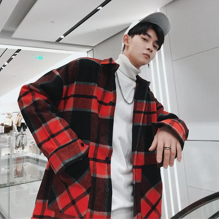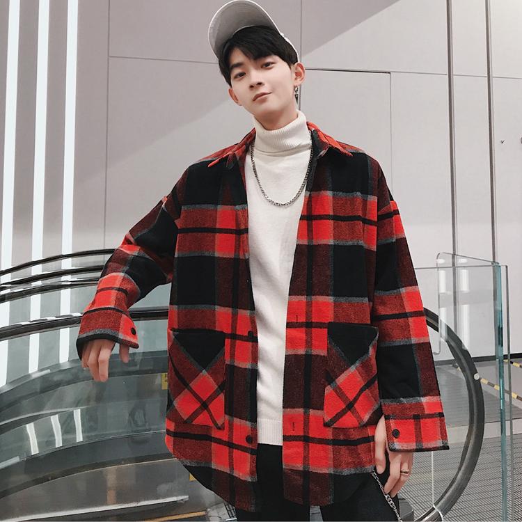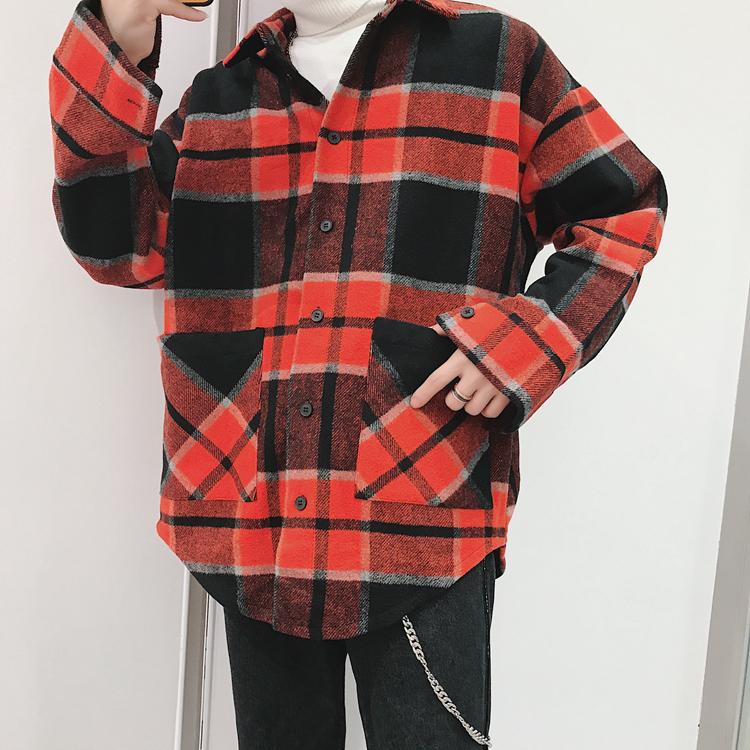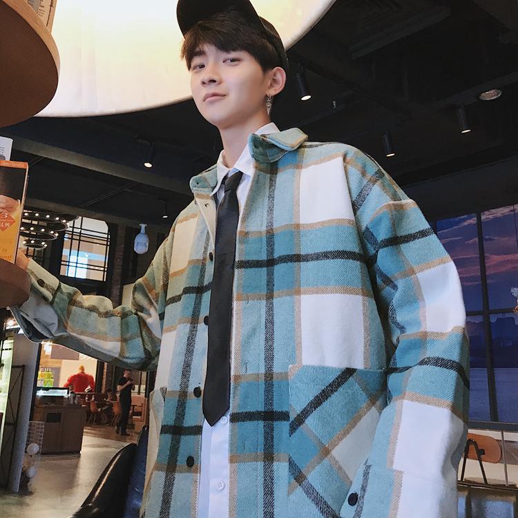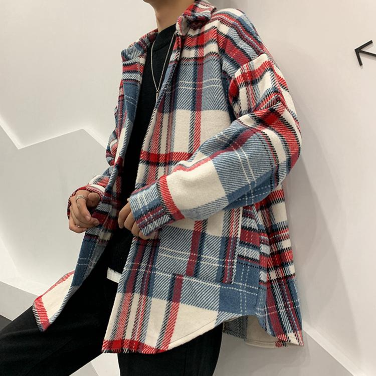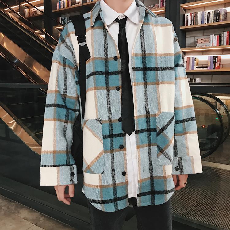 Chaqueta Camisa de Franela a Cuadros Lijada Otoñal para Hombre de Manga Larga Estilo Coreano Moderna Suelta Estilo Lazy Retro Ropa Exterior Camisa para Niños