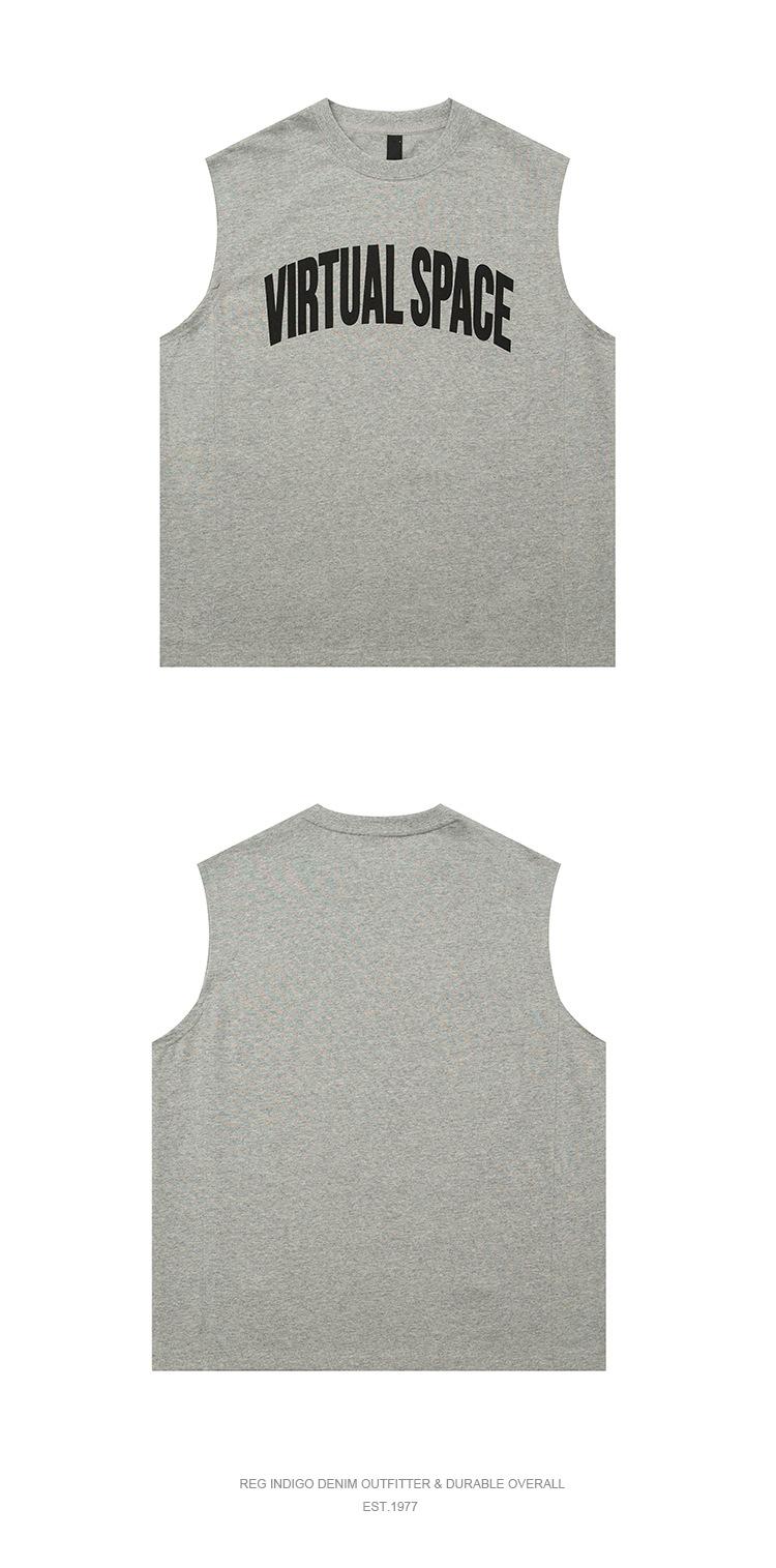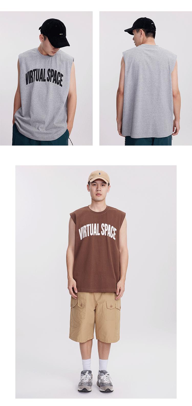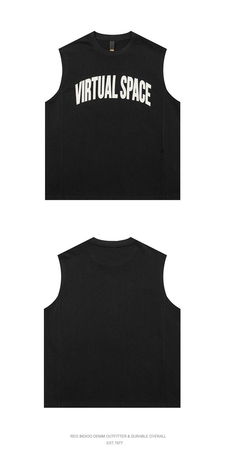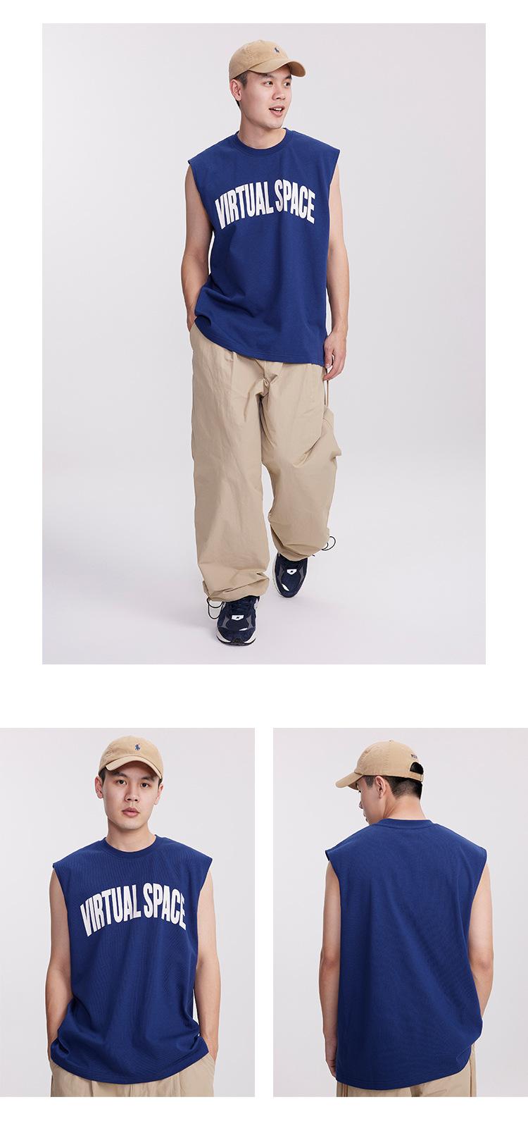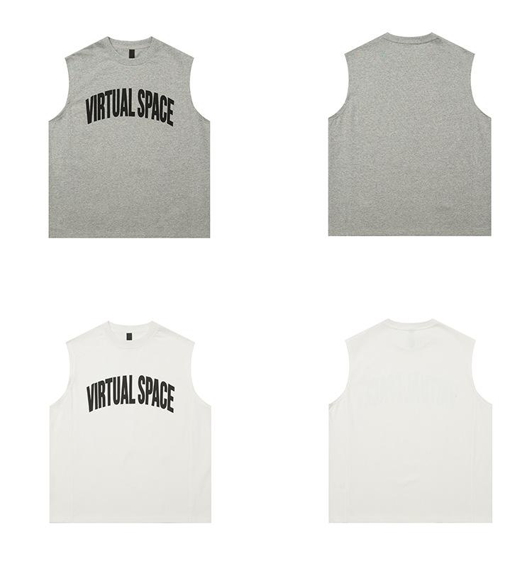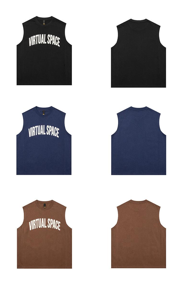 Chaleco deportivo informal de algodón puro para hombre, estilo retro americano, de 300 g, con estampado de letras en los hombros, ideal para fitness