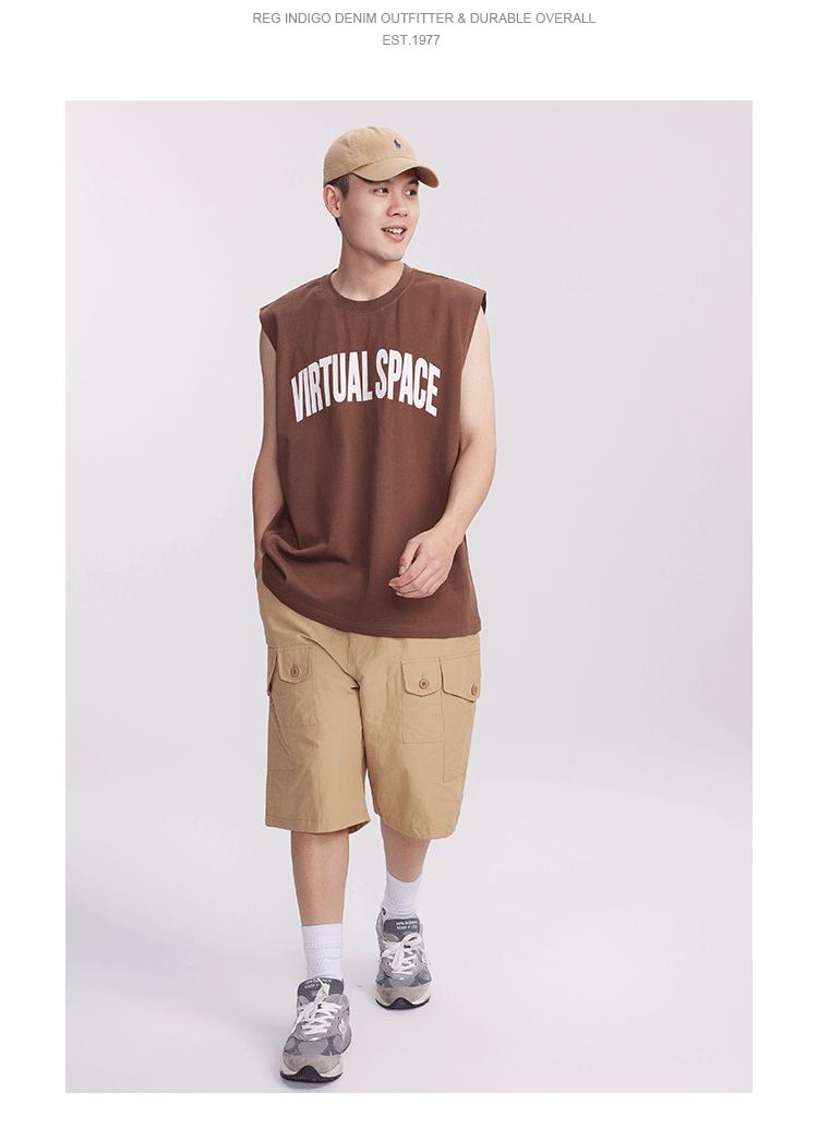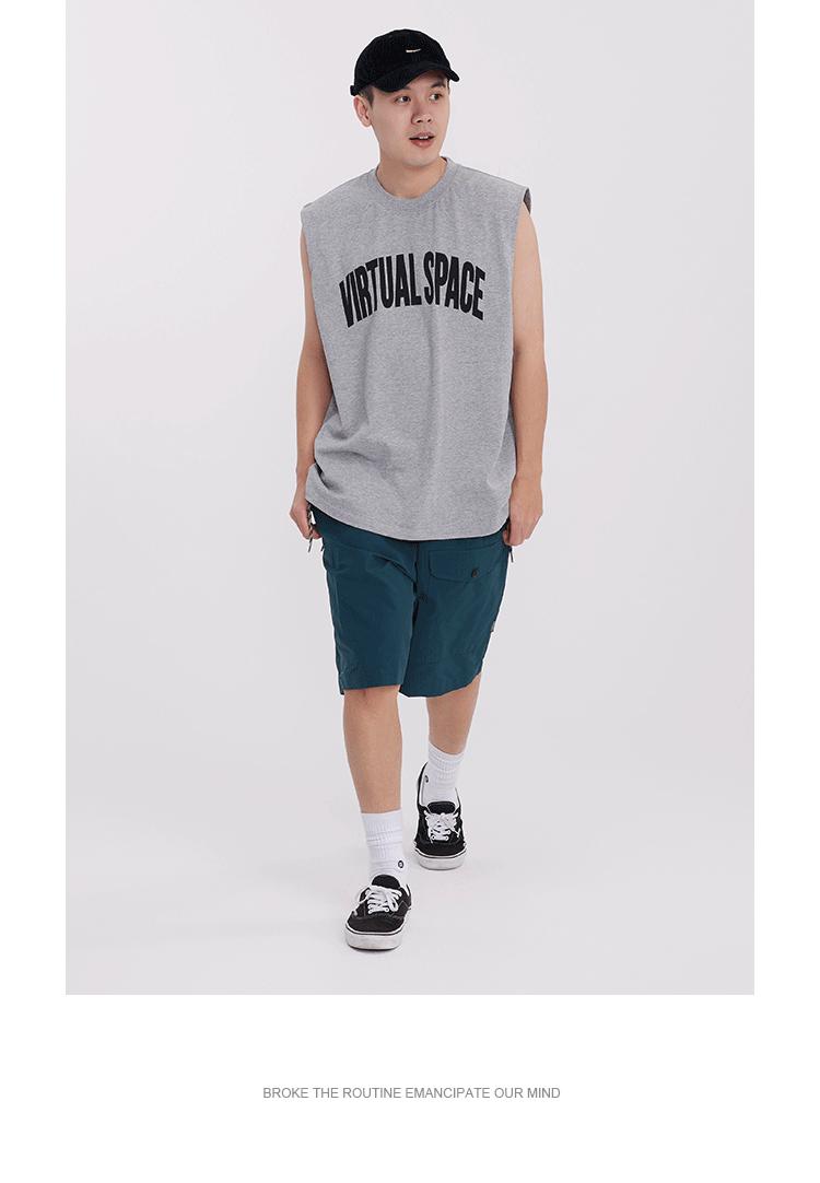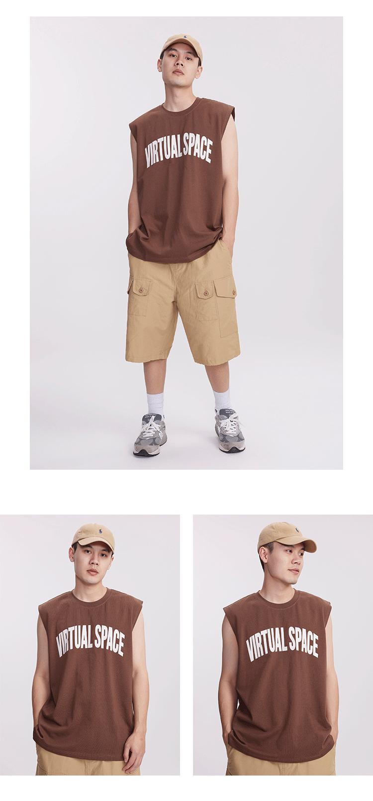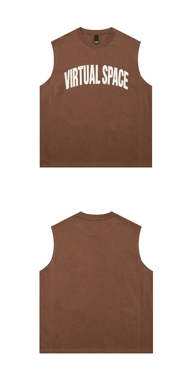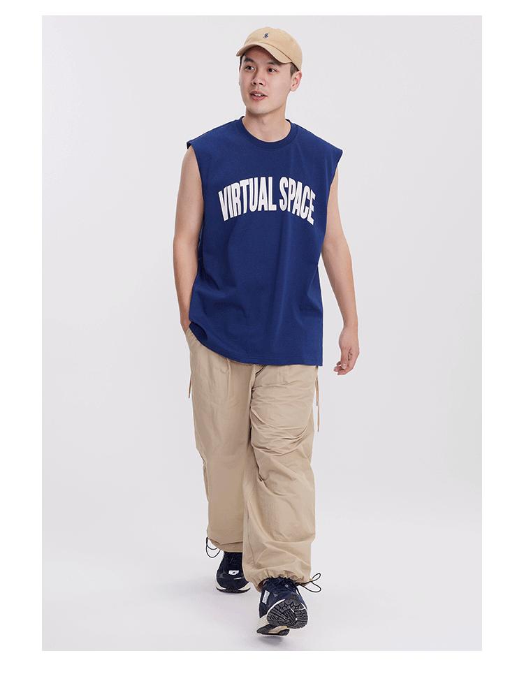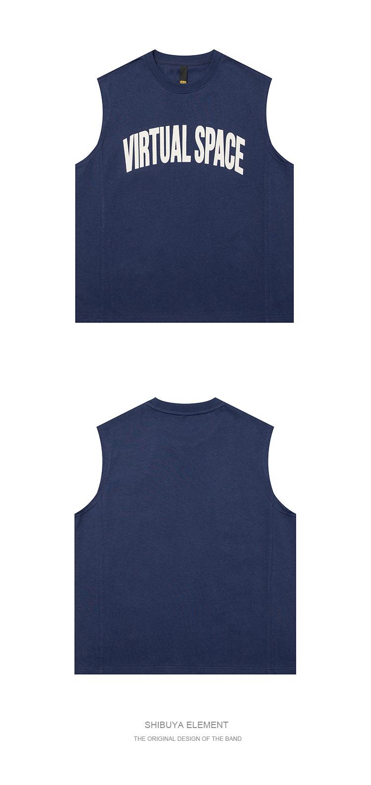 Chaleco deportivo informal de algodón puro para hombre, estilo retro americano, de 300 g, con estampado de letras en los hombros, ideal para fitness
