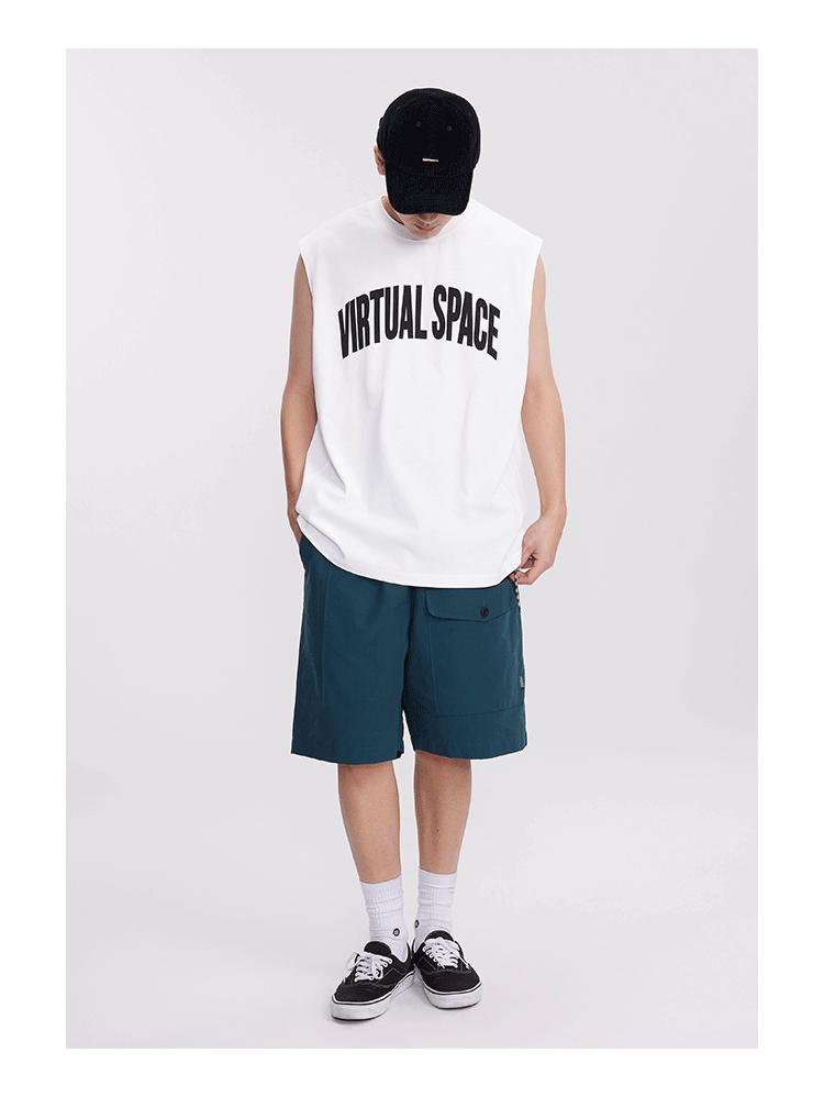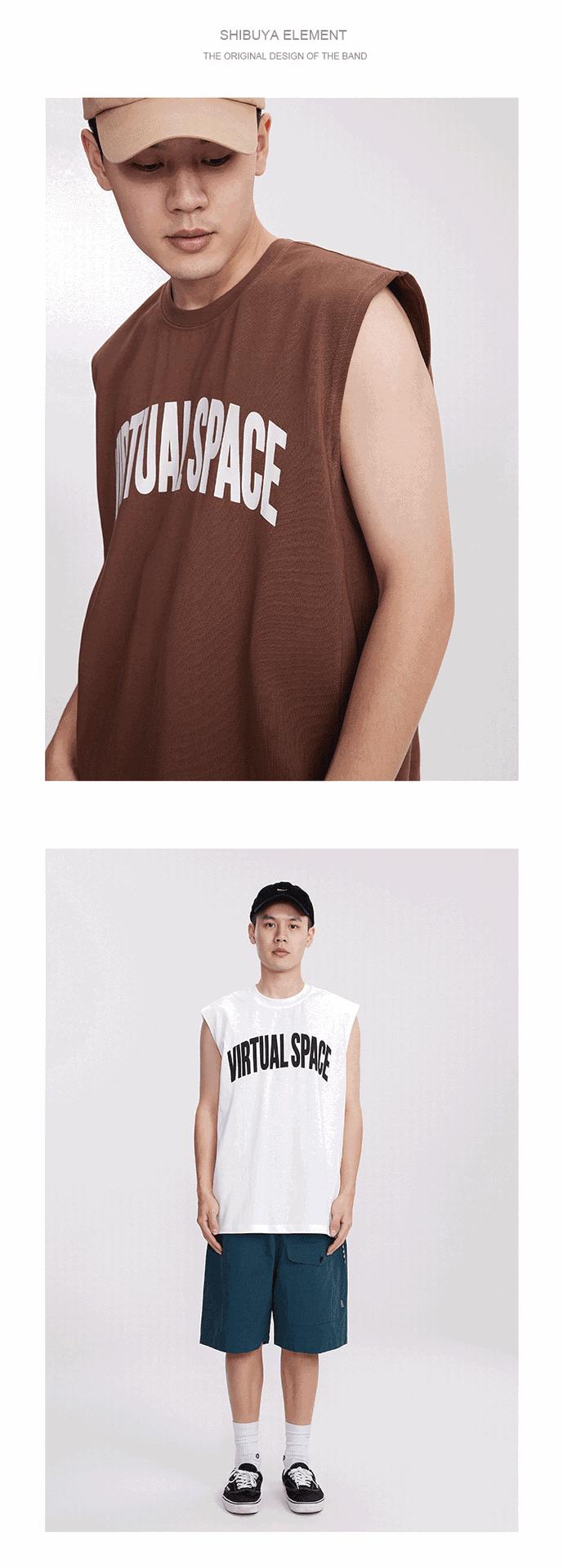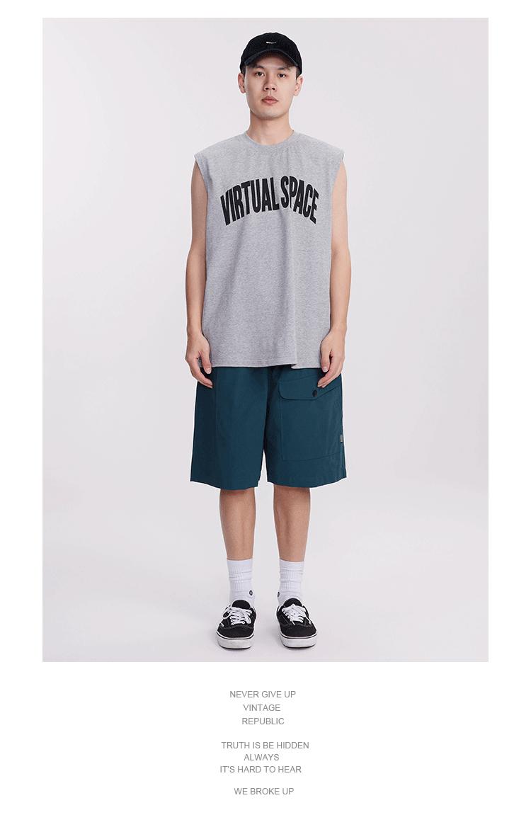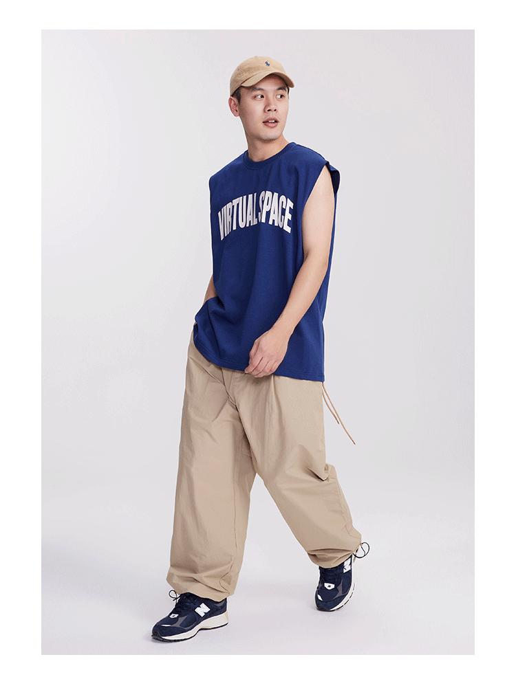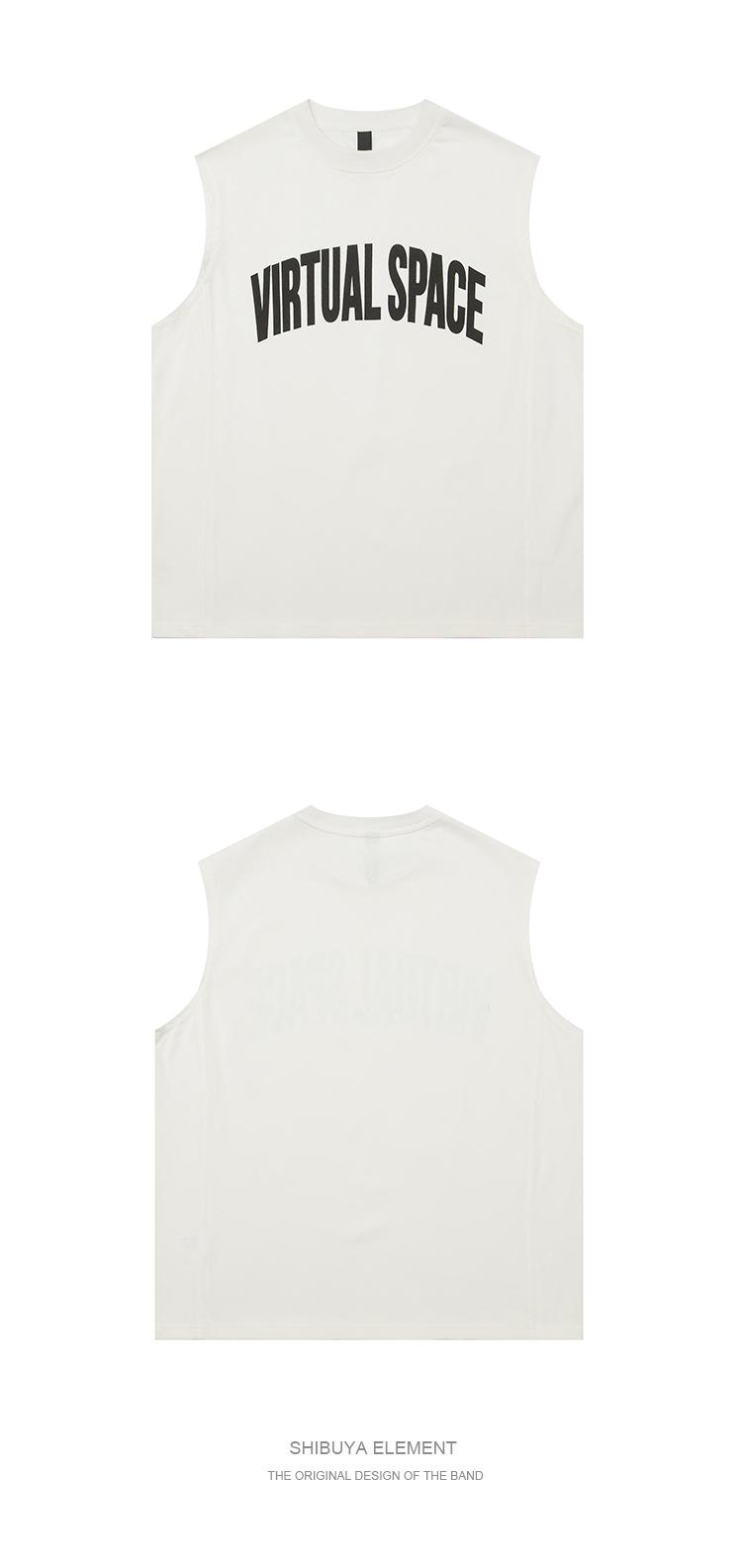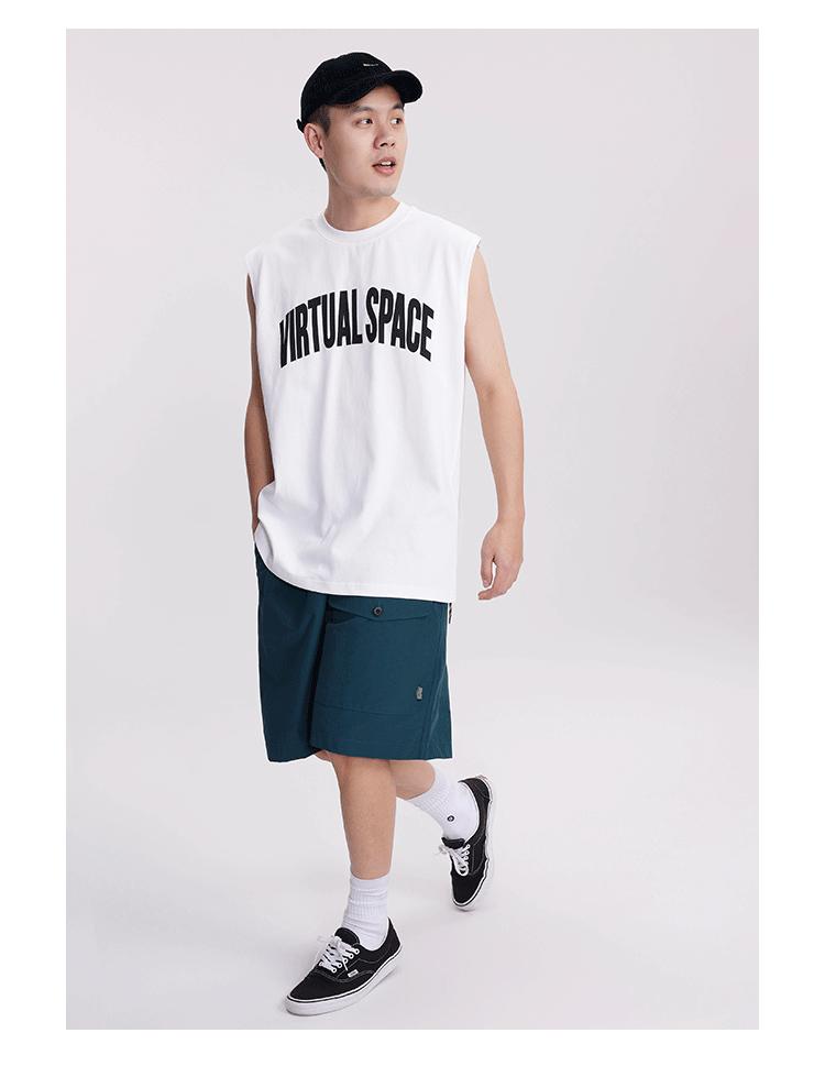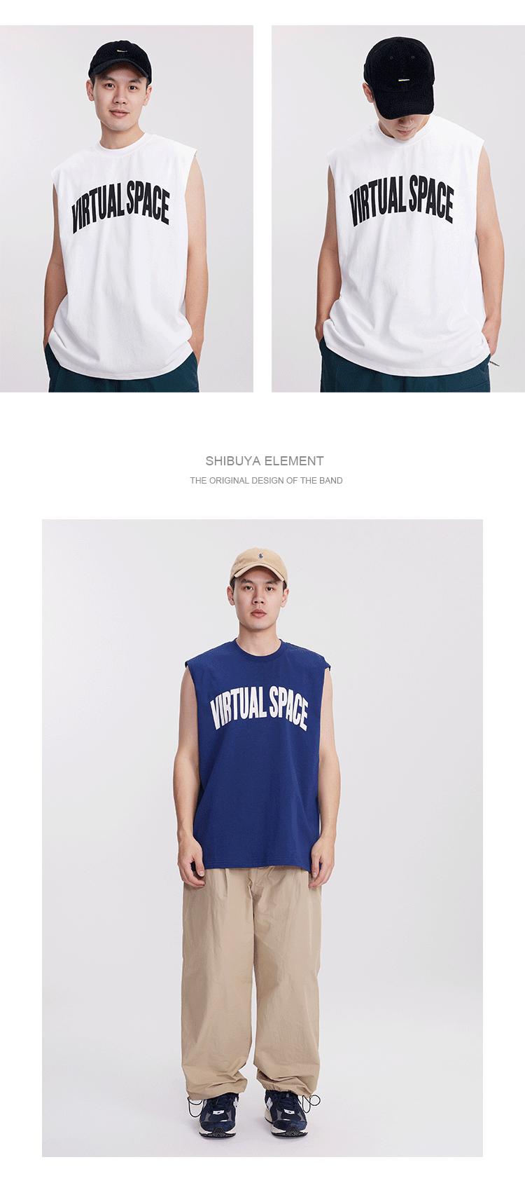 Chaleco deportivo informal de algodón puro para hombre, estilo retro americano, de 300 g, con estampado de letras en los hombros, ideal para fitness
