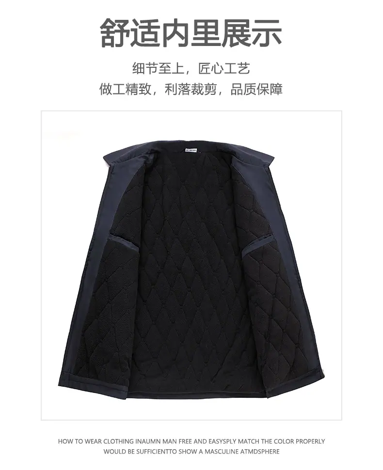 Chaqueta forrada de polar de otoño e invierno para hombre, chaqueta informal para papá de mediana edad y ancianos, ropa de negocios de alta calidad con parte superior gruesa