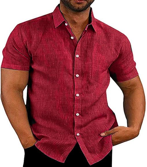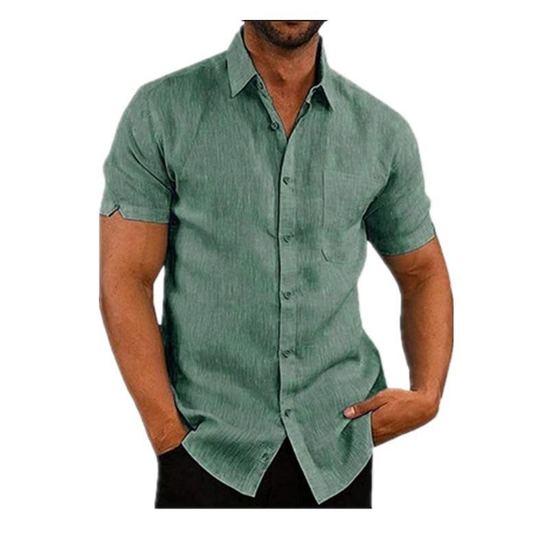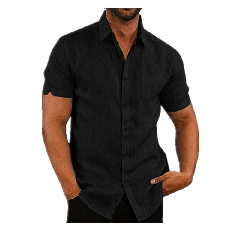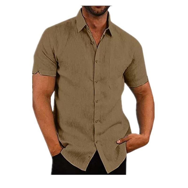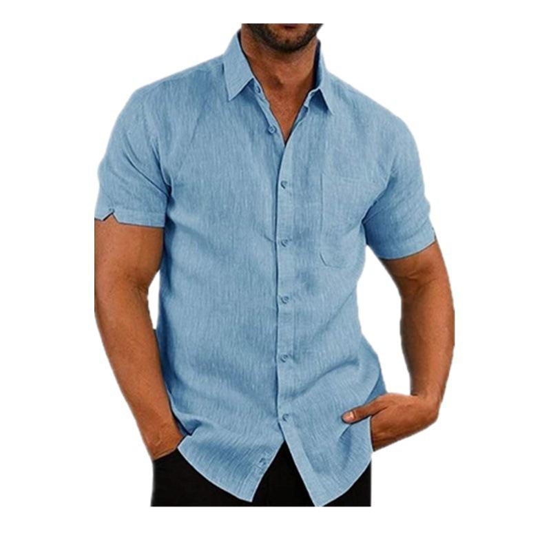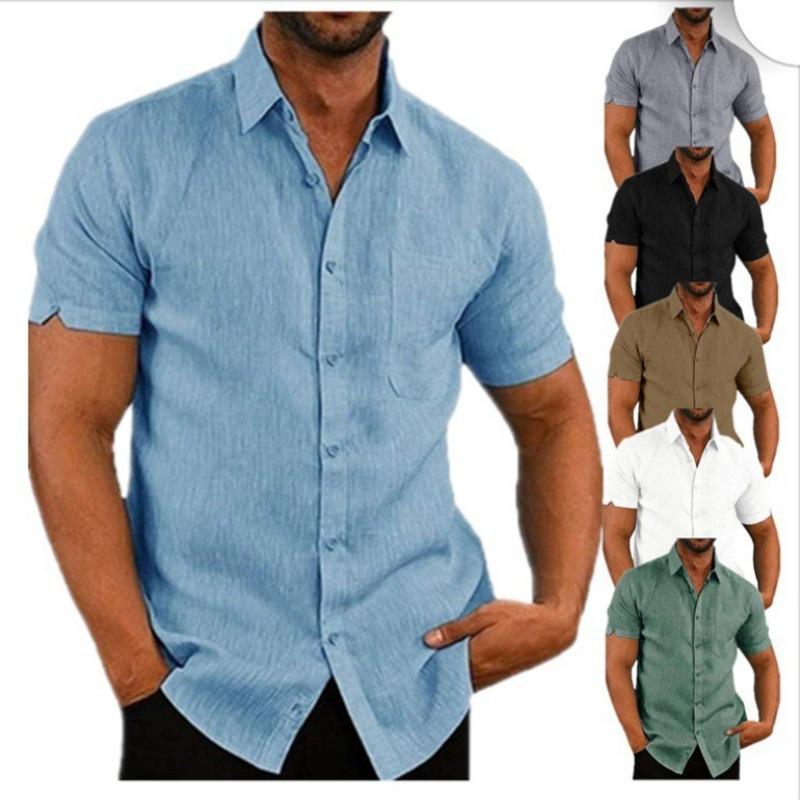 Camisa de verano de manga corta con solapa de color liso para hombre, estilo casual, con botones, estilo explosión de AliExpress.