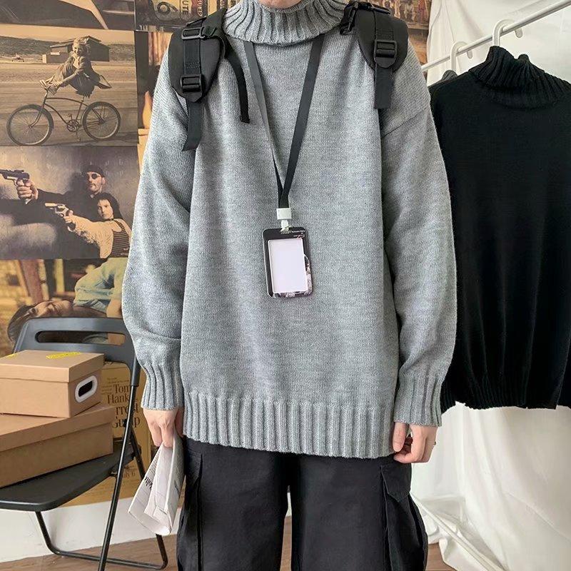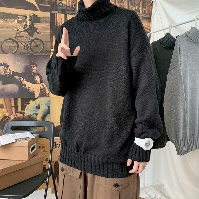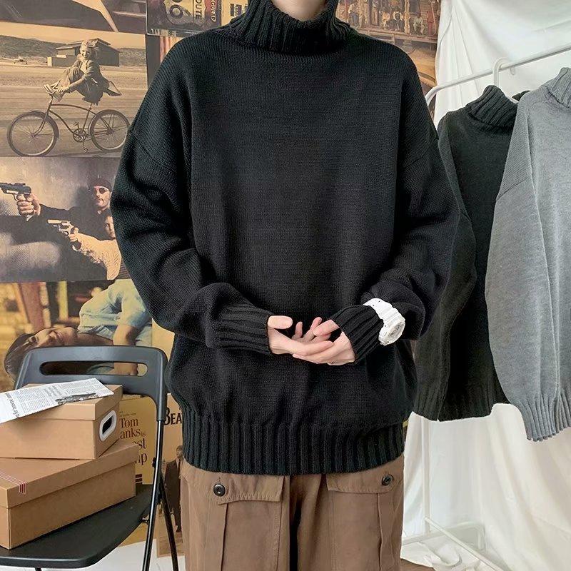 Suéter de cuello alto para hombre, otoño e invierno, estilo perezoso, suéter suelto de color sólido, marca de moda High Street, abrigo de talla grande de estilo japonés
